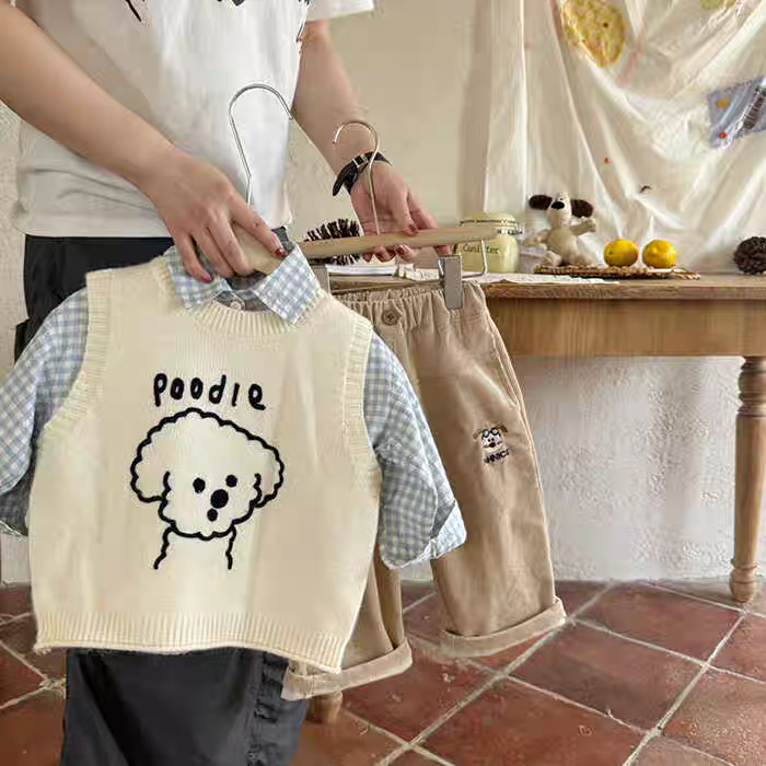 어린이 조끼 2025 봄 가을 신상 남아용 민소매 강아지 니트웨어 이너웨어 아기 스웨터 조끼 여아용 아우터웨어