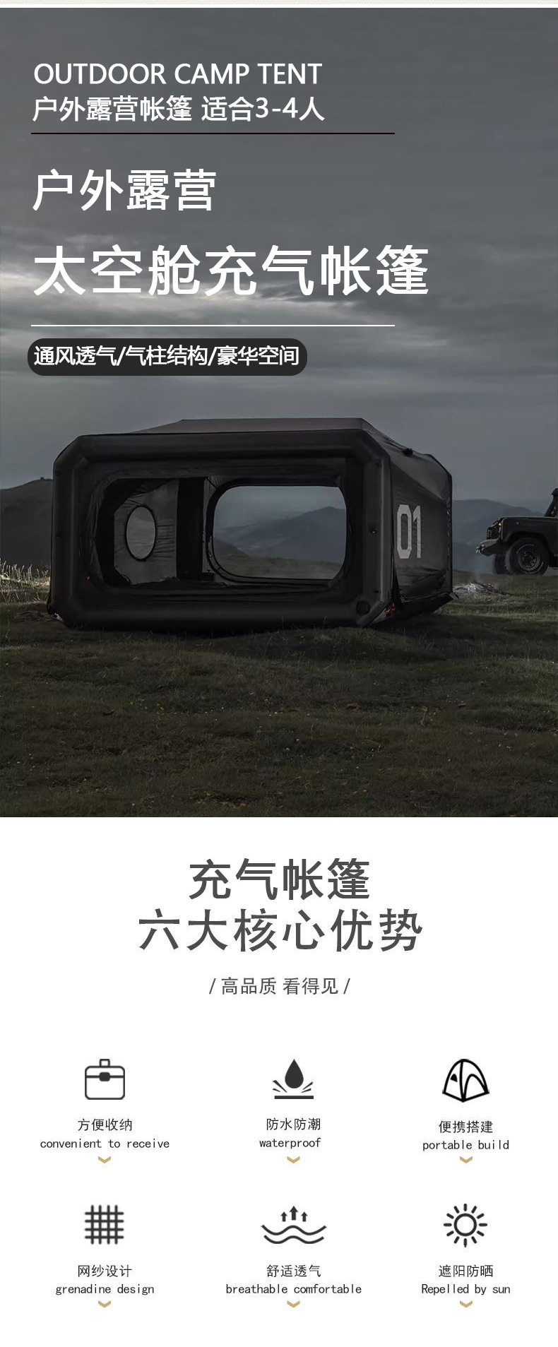 인터넷 유명인 경량 우주 캡슐형 에어 텐트 야외 휴대용 방수 캠핑 텐트 이동식 빠른 설치 텐트스토어 가기