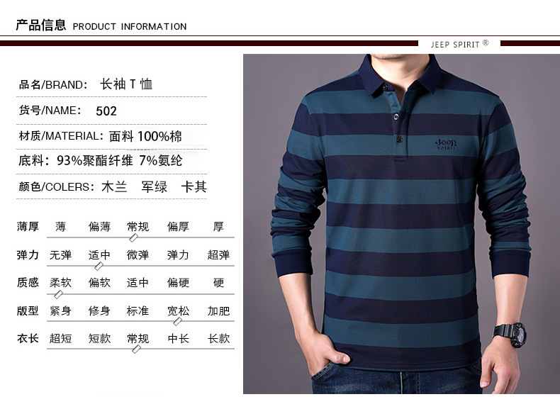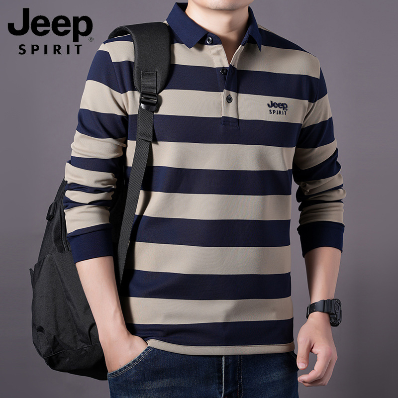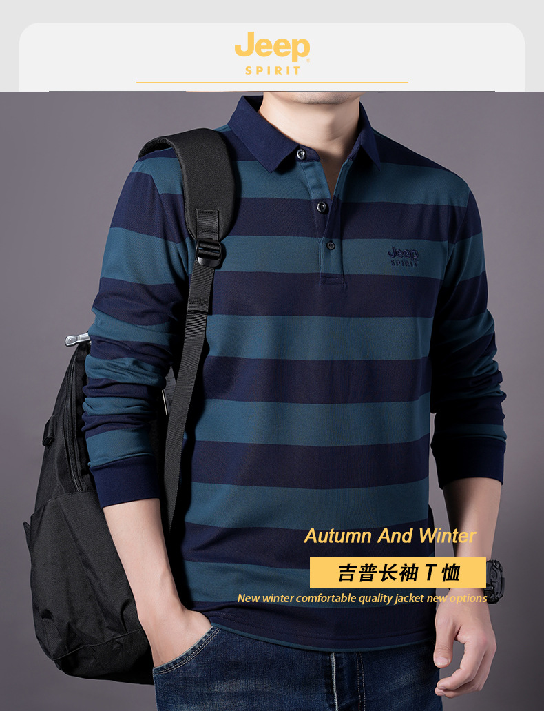 JEEPSPIRIT 남성용 긴 소매 티셔츠 가을과 겨울 기모 새로운 폴로 셔츠 옷깃 톱 502