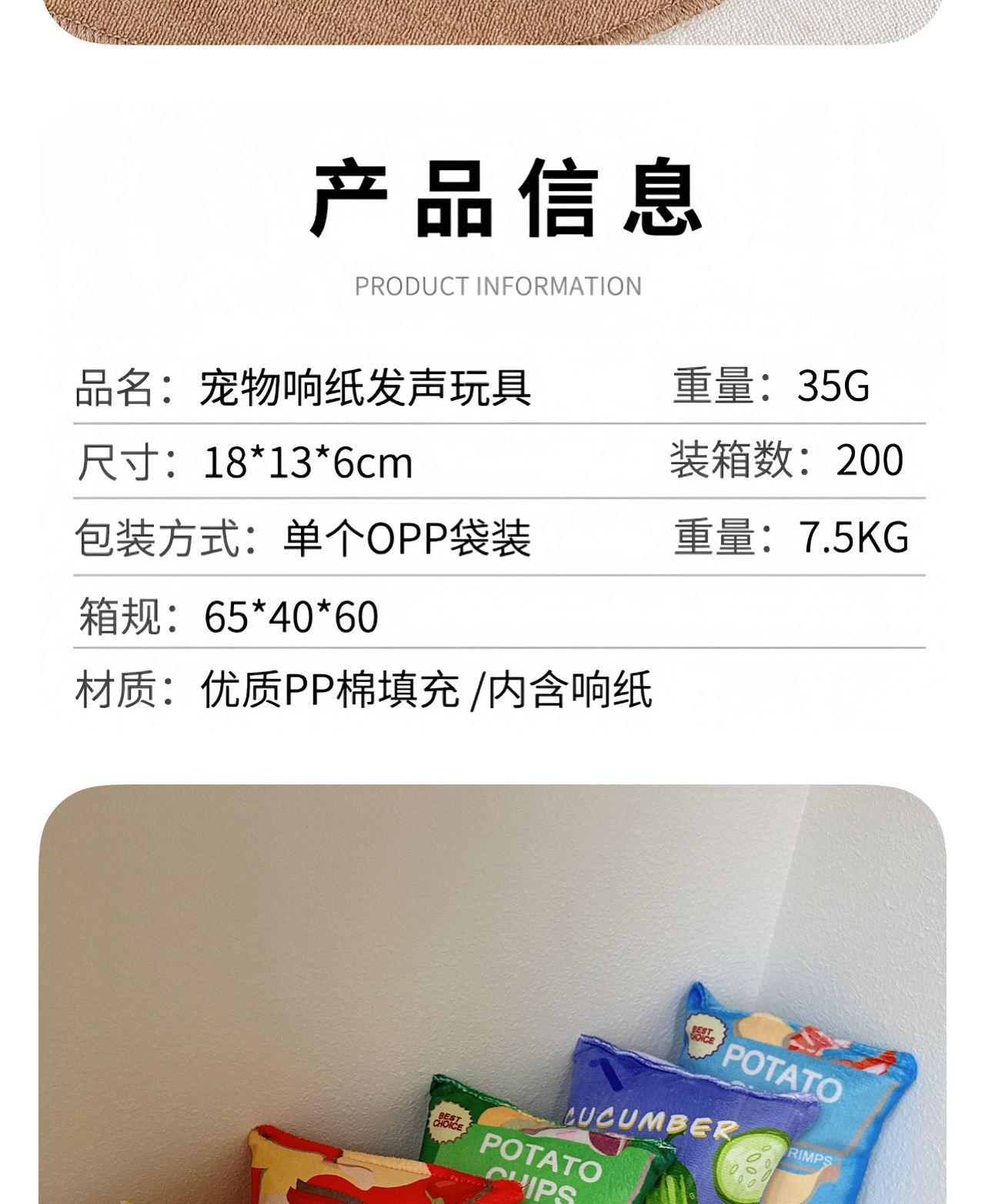 시뮬레이션 플러시 감자 칩 울리는 종이 bb 호출 사운드 개 장난감 물린 방지 어금니 애완 동물이 장난감을 동반하여 지루함을 덜어줍니다.