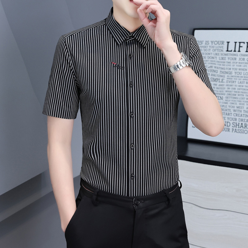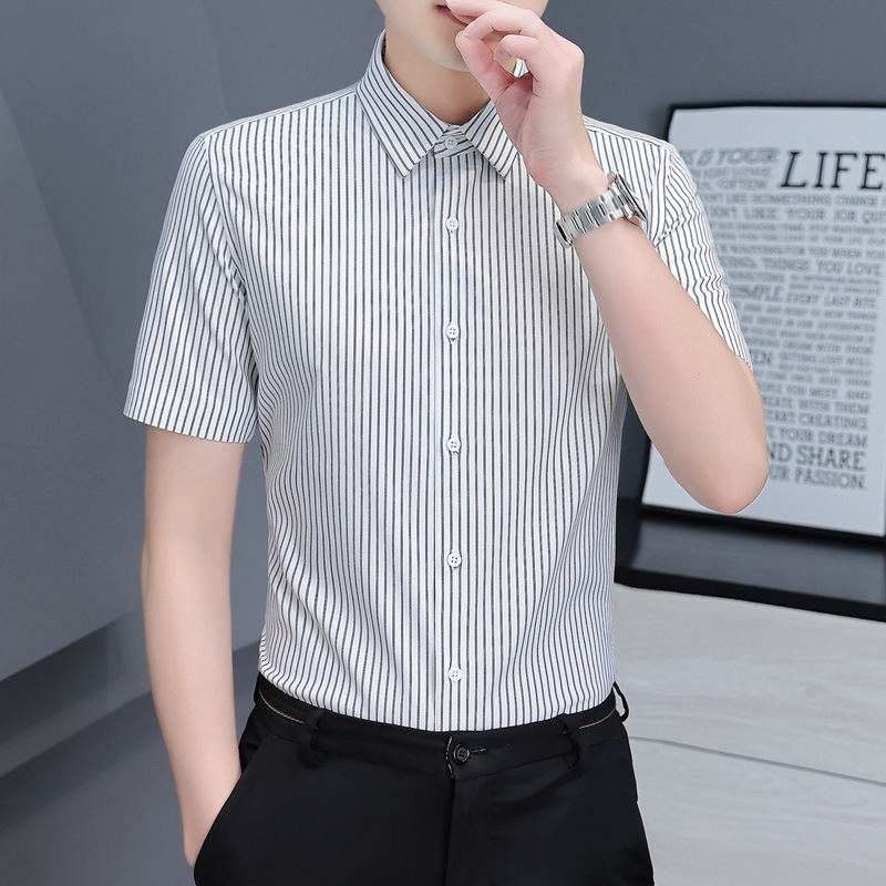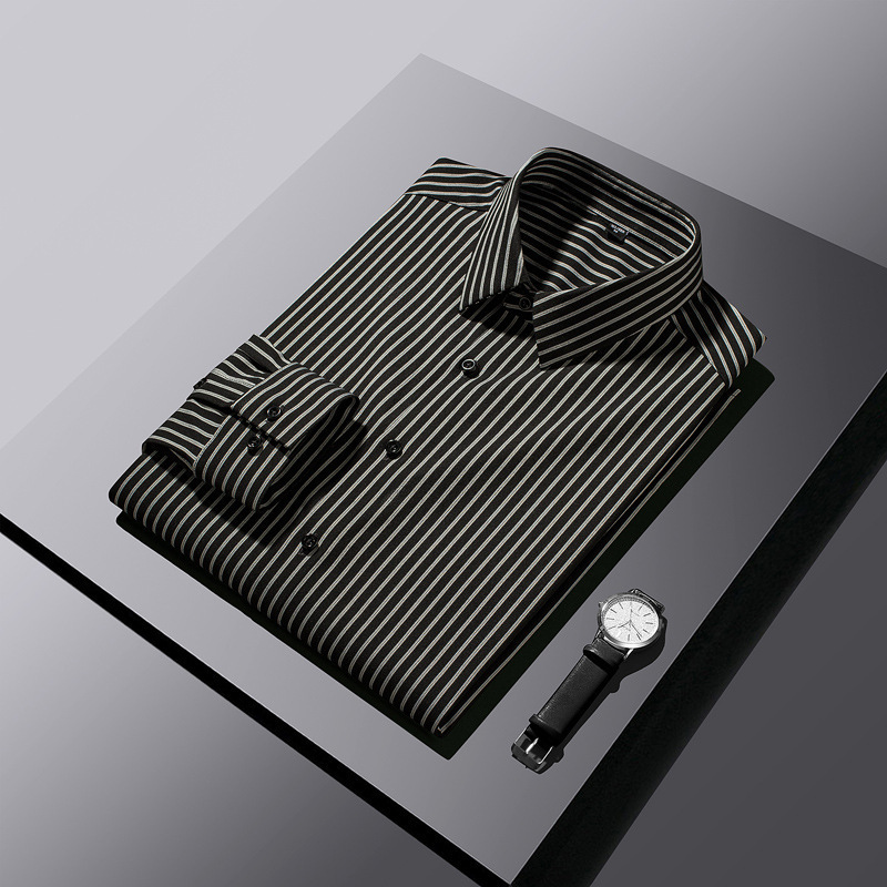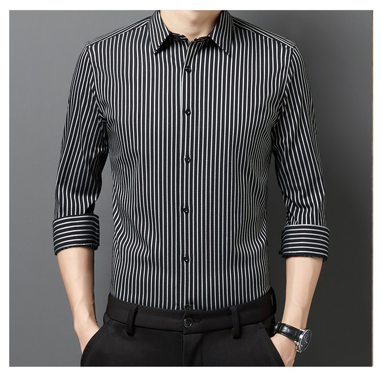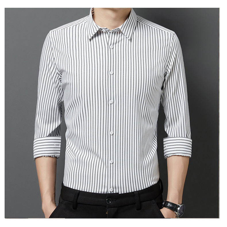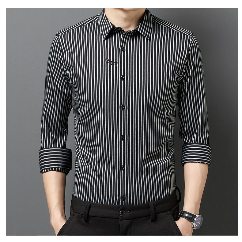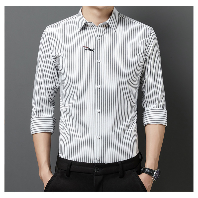 2025 봄 여름 남성 긴팔 셔츠 남성 한국 스타일 슬림 비즈니스 캐주얼 청소년 스트라이프 셔츠 긴팔 남성 트렌디스토어 가기