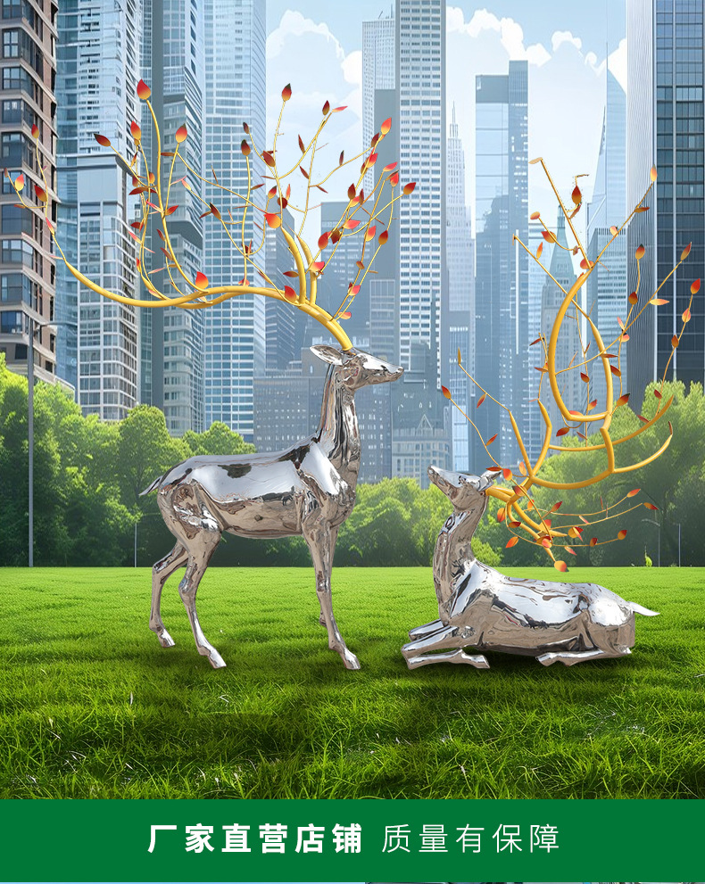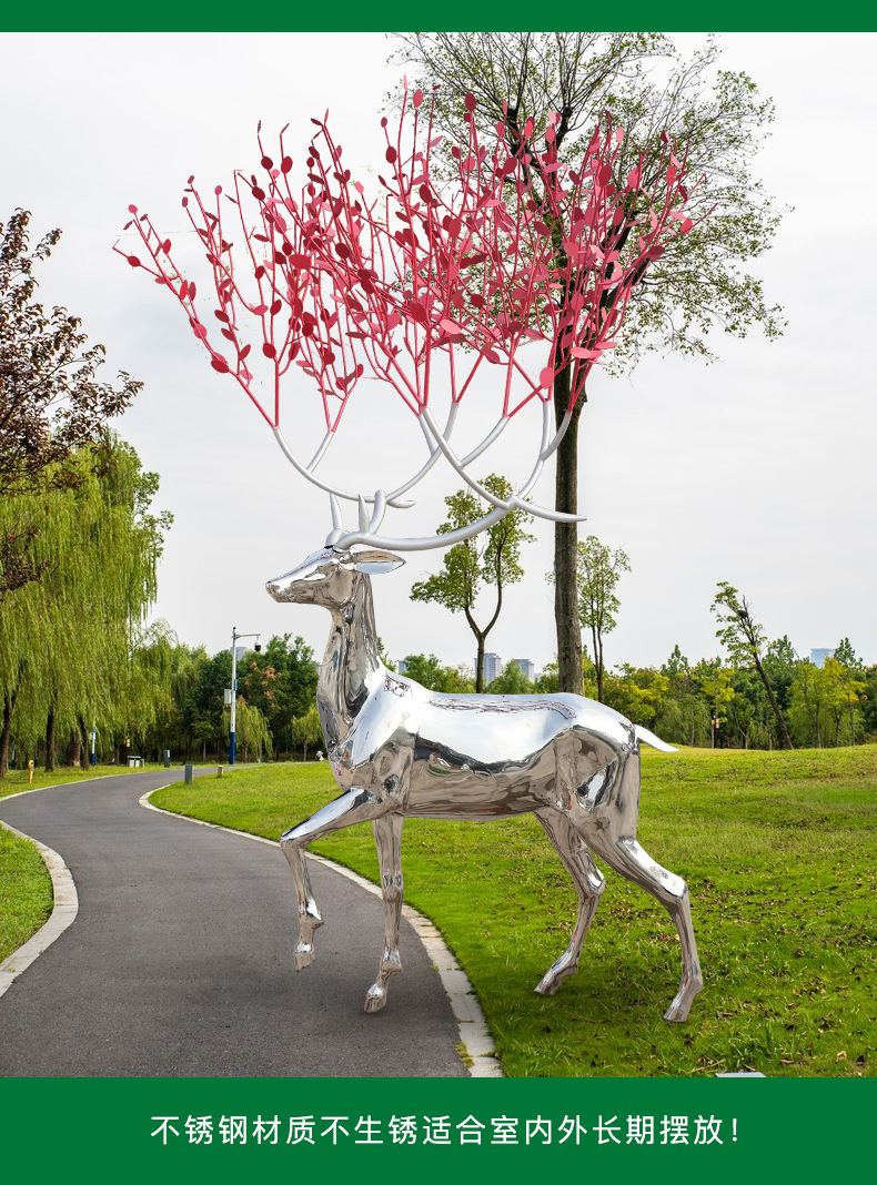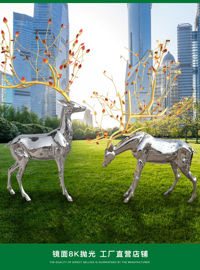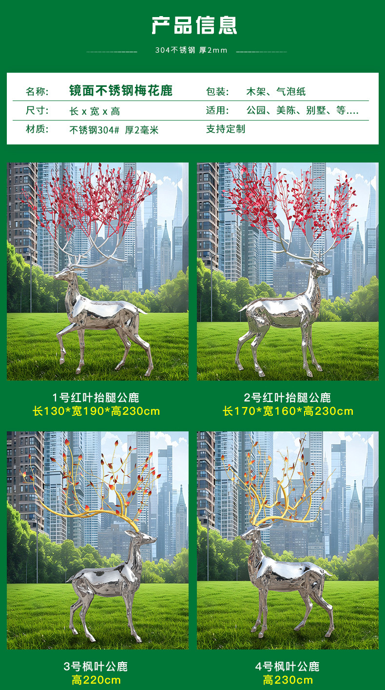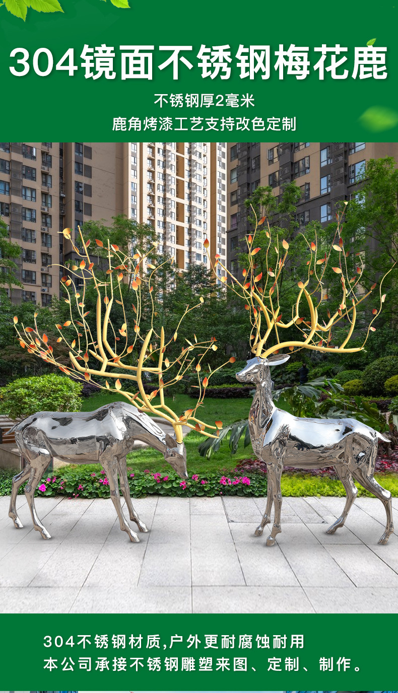 스테인레스 스틸 거울 사슴 조각 야외 공원 풍경 부동산 동물 매화 엘크 창조적 인 바닥 장식품스토어 가기
