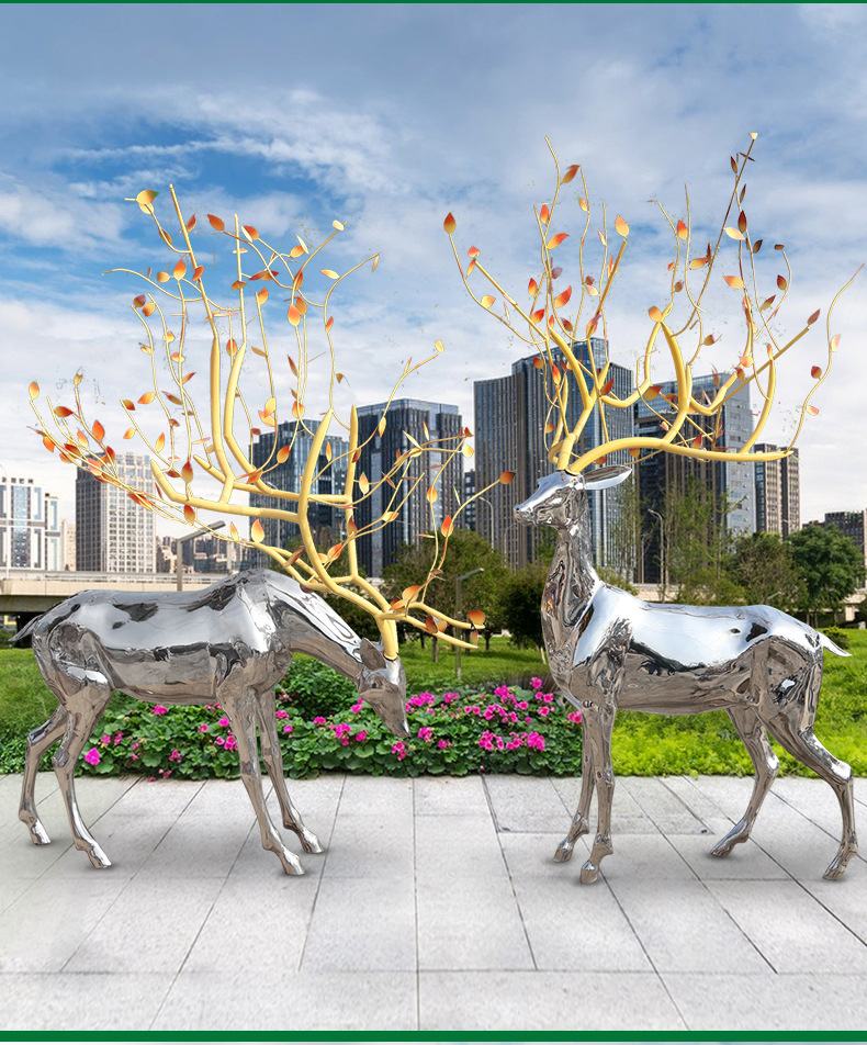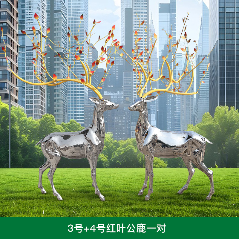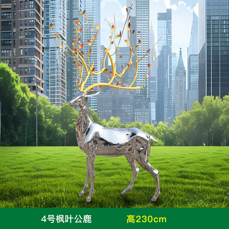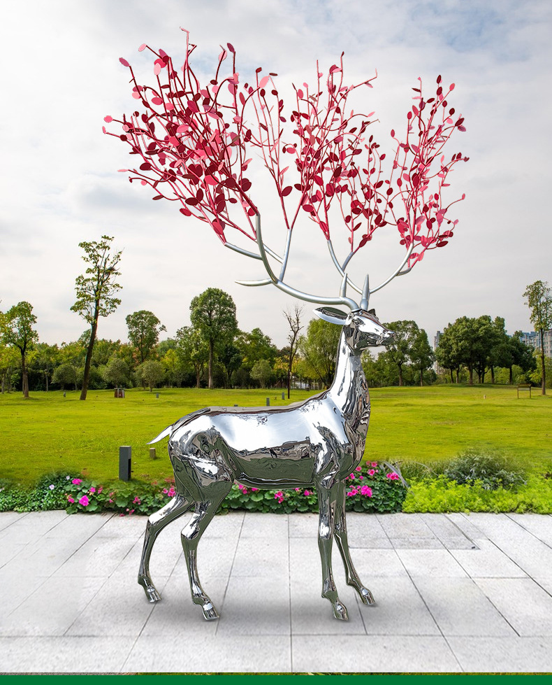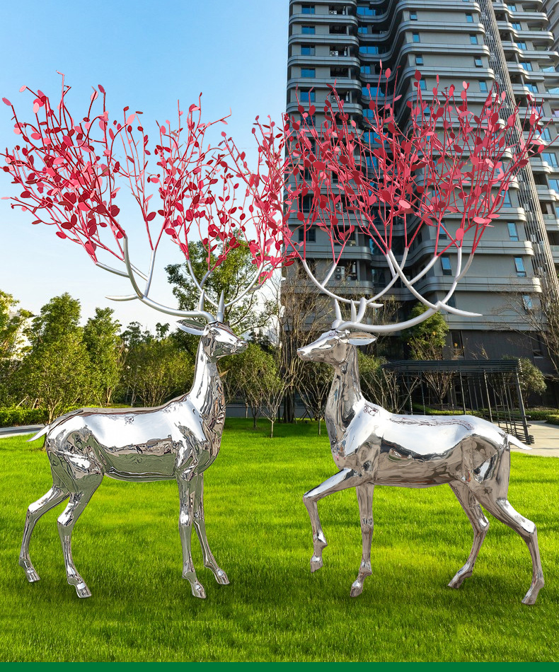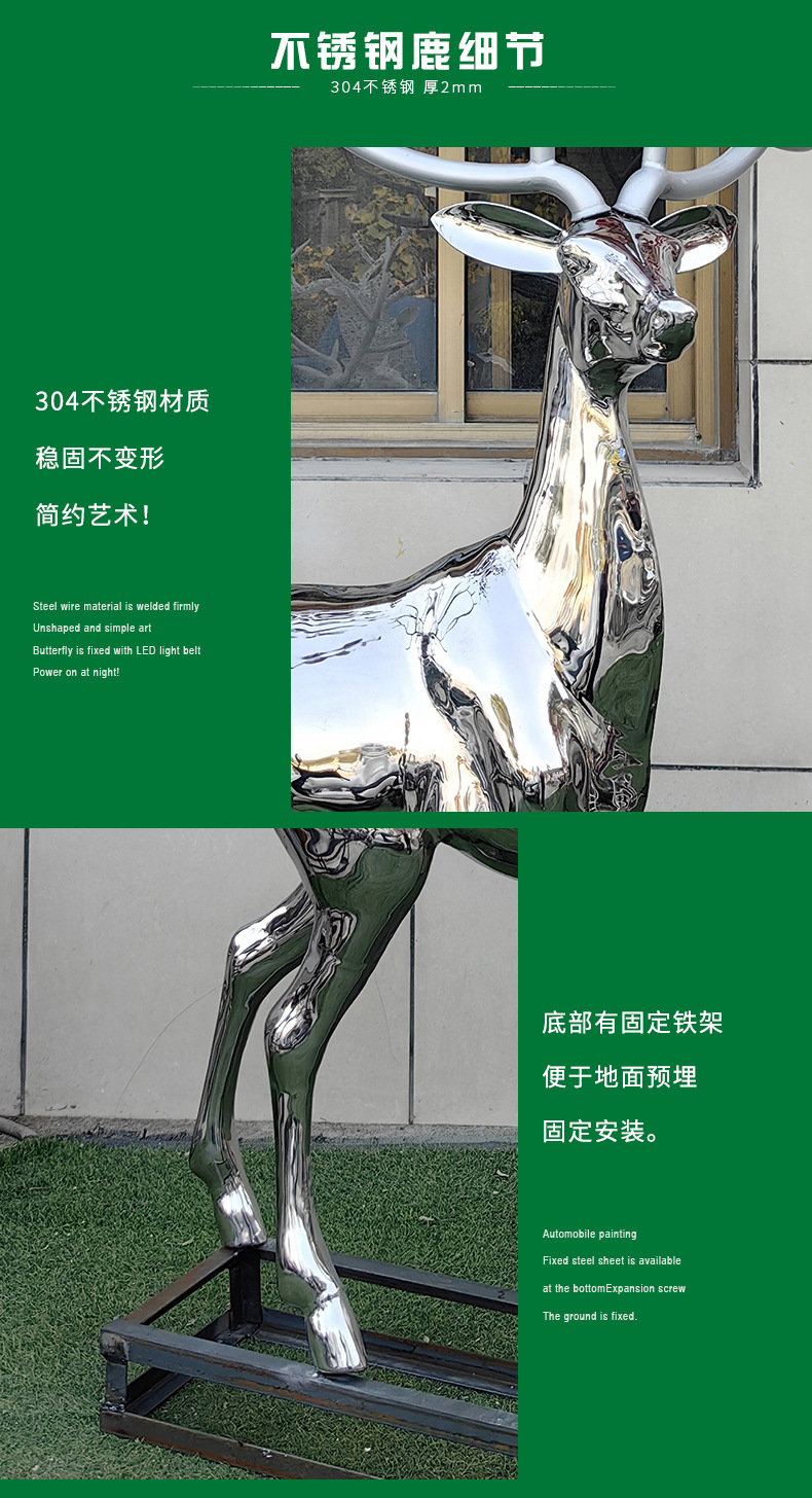 스테인레스 스틸 거울 사슴 조각 야외 공원 풍경 부동산 동물 매화 엘크 창조적 인 바닥 장식품스토어 가기