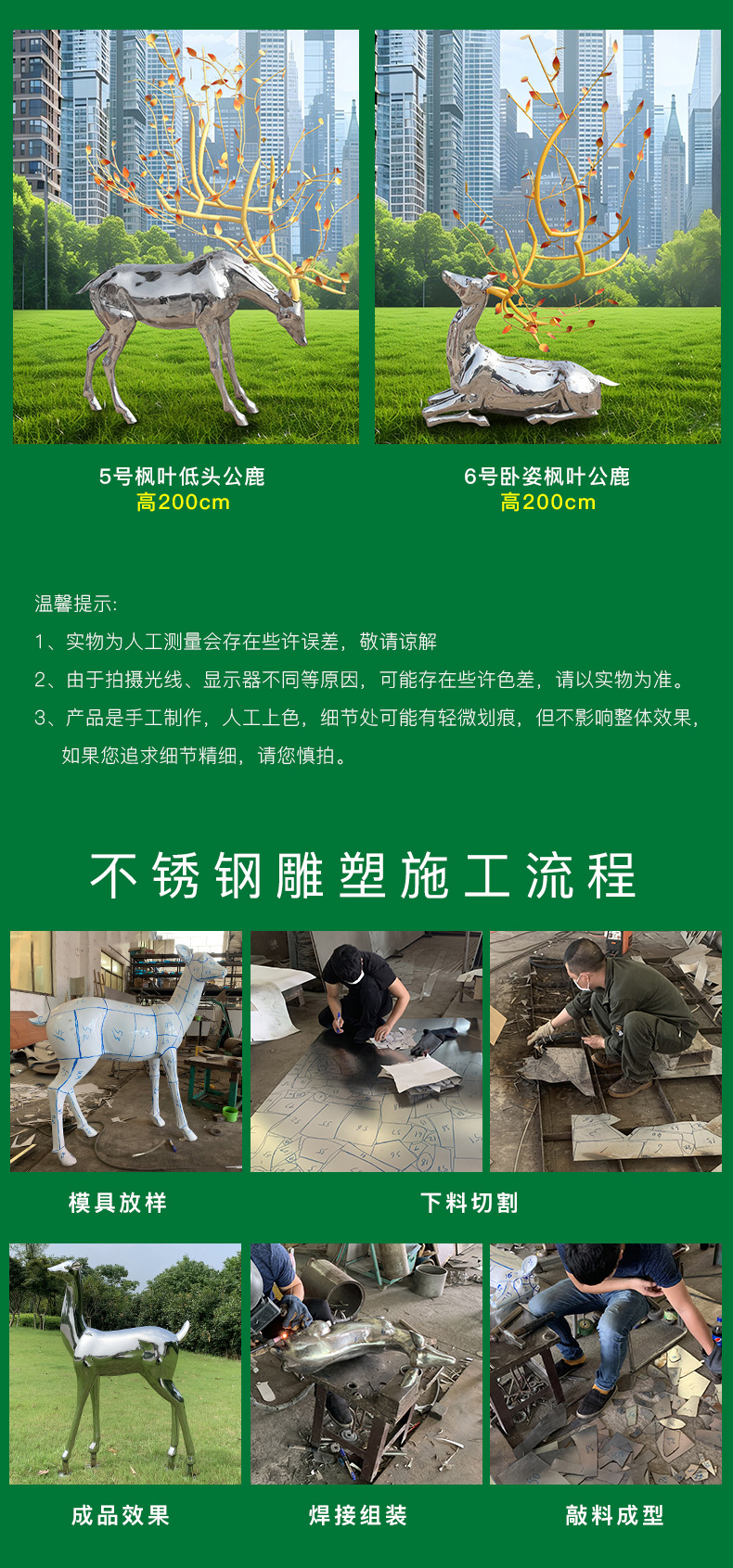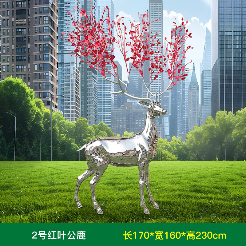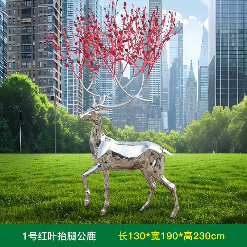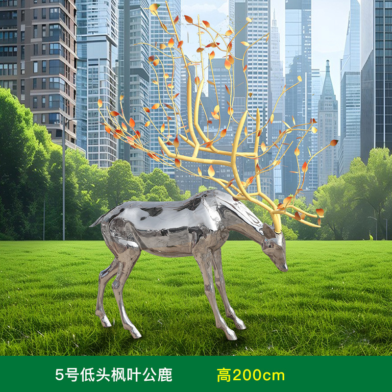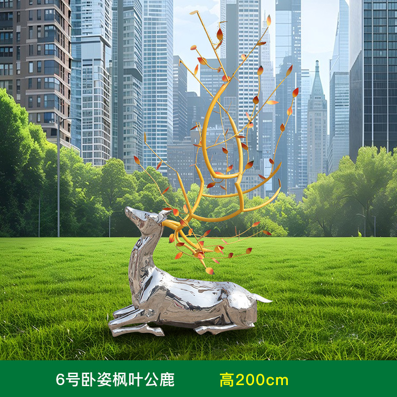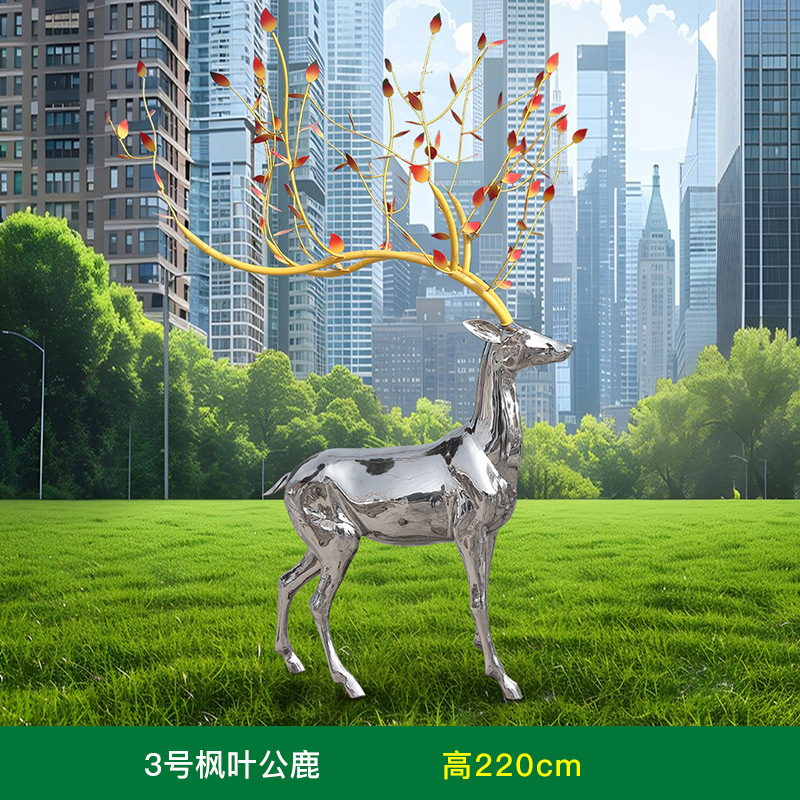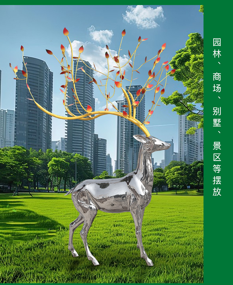 스테인레스 스틸 거울 사슴 조각 야외 공원 풍경 부동산 동물 매화 엘크 창조적 인 바닥 장식품스토어 가기