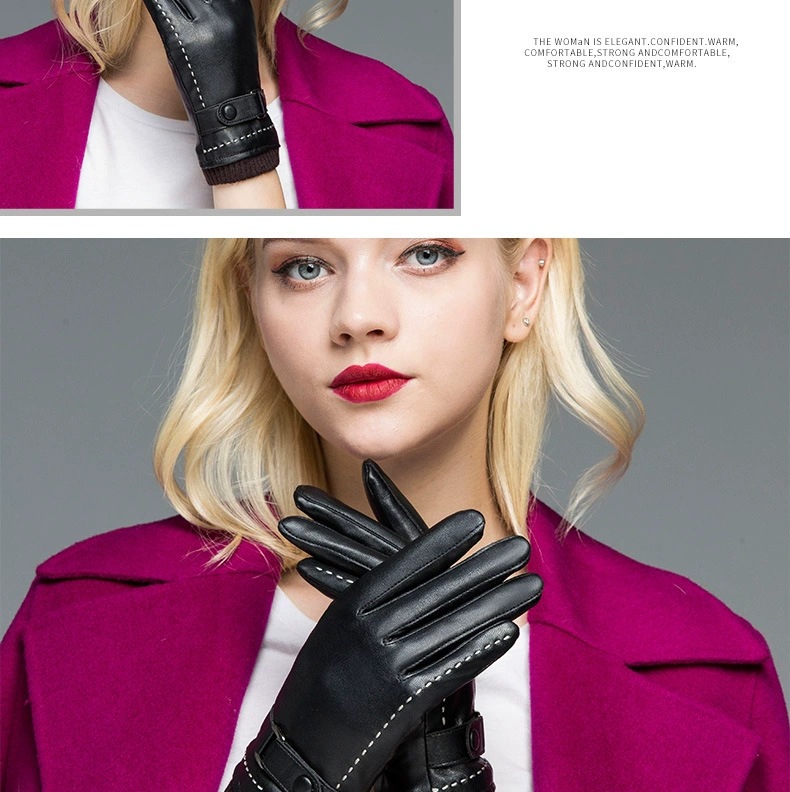 여성용 가죽 장갑, 벨벳 안감으로 따뜻함 유지, 양가죽 무늬, 터치스크린 가능, 두꺼운 크로스보더 장갑, 남성용 라이딩 장갑, 커플용 성인용