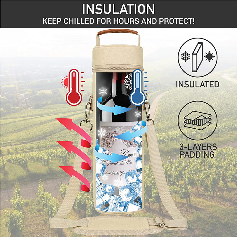 아마존 뜨거운 판매 휴대용 단일 병 와인 절연 가방 야외 피크닉 비치 휴대용 와인 냉장 아이스 백스토어 가기