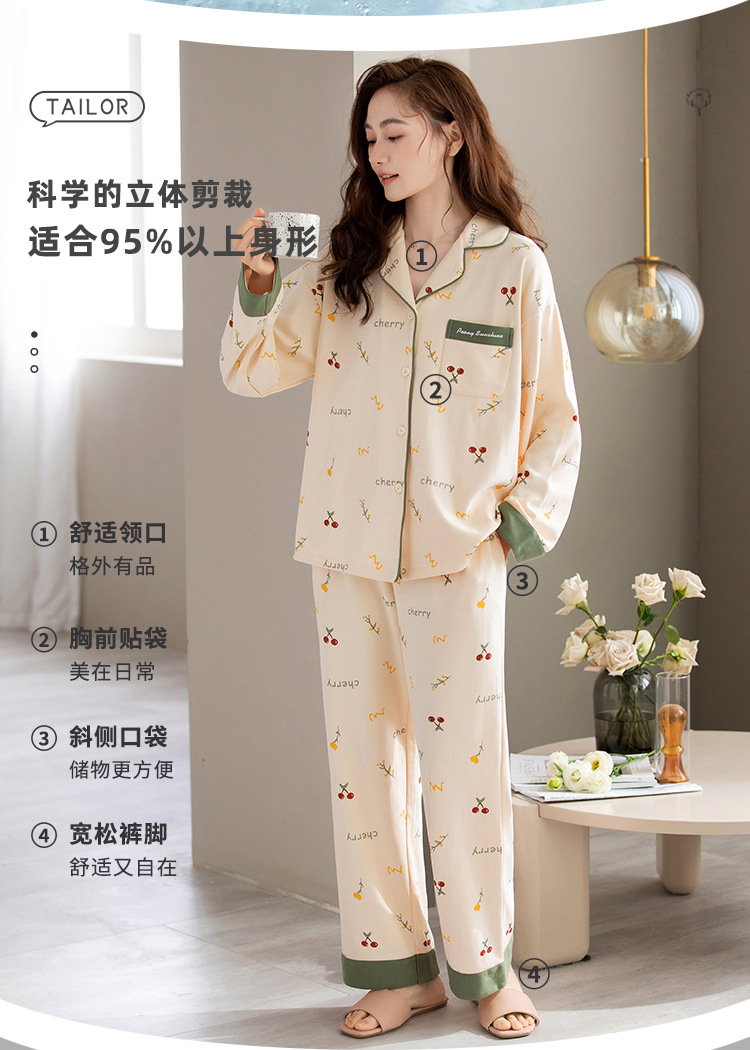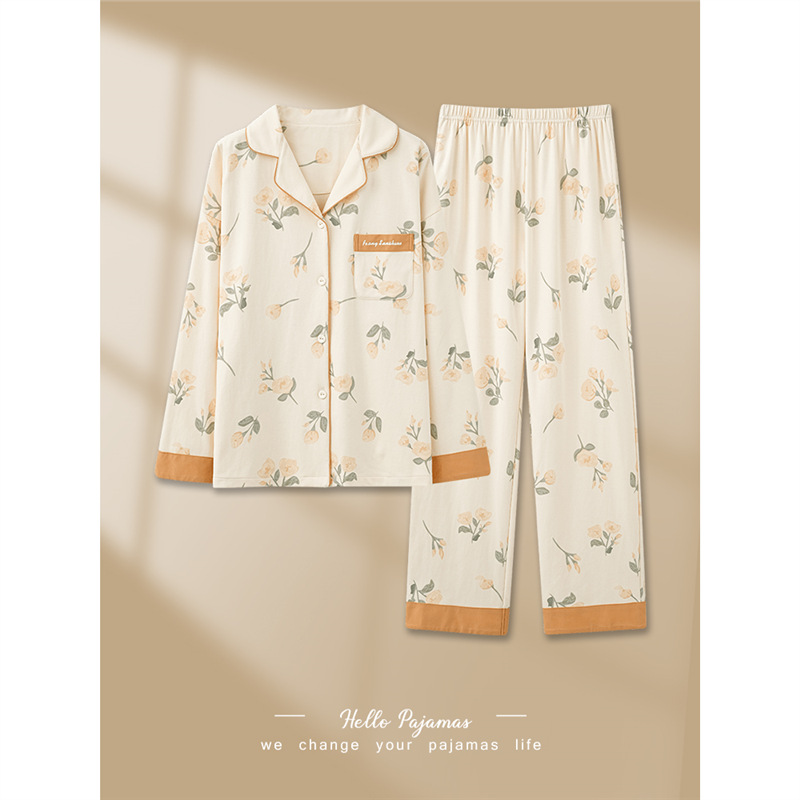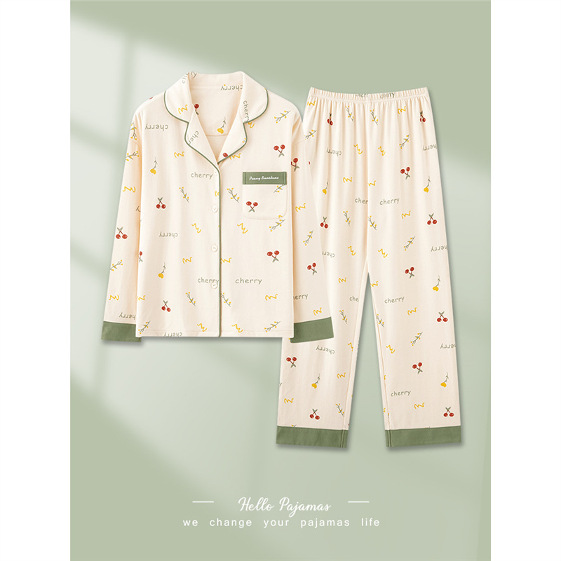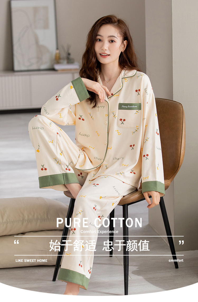 여성용 100% 면 잠옷 봄, 가을 2025 새로운 긴팔 얇은 면은 대형 가정복 외부에 착용 가능스토어 가기