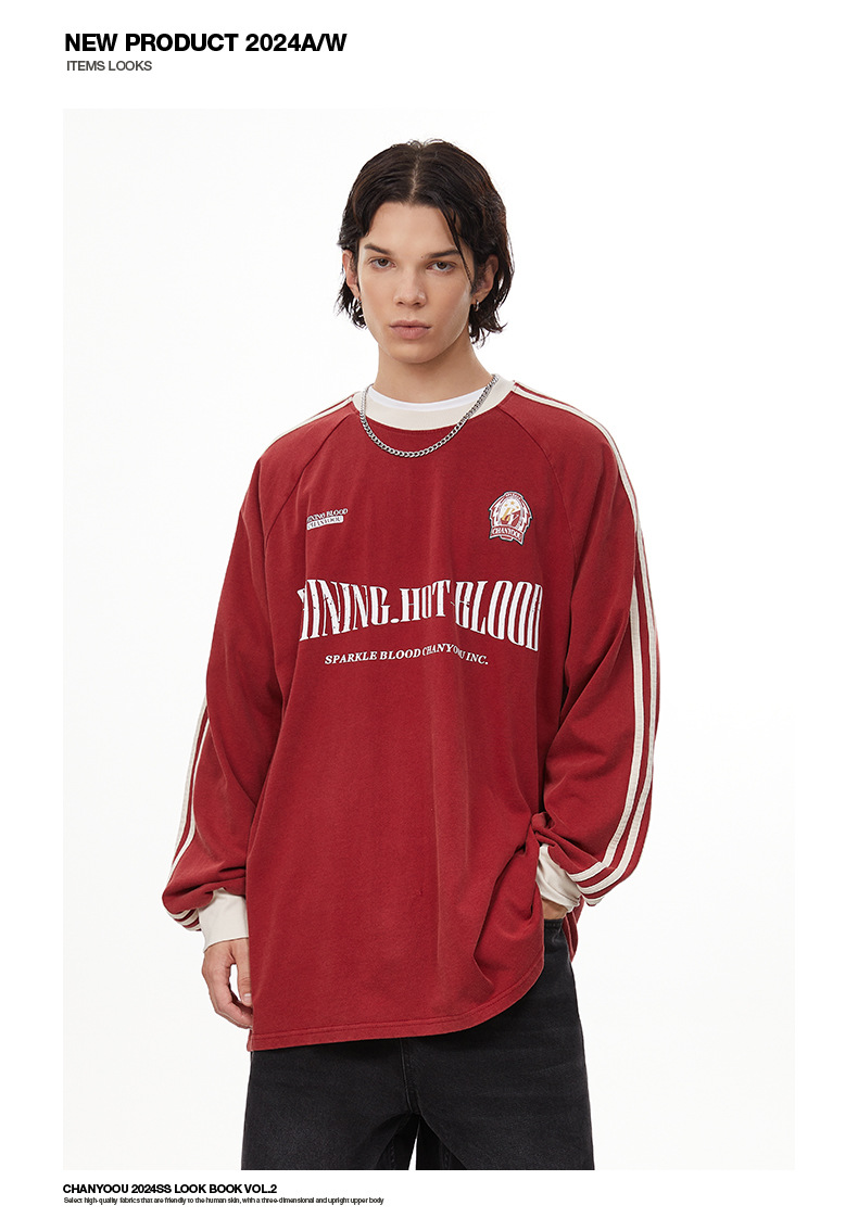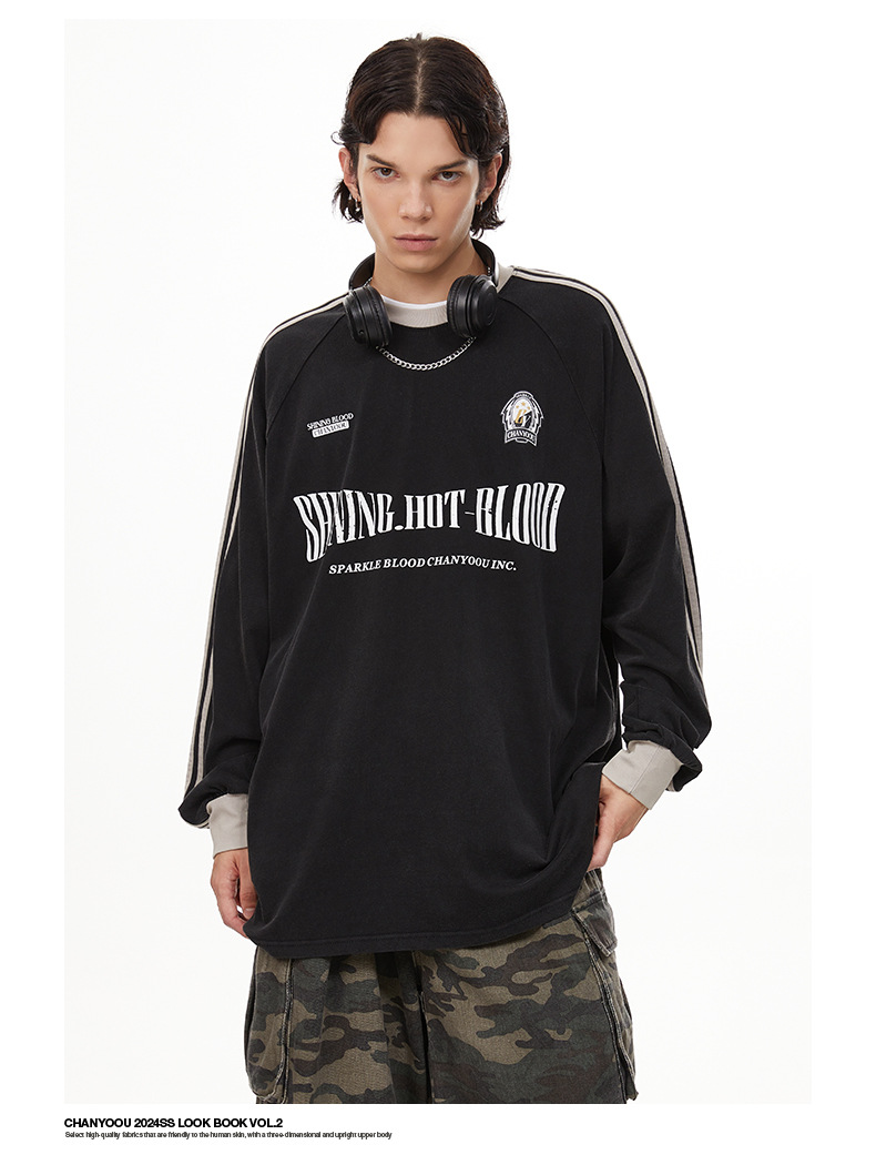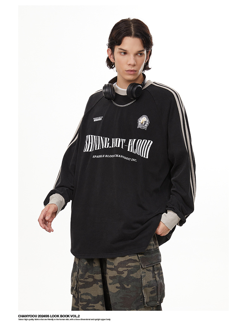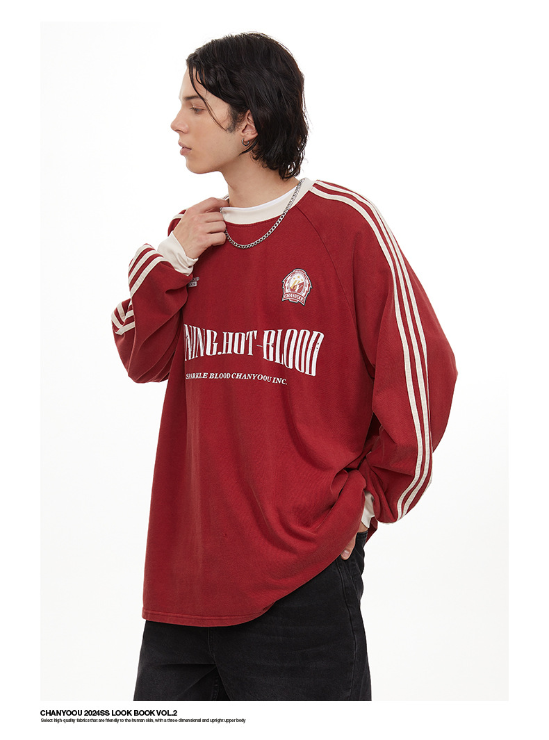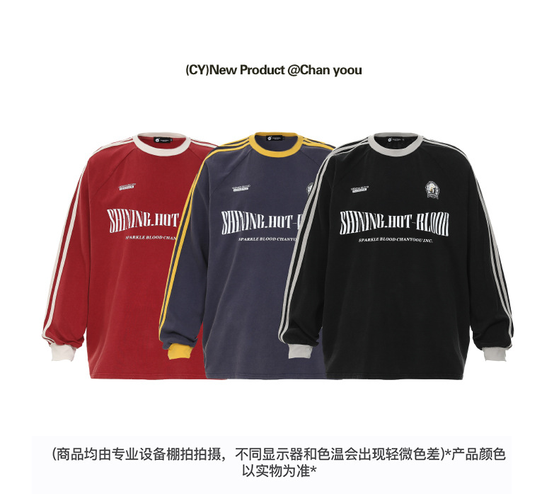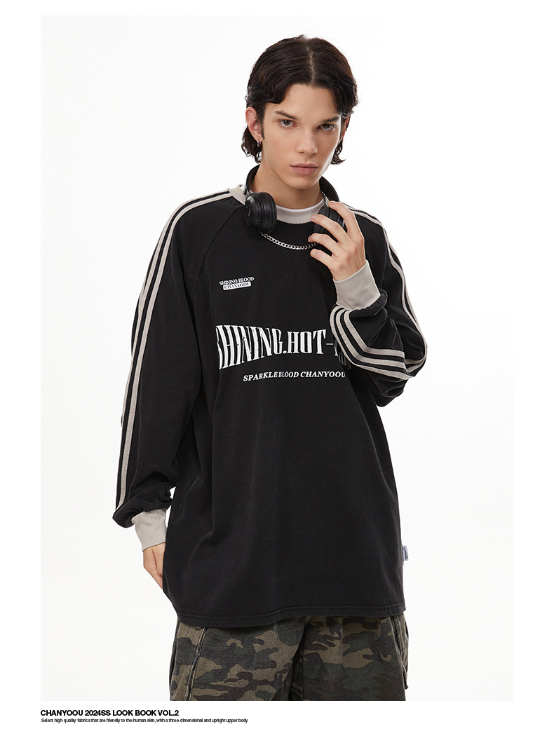 라이트샤오 남성복 | 아메리칸 레트로 3 스트라이프 저지 긴팔 티셔츠 남성 트렌디 브랜드 가을 루즈 캐주얼 커플 탑스토어 가기