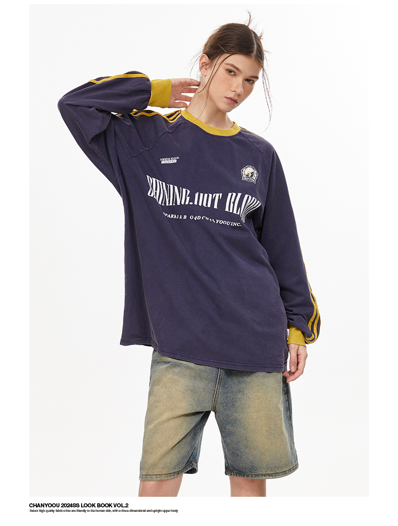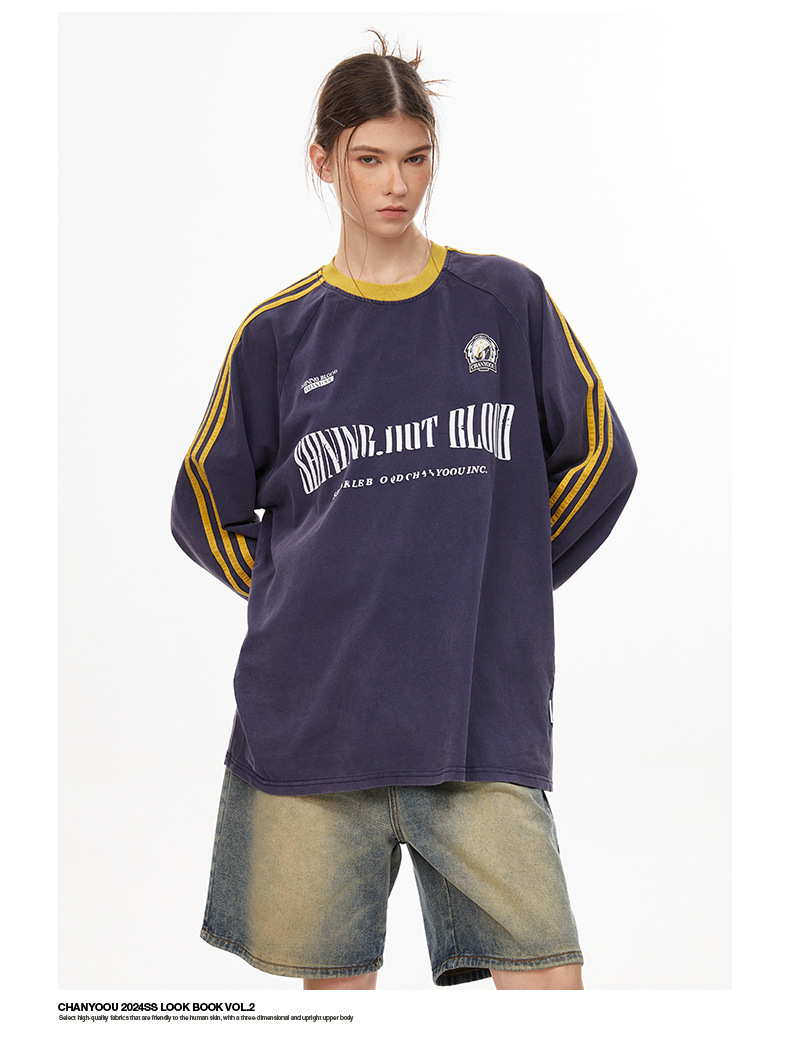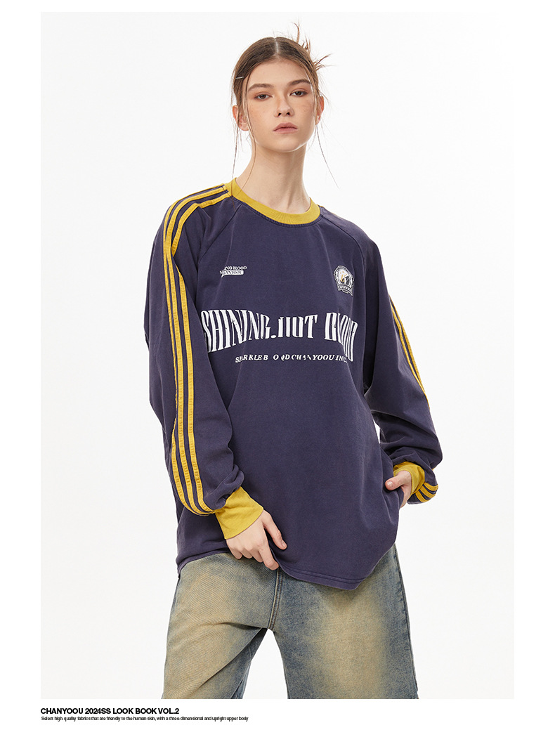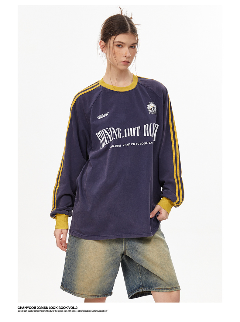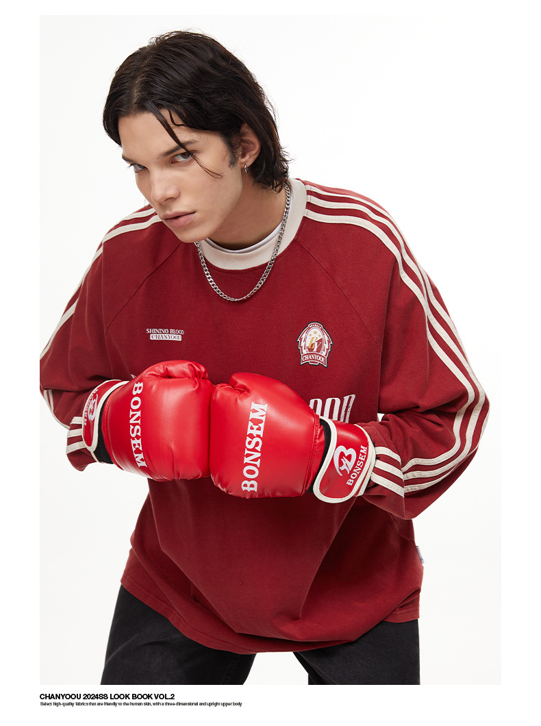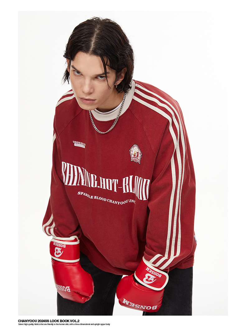 라이트샤오 남성복 | 아메리칸 레트로 3 스트라이프 저지 긴팔 티셔츠 남성 트렌디 브랜드 가을 루즈 캐주얼 커플 탑스토어 가기