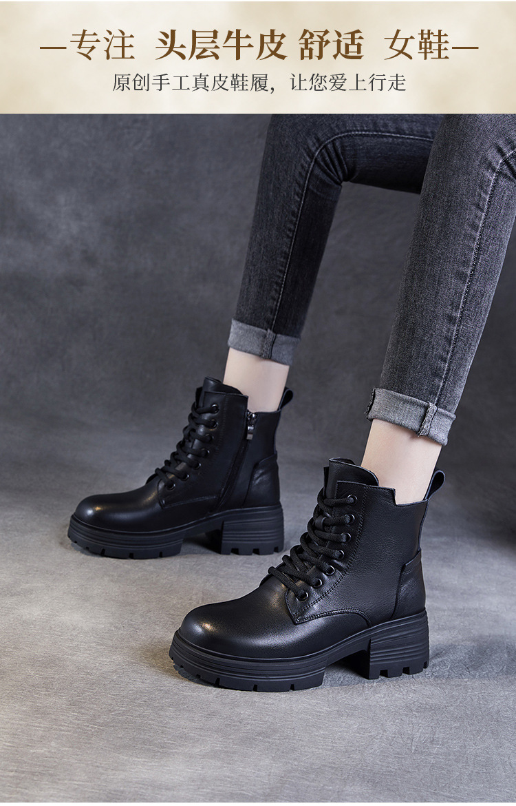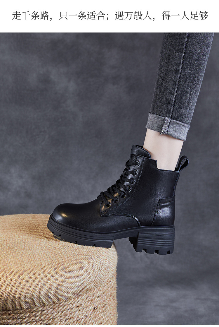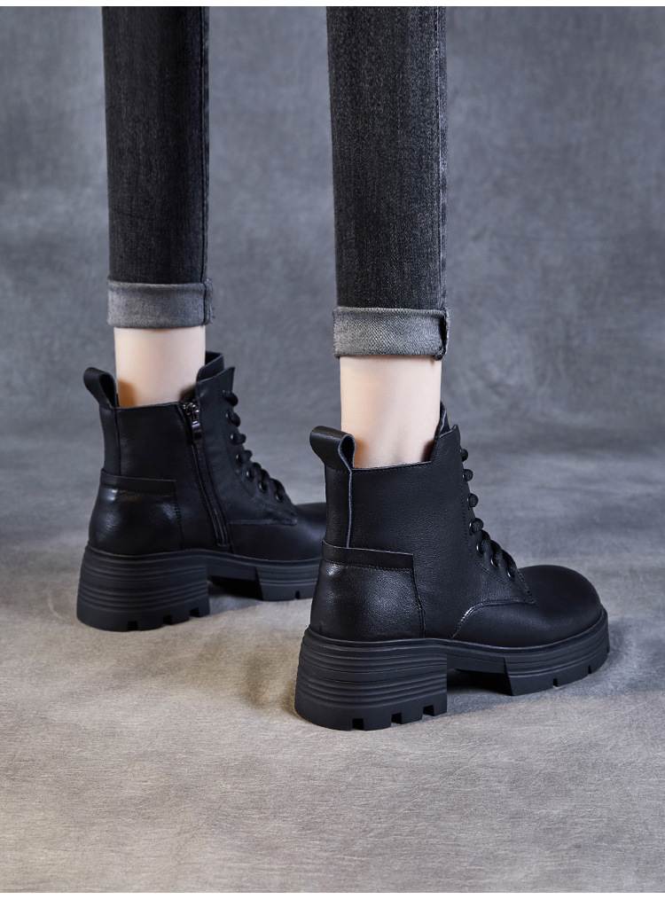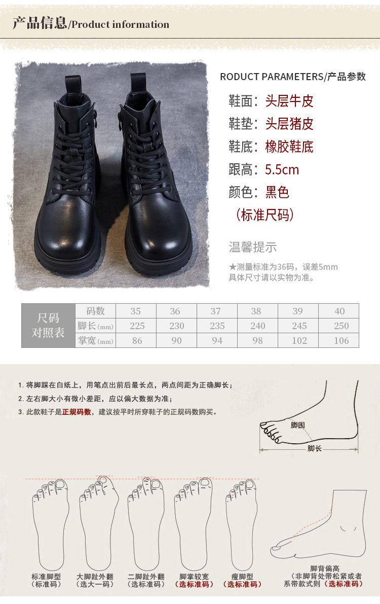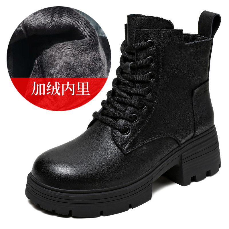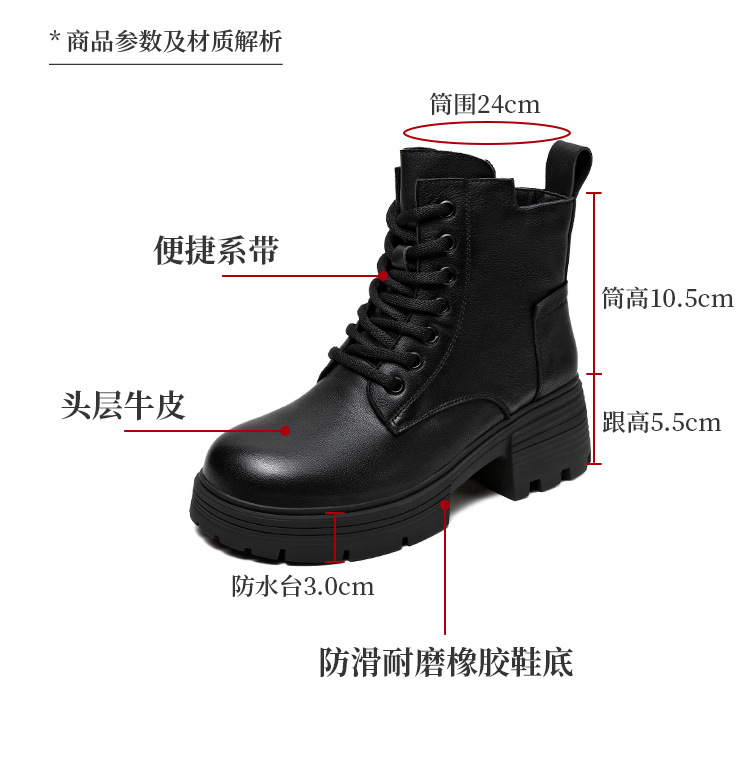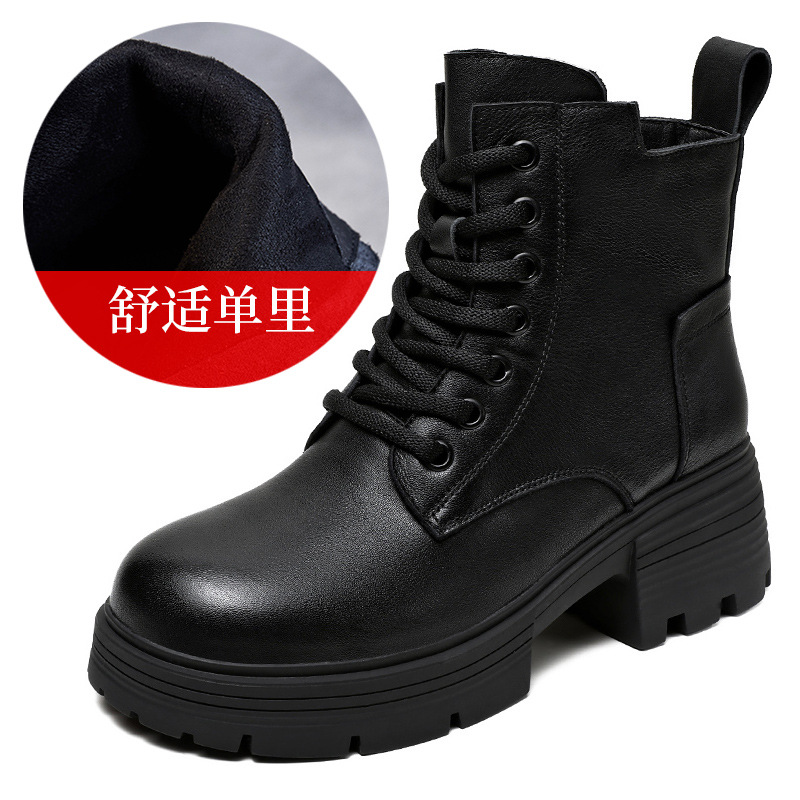 정품 가죽 마틴 부츠 여성 가을 및 겨울 코튼 신발 2024 새로운 두꺼운 힐 플랫폼 신발 영국 스타일 짧은 부츠 Cowhide 부츠스토어 가기