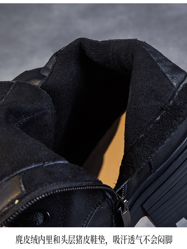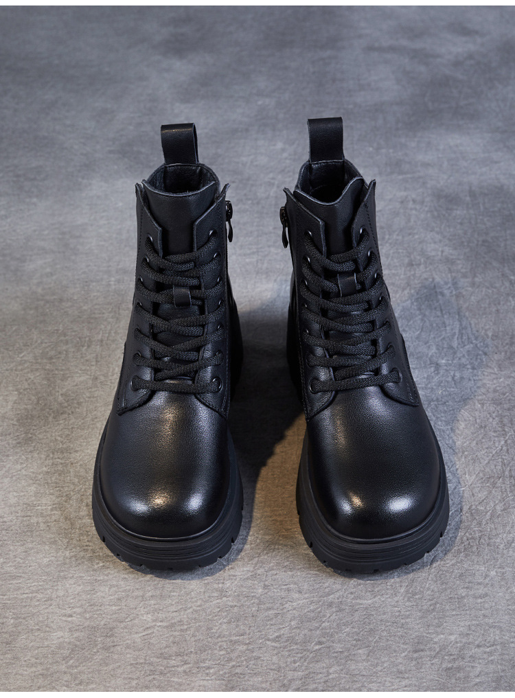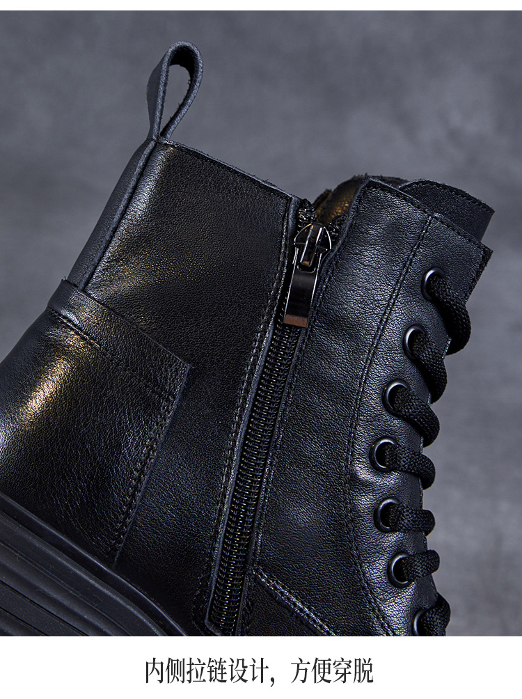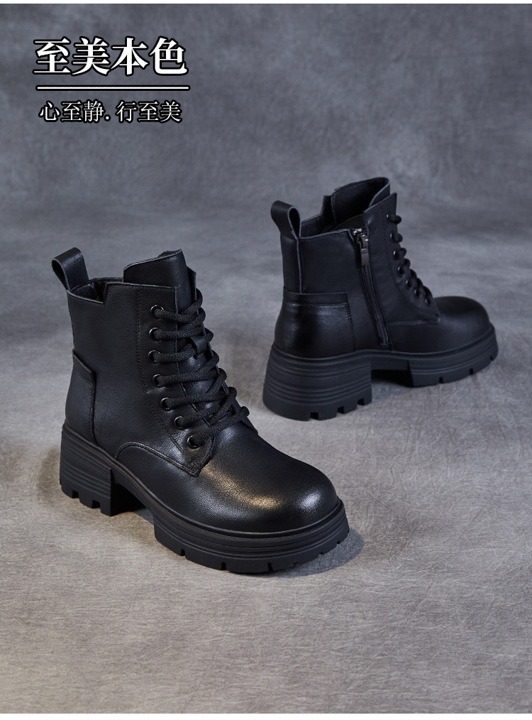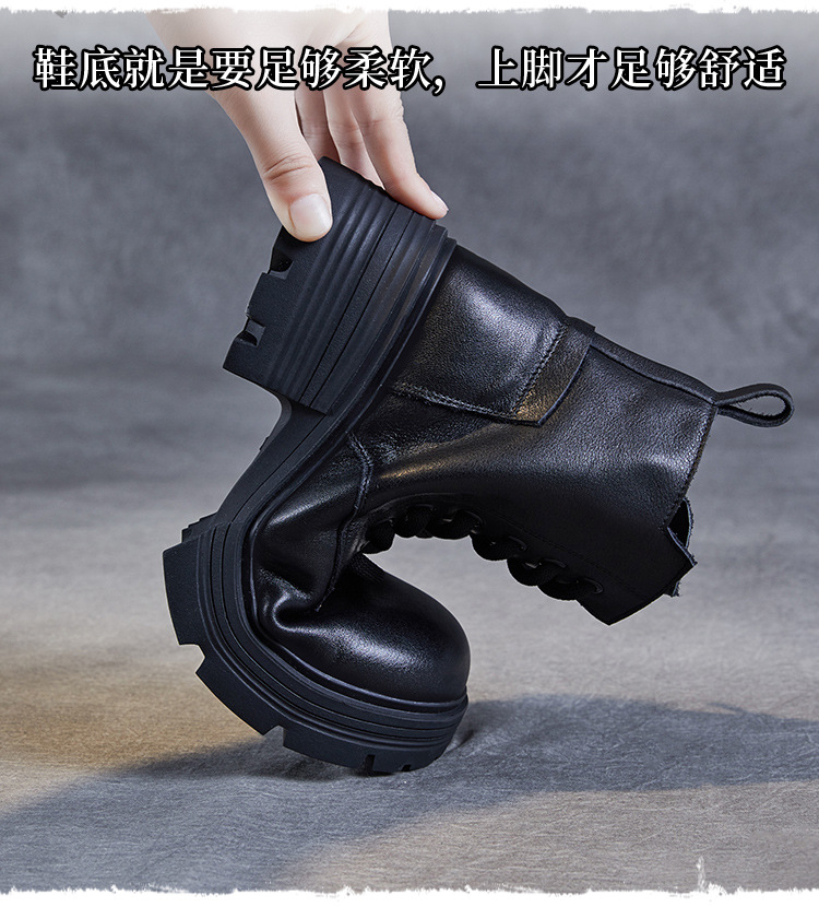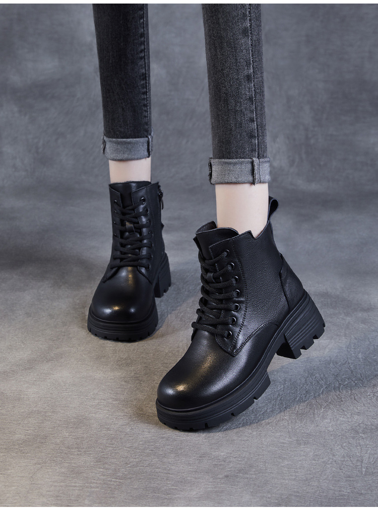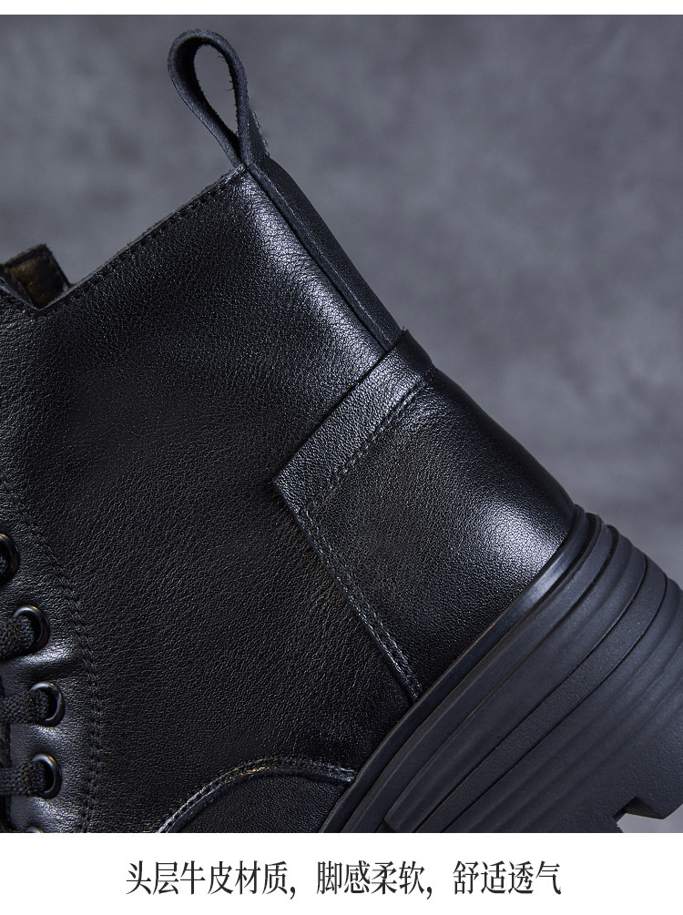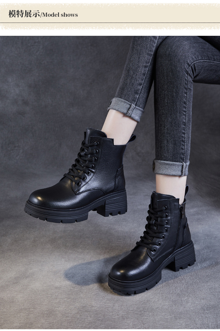 정품 가죽 마틴 부츠 여성 가을 및 겨울 코튼 신발 2024 새로운 두꺼운 힐 플랫폼 신발 영국 스타일 짧은 부츠 Cowhide 부츠스토어 가기