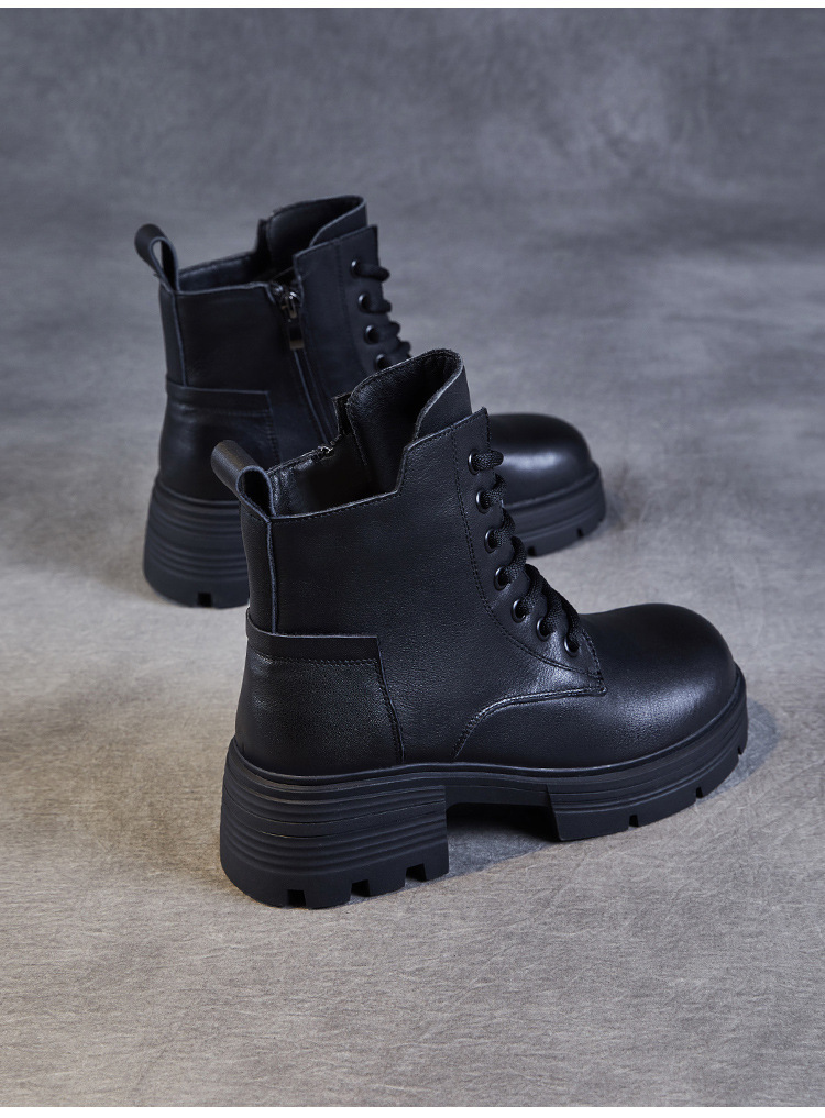정품 가죽 마틴 부츠 여성 가을 및 겨울 코튼 신발 2024 새로운 두꺼운 힐 플랫폼 신발 영국 스타일 짧은 부츠 Cowhide 부츠