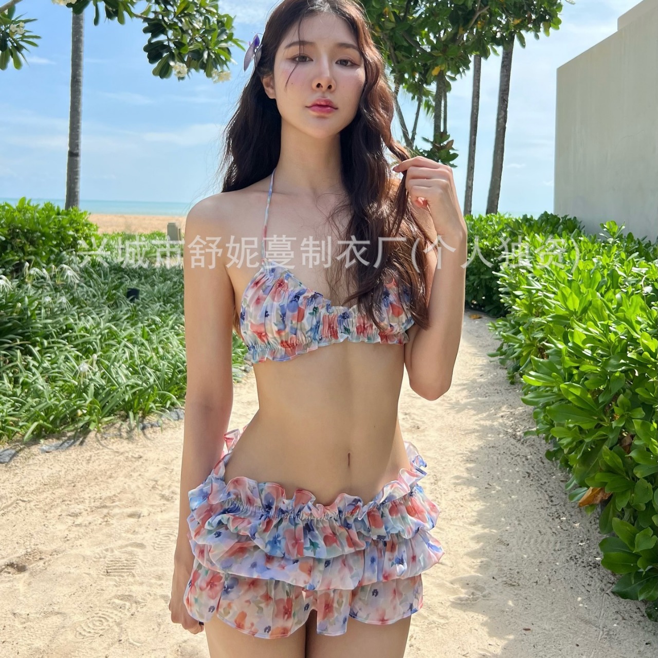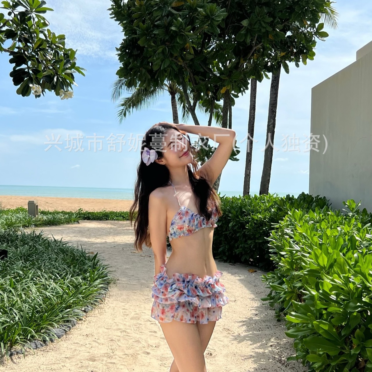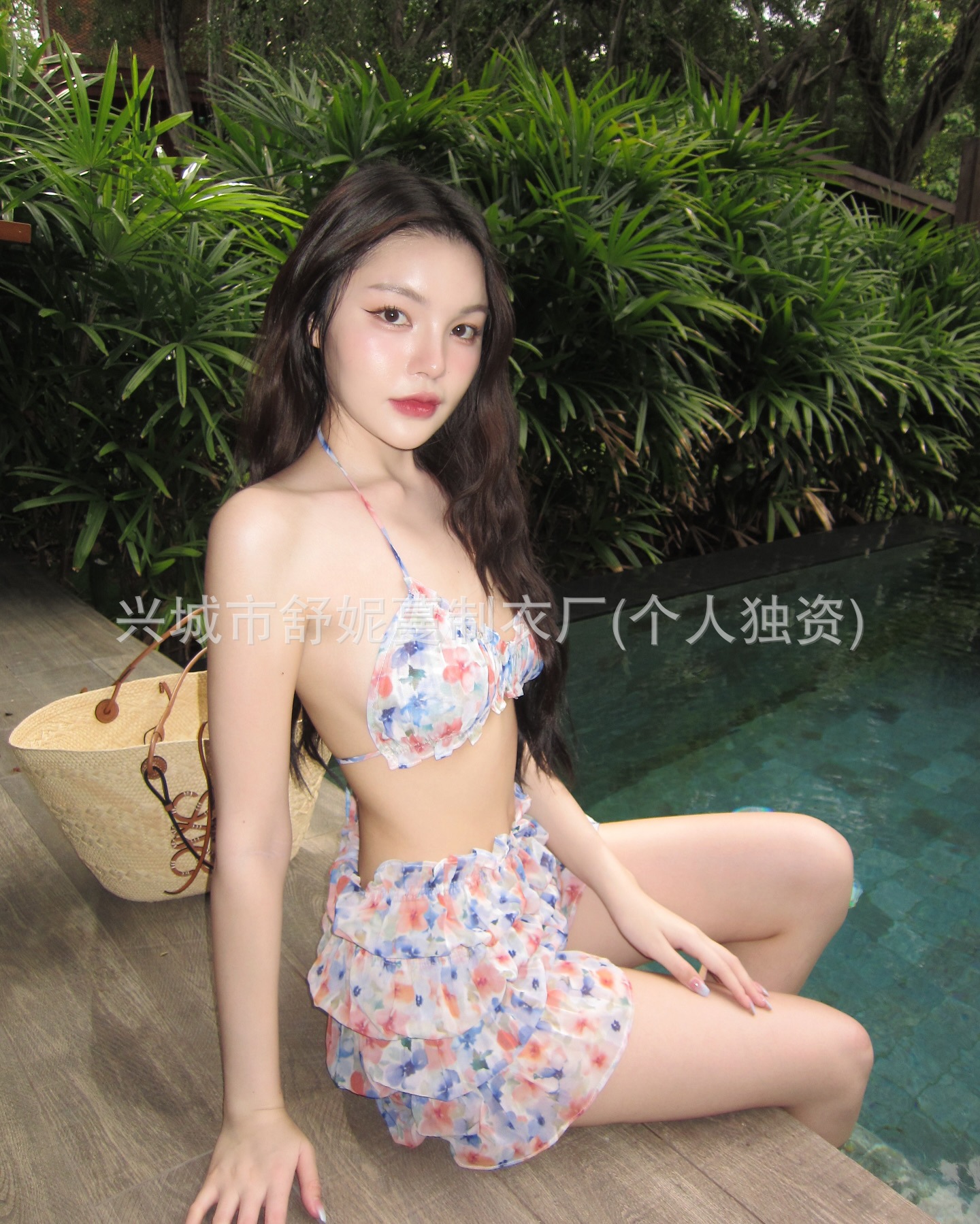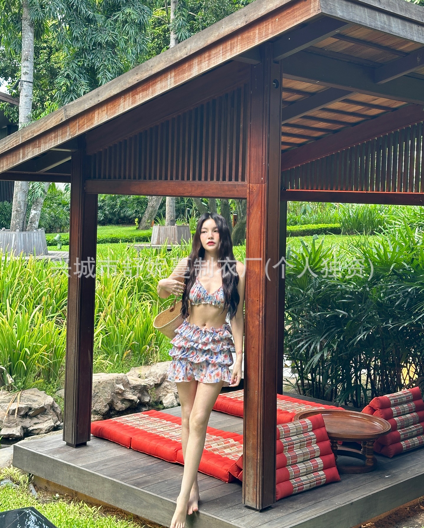 태국, 뜨거운 소녀 비키니 3 피스 세트 슬링 섹시한 꽃 수영복 여성 도매 바람 블로거