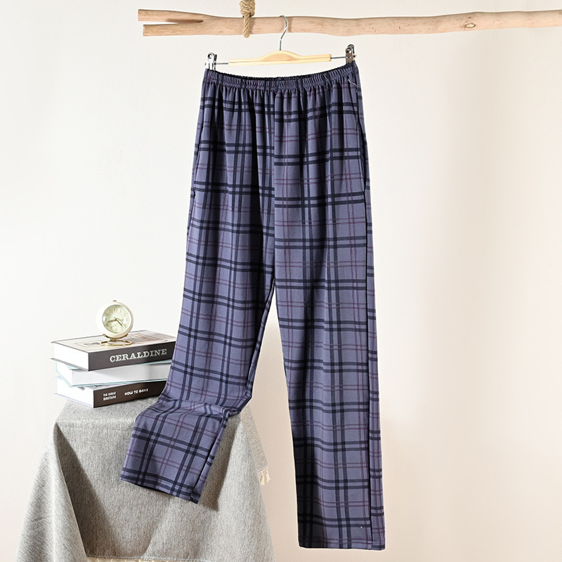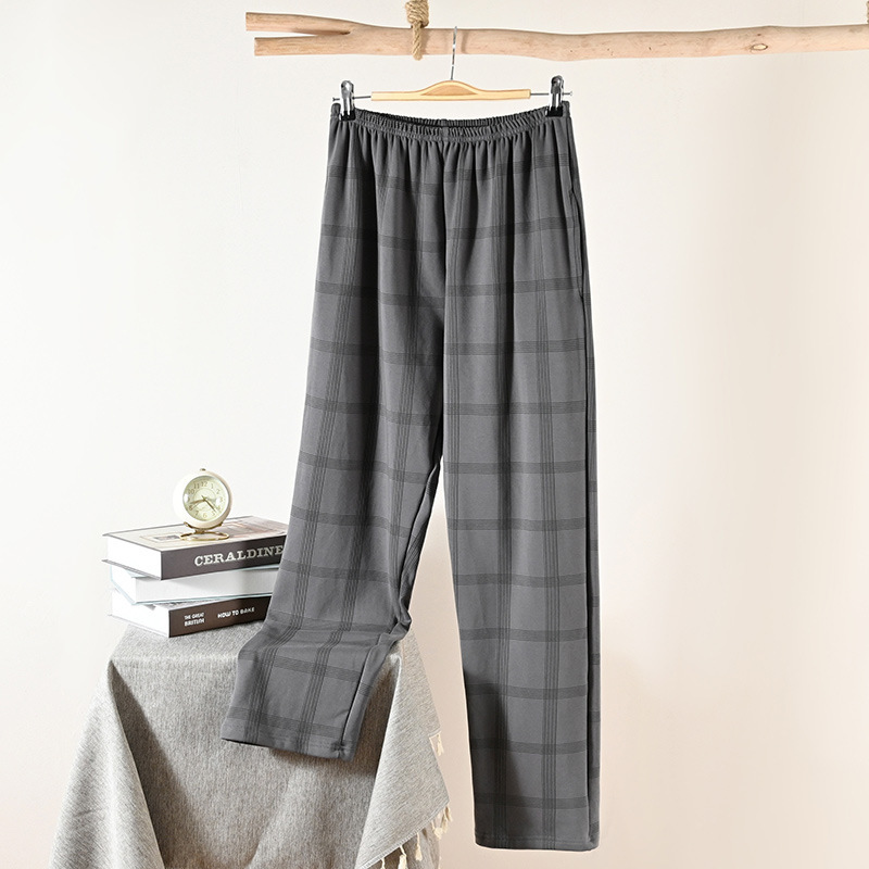 새로운 니트 코튼 남자의 가을 파자마 바지 면 남자 바지 싱글 바지 느슨한 플러스 사이즈 홈 바지 에어컨 바지스토어 가기