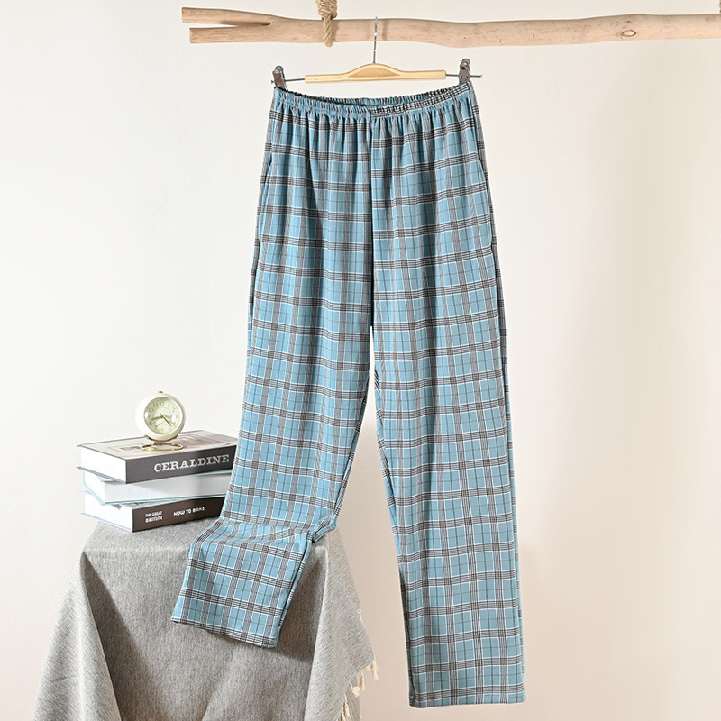 새로운 니트 코튼 남자의 가을 파자마 바지 면 남자 바지 싱글 바지 느슨한 플러스 사이즈 홈 바지 에어컨 바지