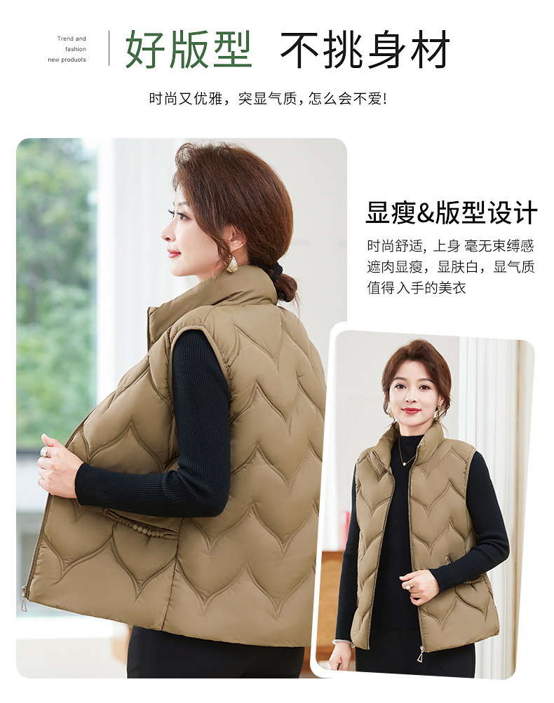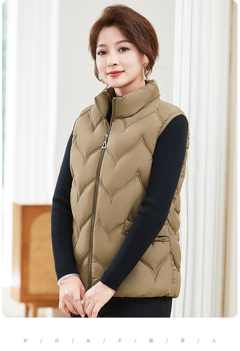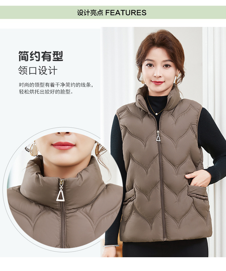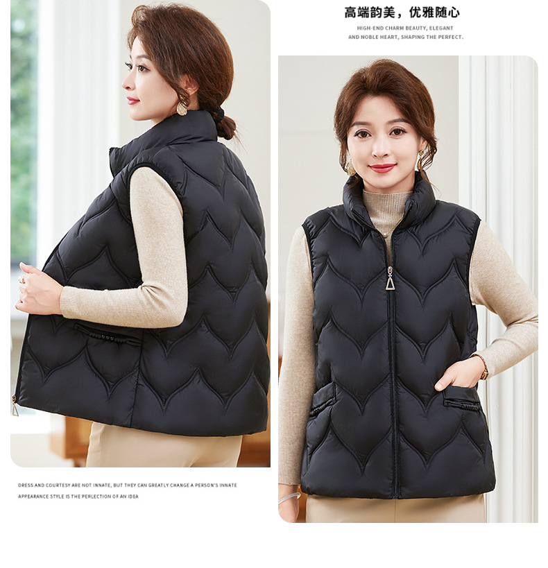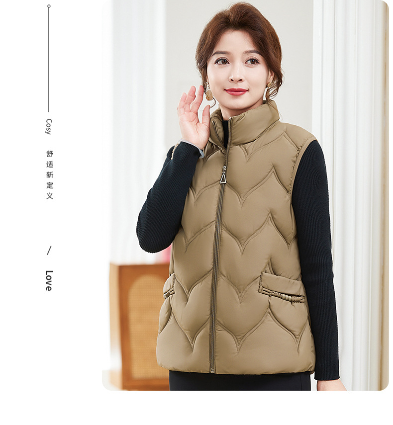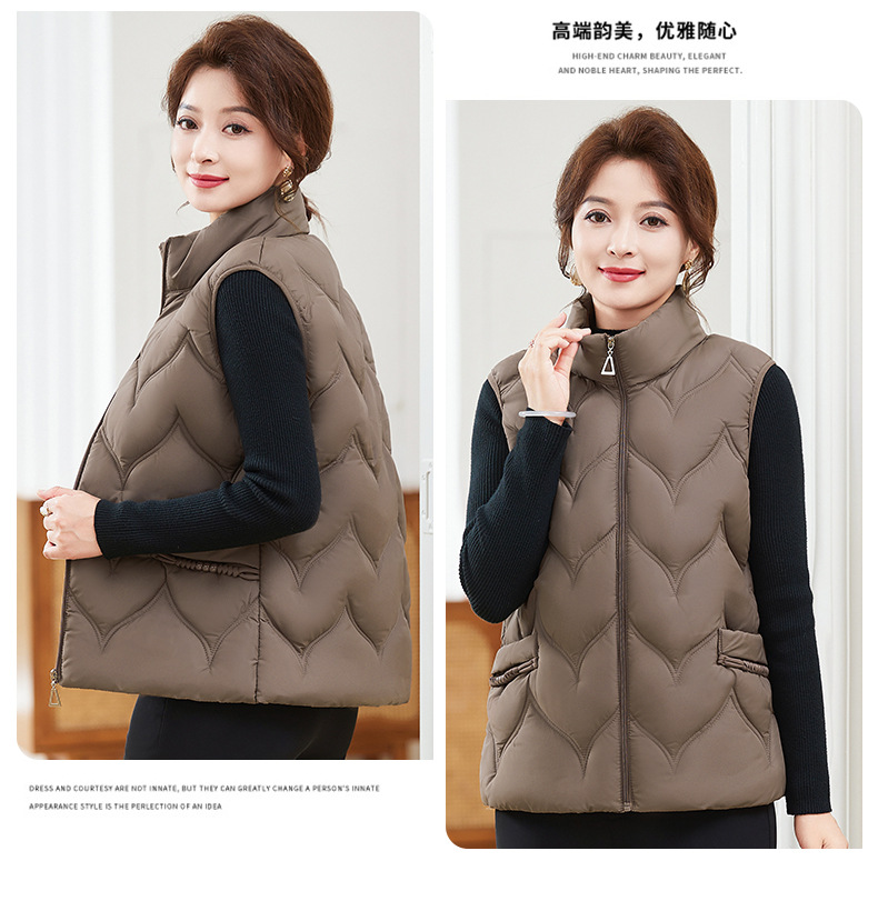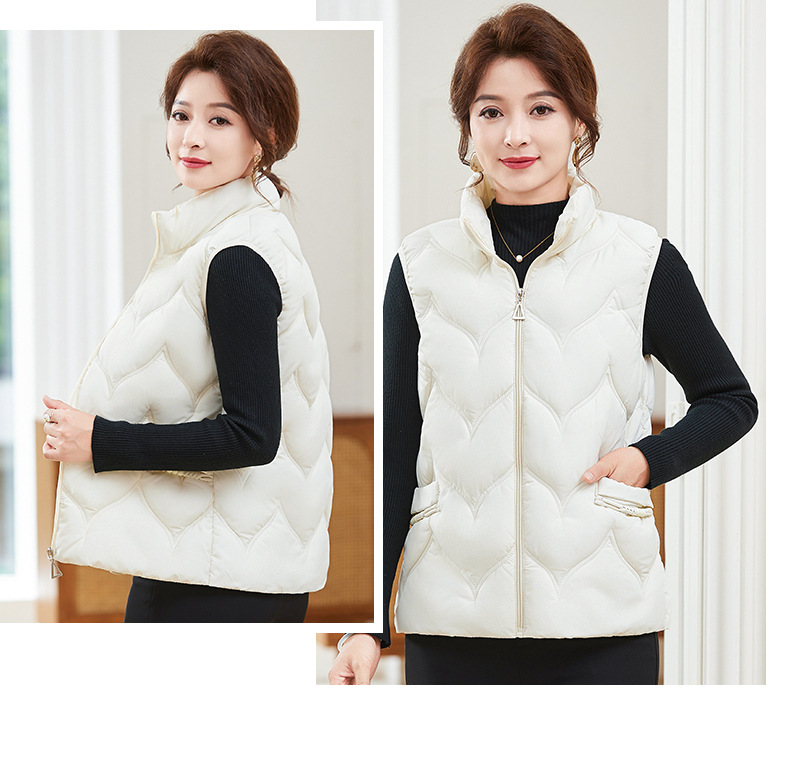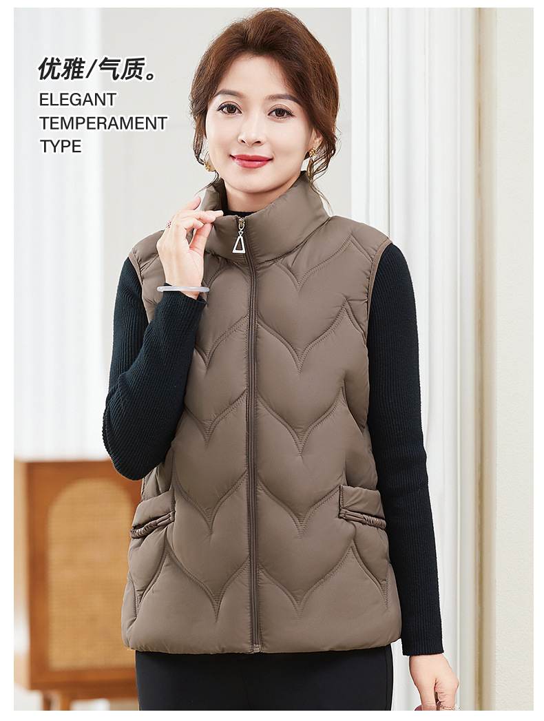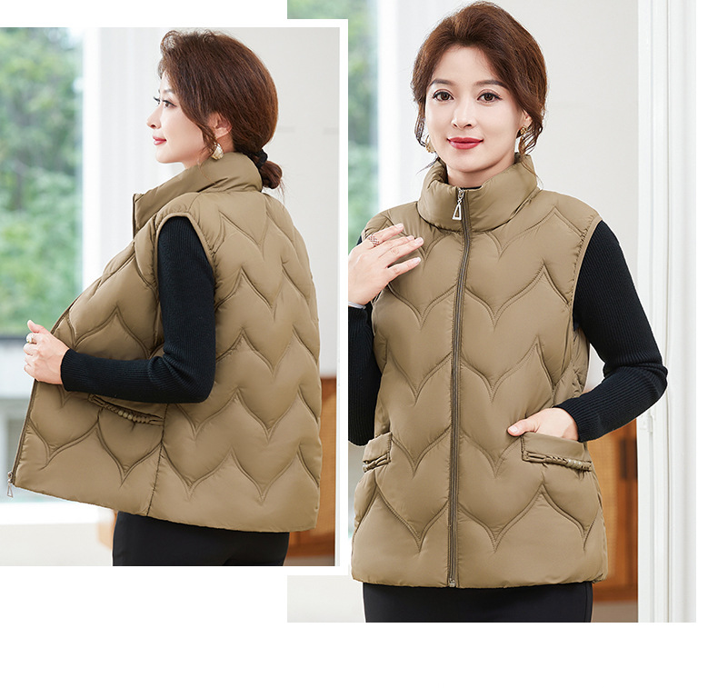 2025 새로운 가을, 겨울 다운 코튼 조끼 엄마 플러스 사이즈 스탠드 업 칼라 코튼 조끼 중년 및 노인 여성 따뜻한 탑 조끼