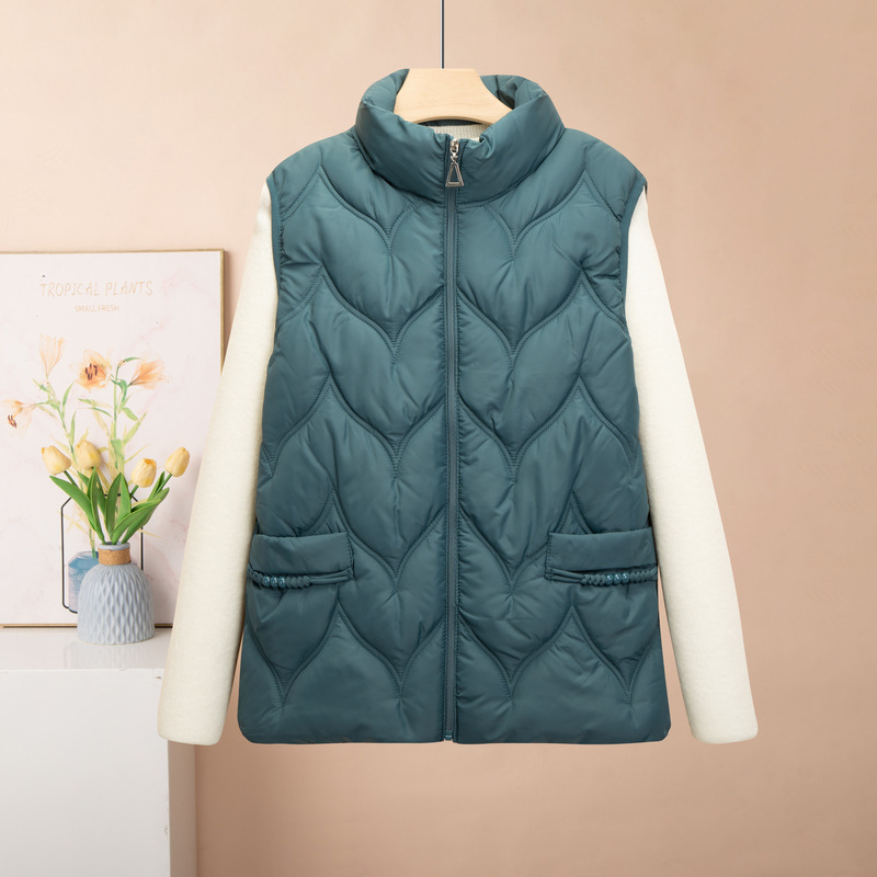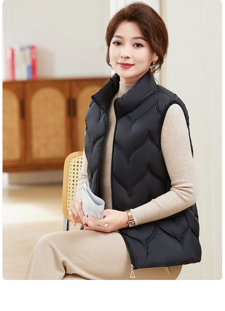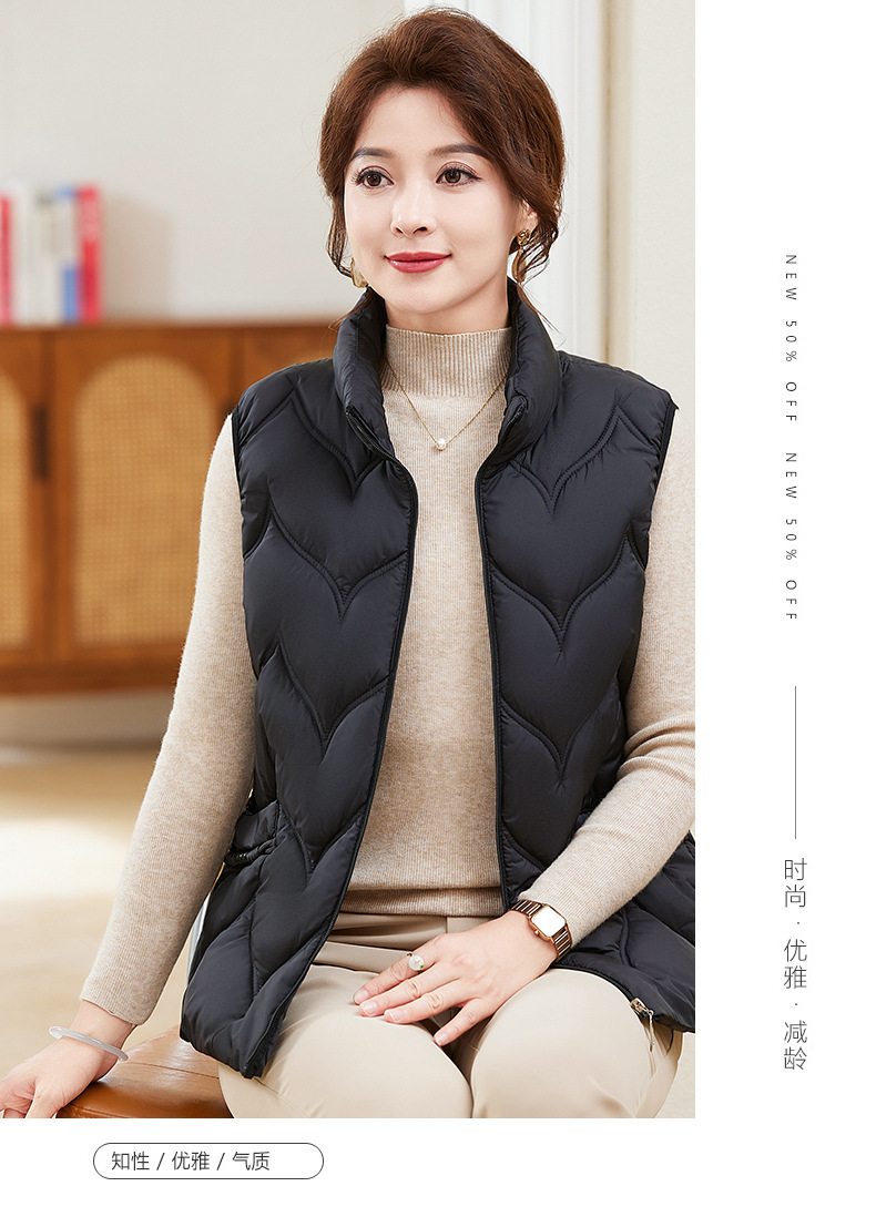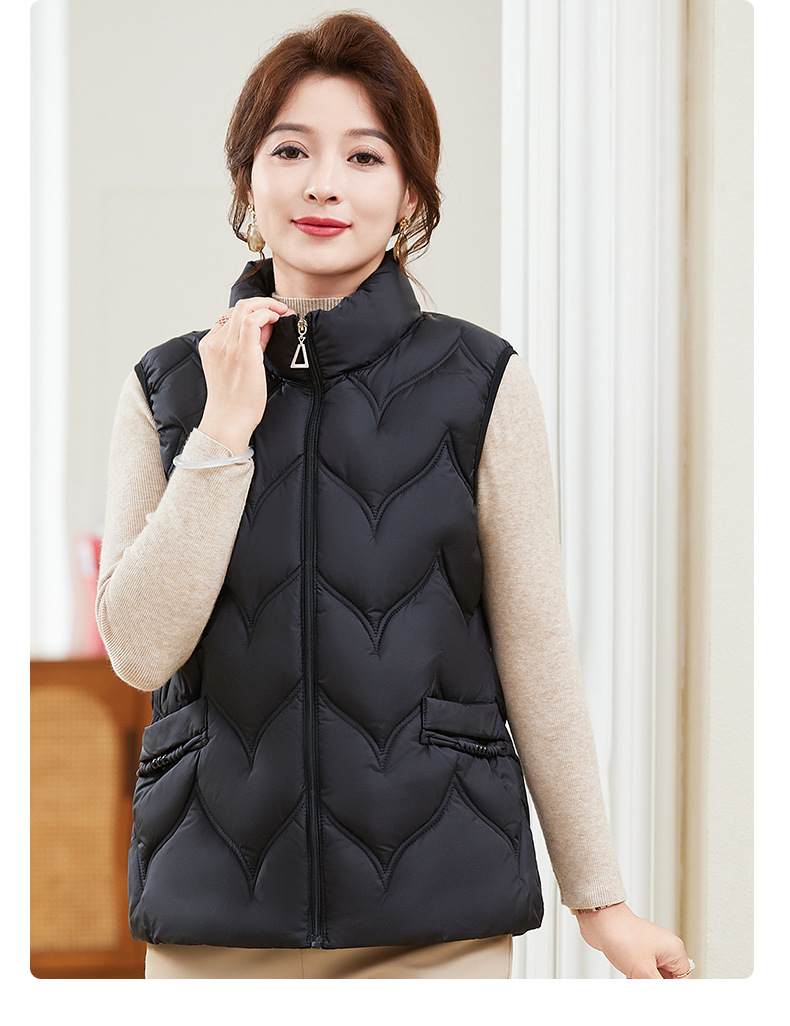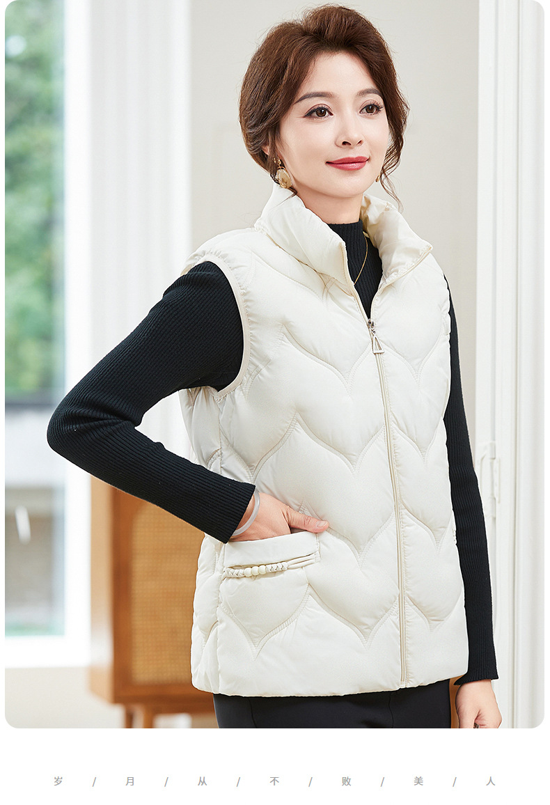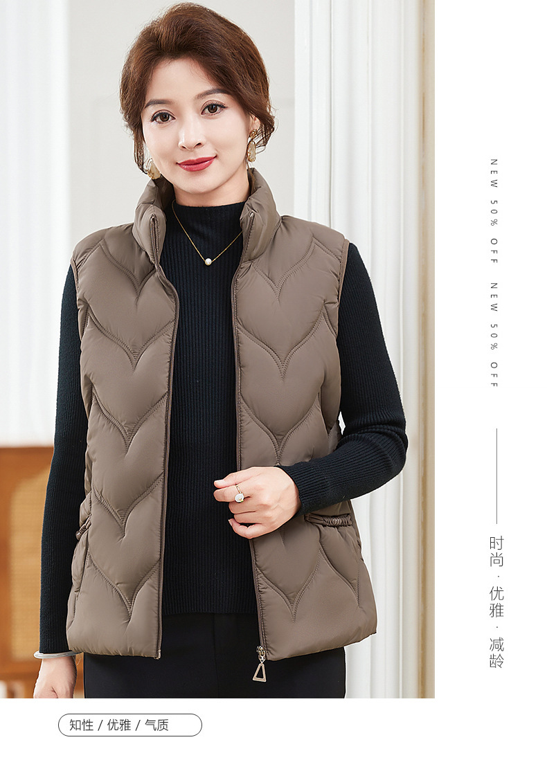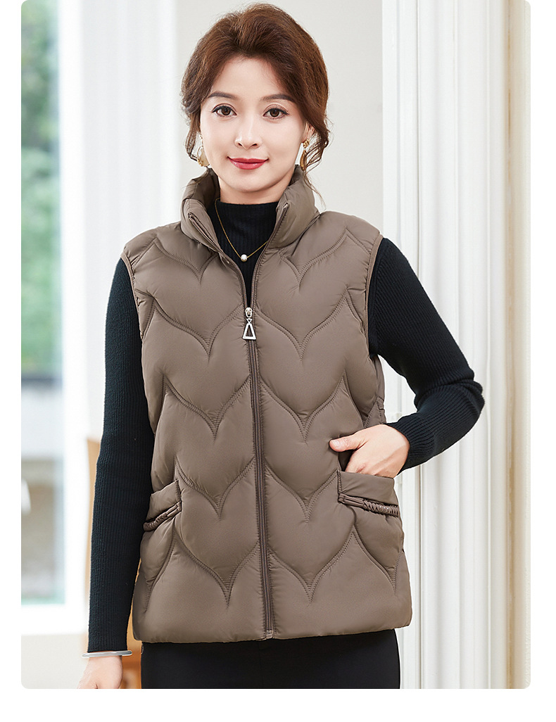 2025 새로운 가을, 겨울 다운 코튼 조끼 엄마 플러스 사이즈 스탠드 업 칼라 코튼 조끼 중년 및 노인 여성 따뜻한 탑 조끼