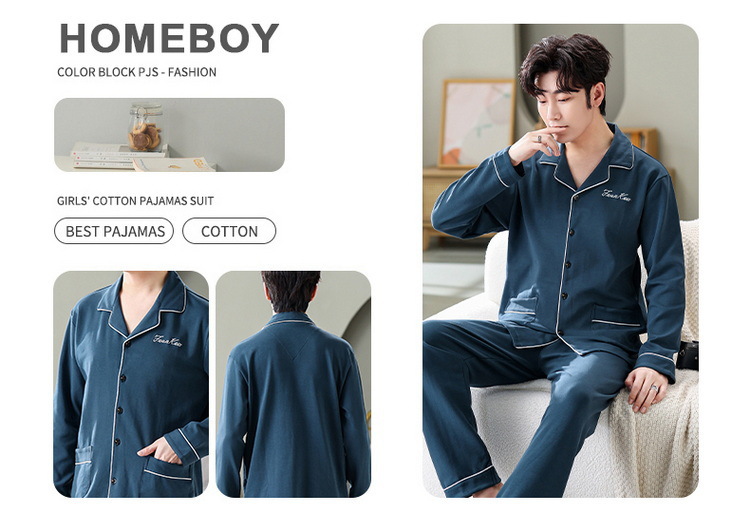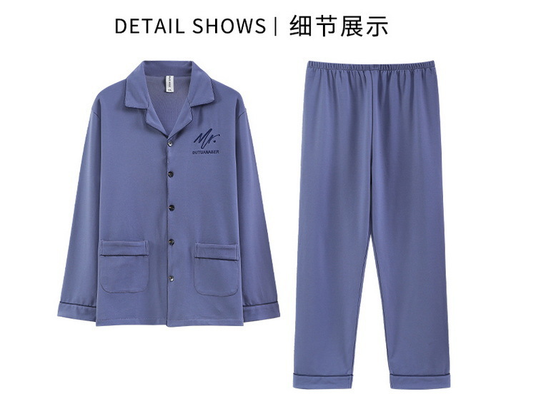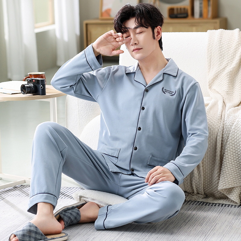 남성용 잠옷 봄과 가을 면화 긴팔 카디건 옷깃 심플 아웃웨어 코튼 홈 의류 플러스 사이즈 세트스토어 가기