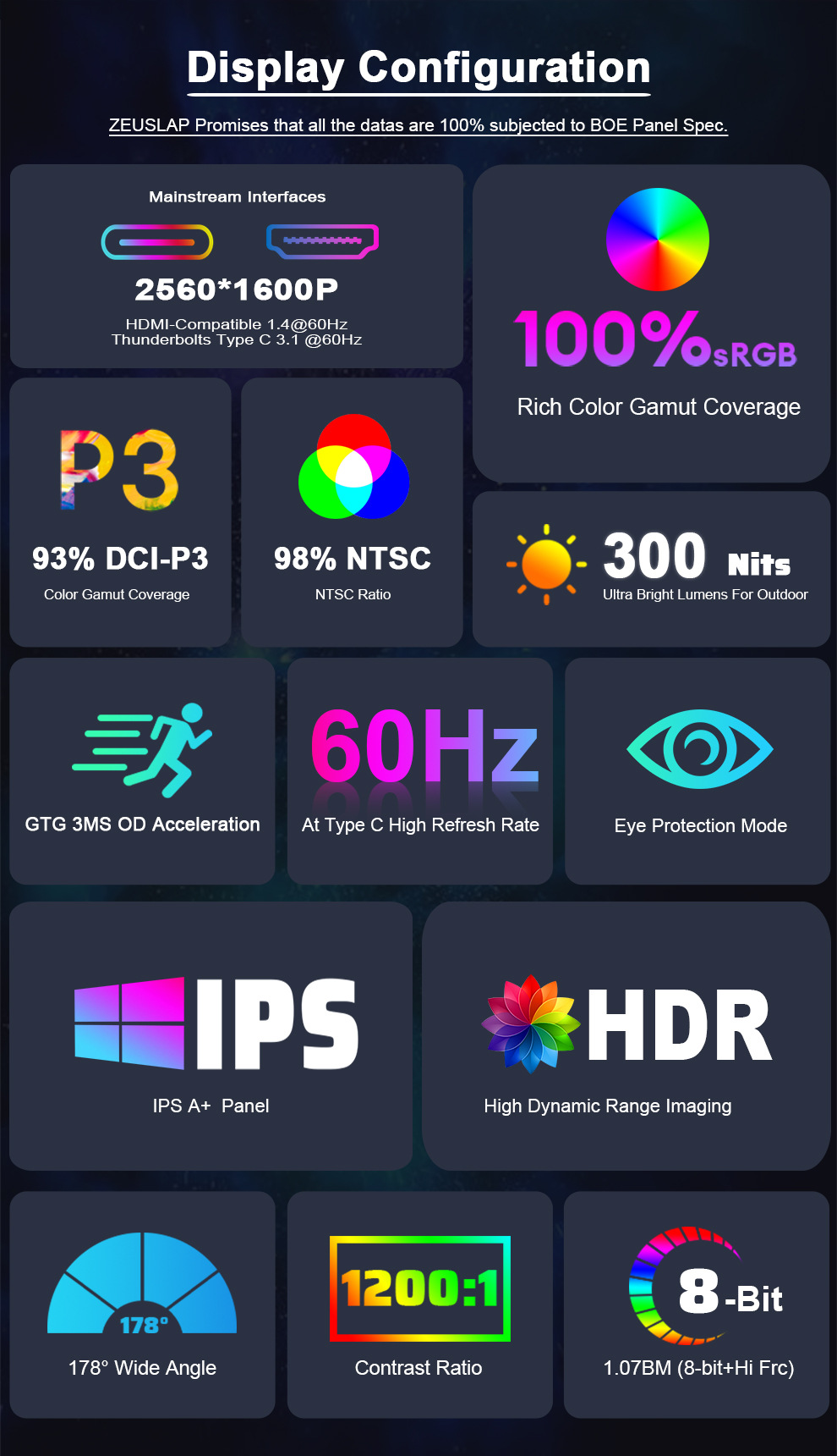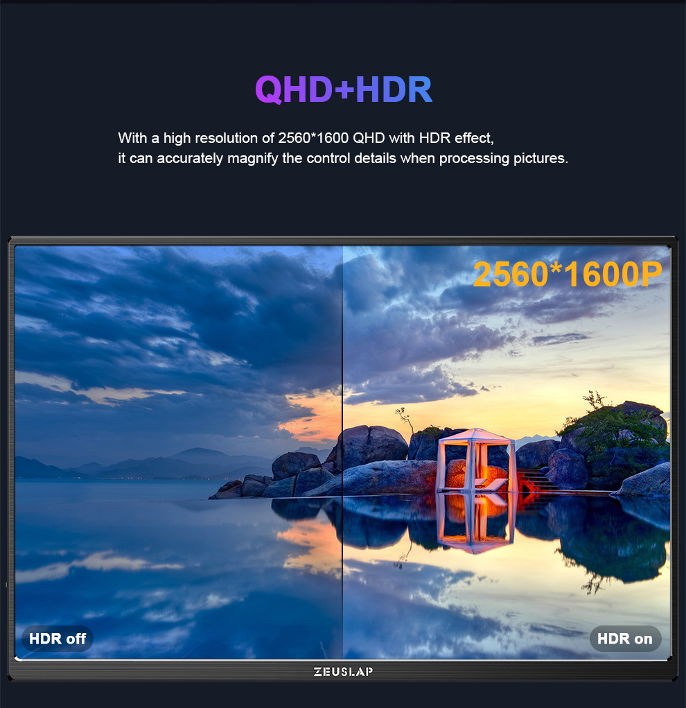 ZEUSLAP Zeus P25K 16 인치 휴대용 디스플레이 2.5k 60hz100 컬러 영역 휴대 전화 컴퓨터 디스플레이스토어 가기