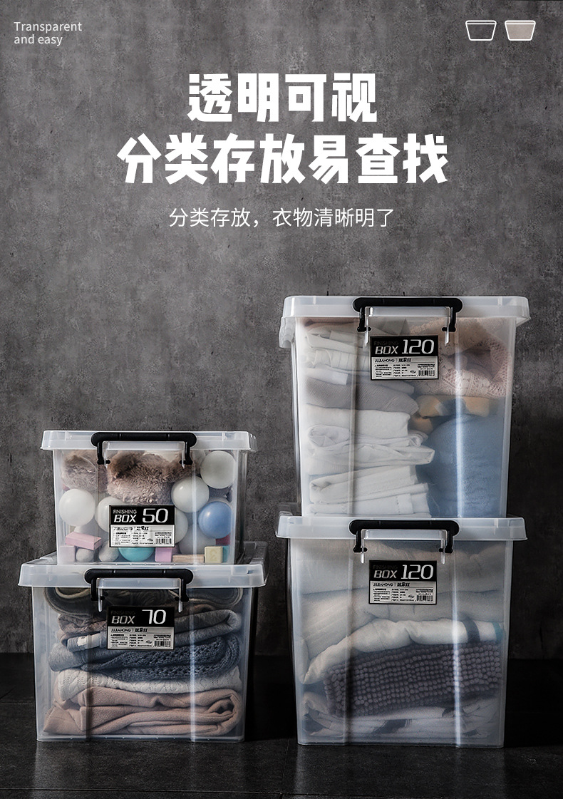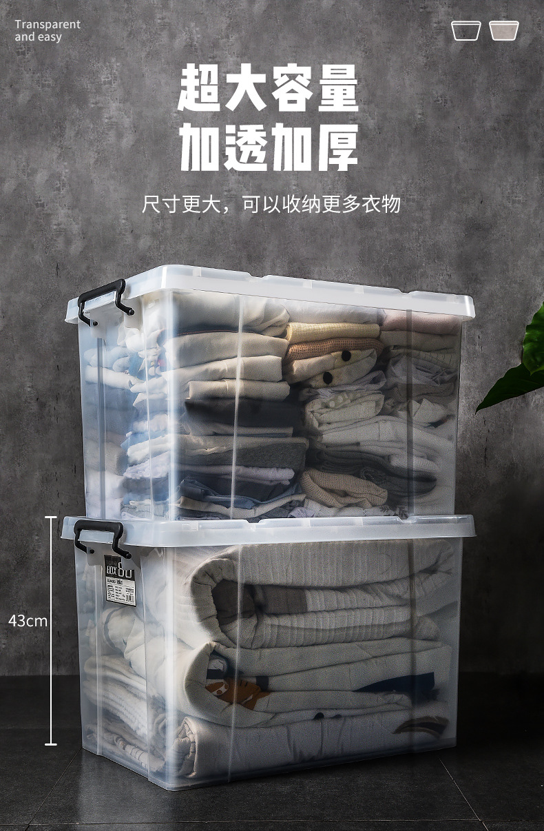 收纳箱加厚特大号透明塑料箱家用储物盒带盖宿舍衣服大容量스토어 가기