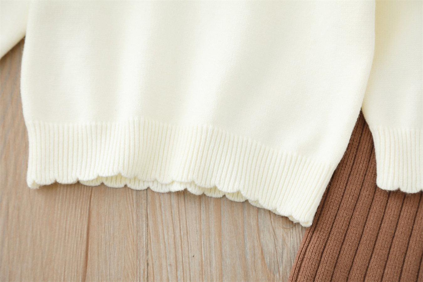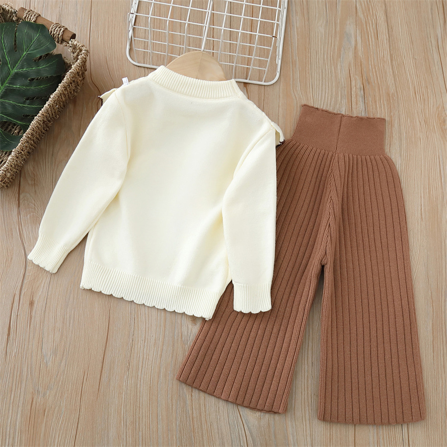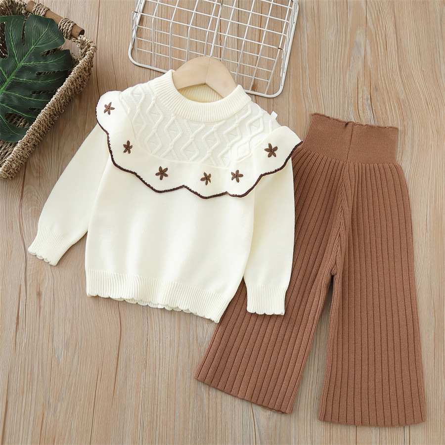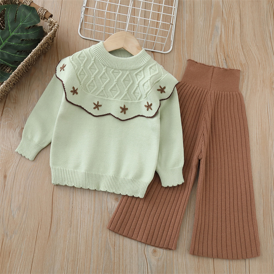 여아용 니트 투피스 세트 2024 가을 겨울 신상 수제 꽃무늬 여아용 풀오버 스웨터 바지 세트