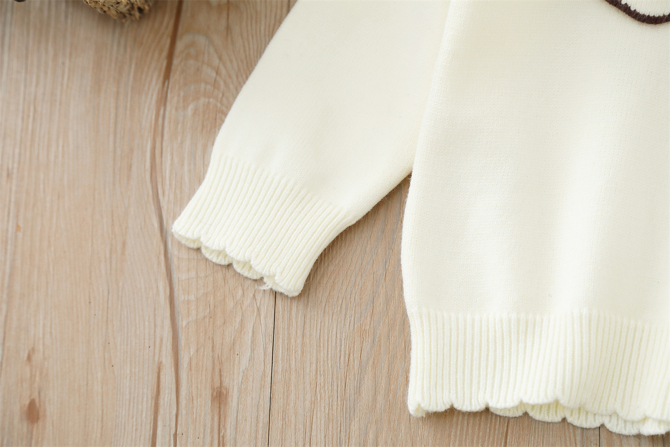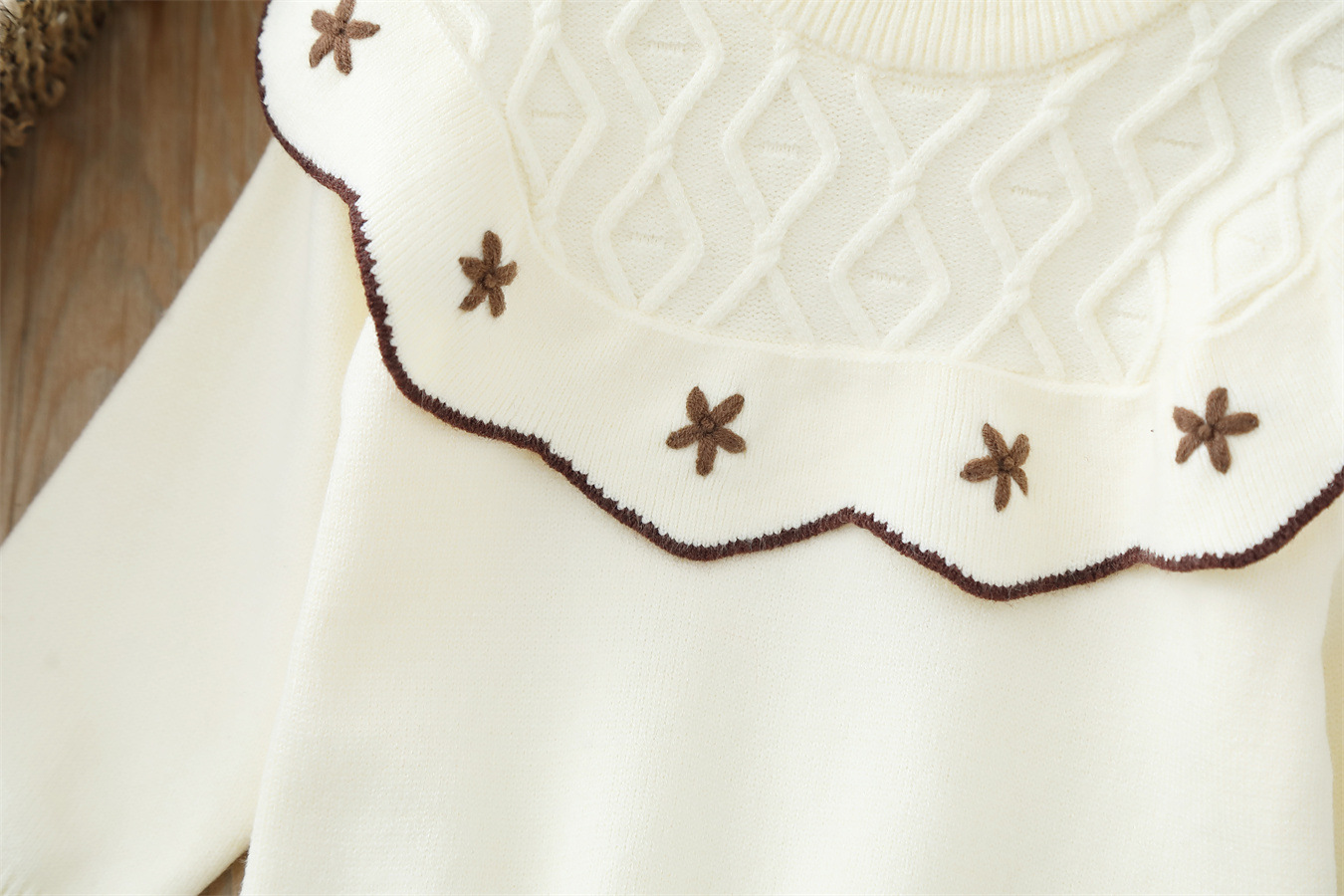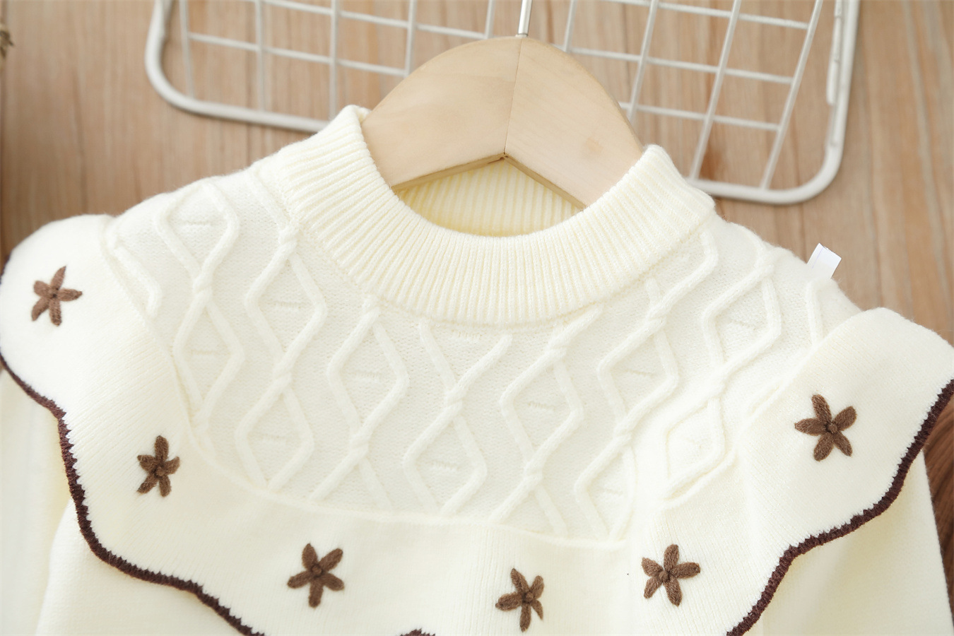 여아용 니트 투피스 세트 2024 가을 겨울 신상 수제 꽃무늬 여아용 풀오버 스웨터 바지 세트스토어 가기