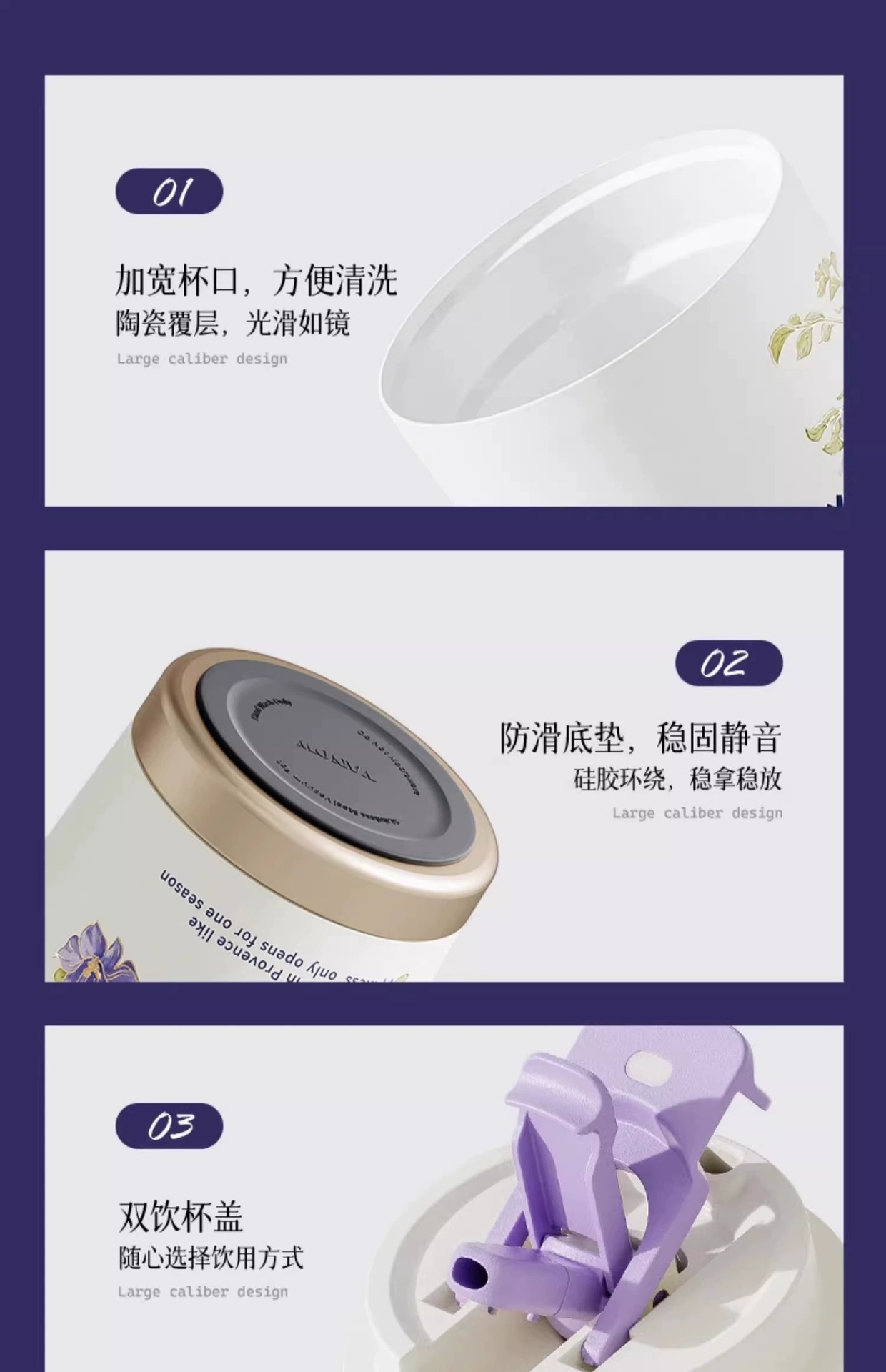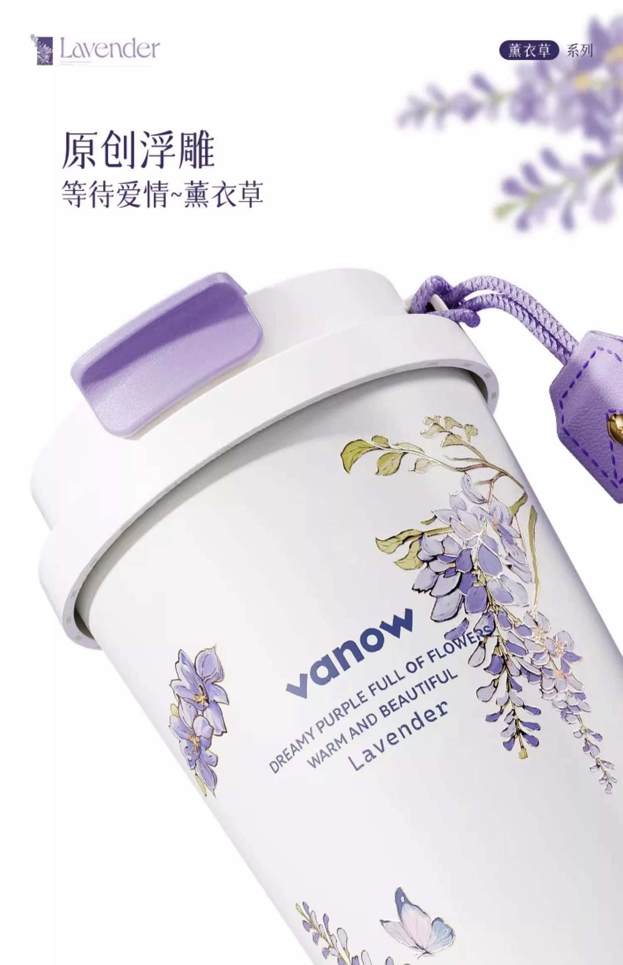 Vanow 라벤더 보온병 컵 세라믹 라이너 커피 컵 어린이 2024 새로운 높은 색상 가치 생일 선물스토어 가기