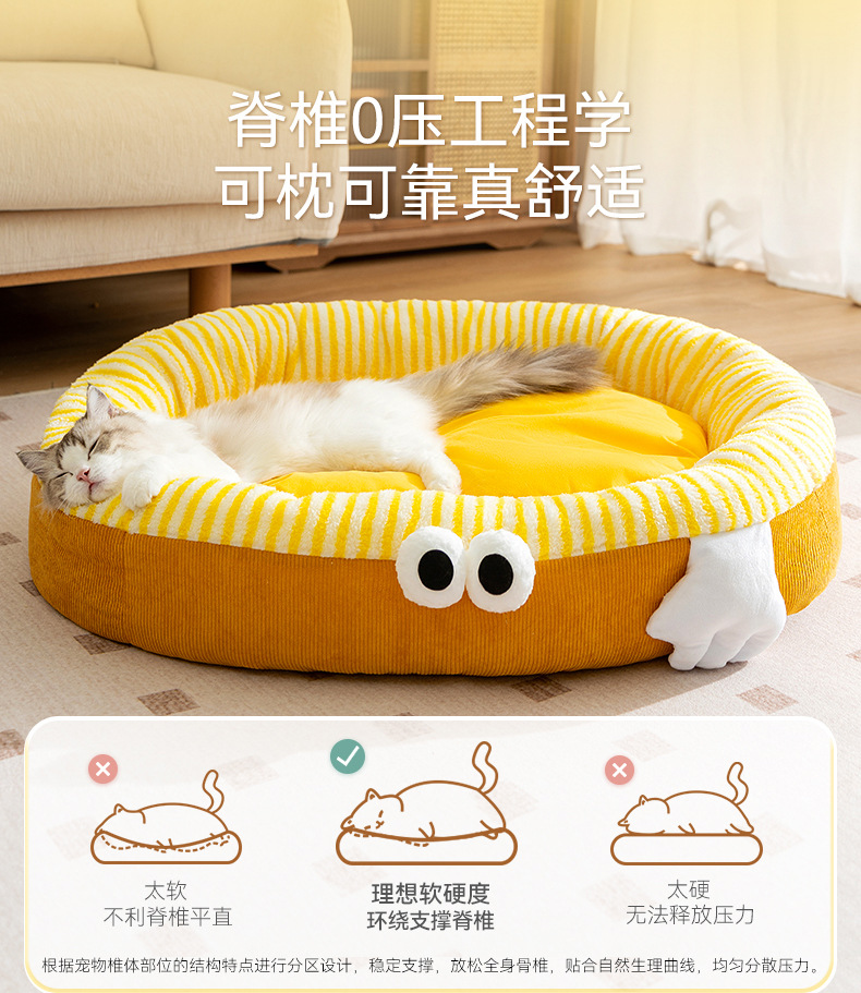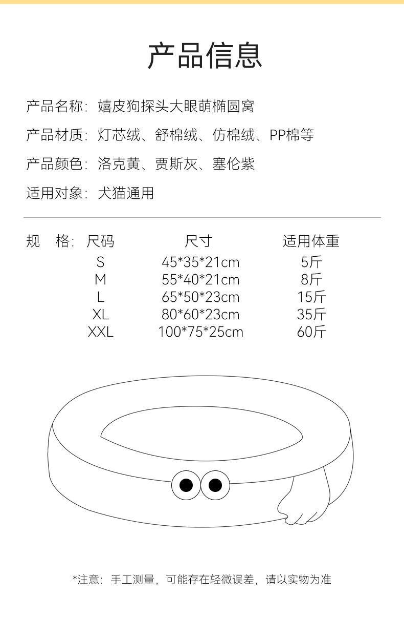 24 년 새로운 간단한 단색 프로브 큰 눈 귀여운 타원형 둥지 고양이 사육장 작은 개 애완 동물 가을과 겨울 둥지 용품스토어 가기