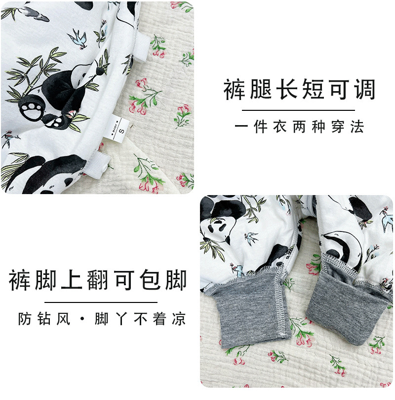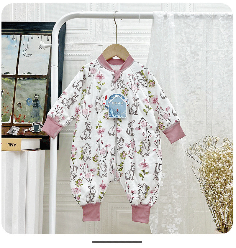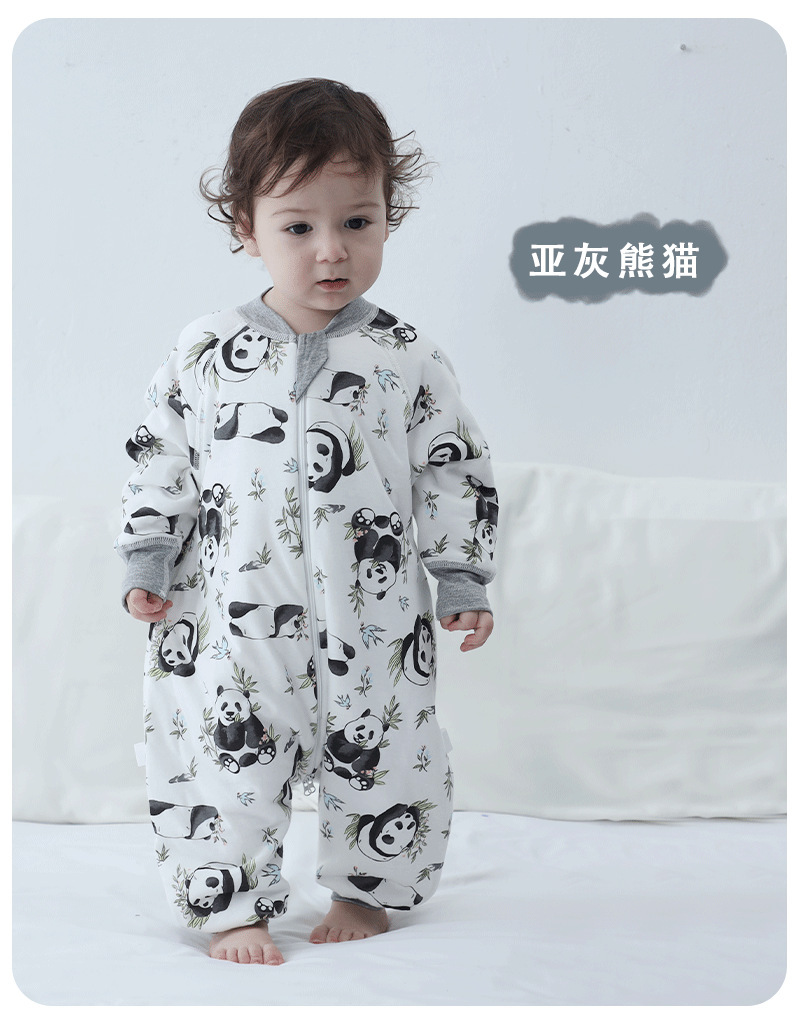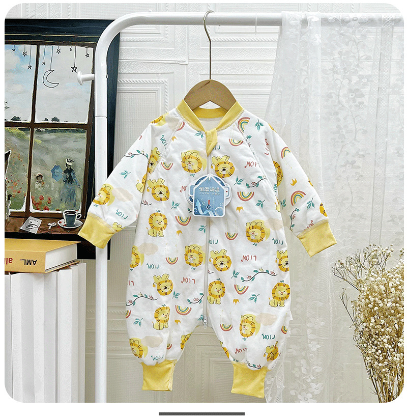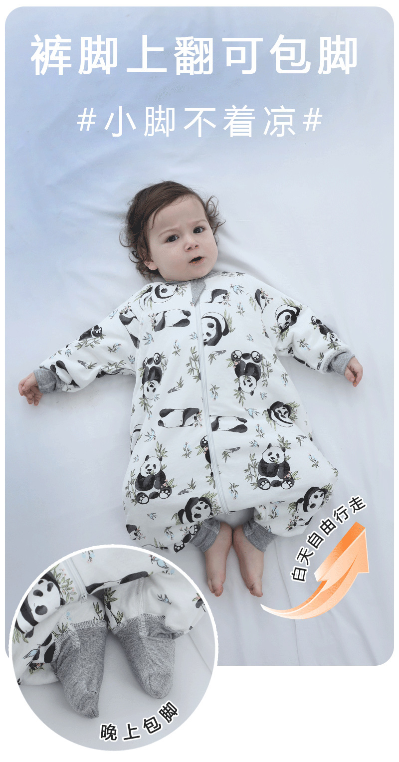 아기의 두꺼운 순면 다리 안티 킥 슬리핑 백 가을과 겨울 아기의 일정한 온도 따뜻한 뼈없는 홈 풋 백 점프 수트