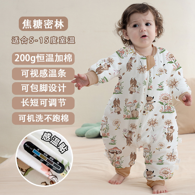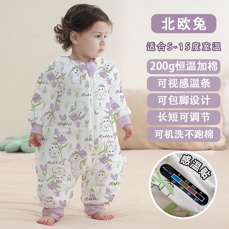 아기의 두꺼운 순면 다리 안티 킥 슬리핑 백 가을과 겨울 아기의 일정한 온도 따뜻한 뼈없는 홈 풋 백 점프 수트스토어 가기