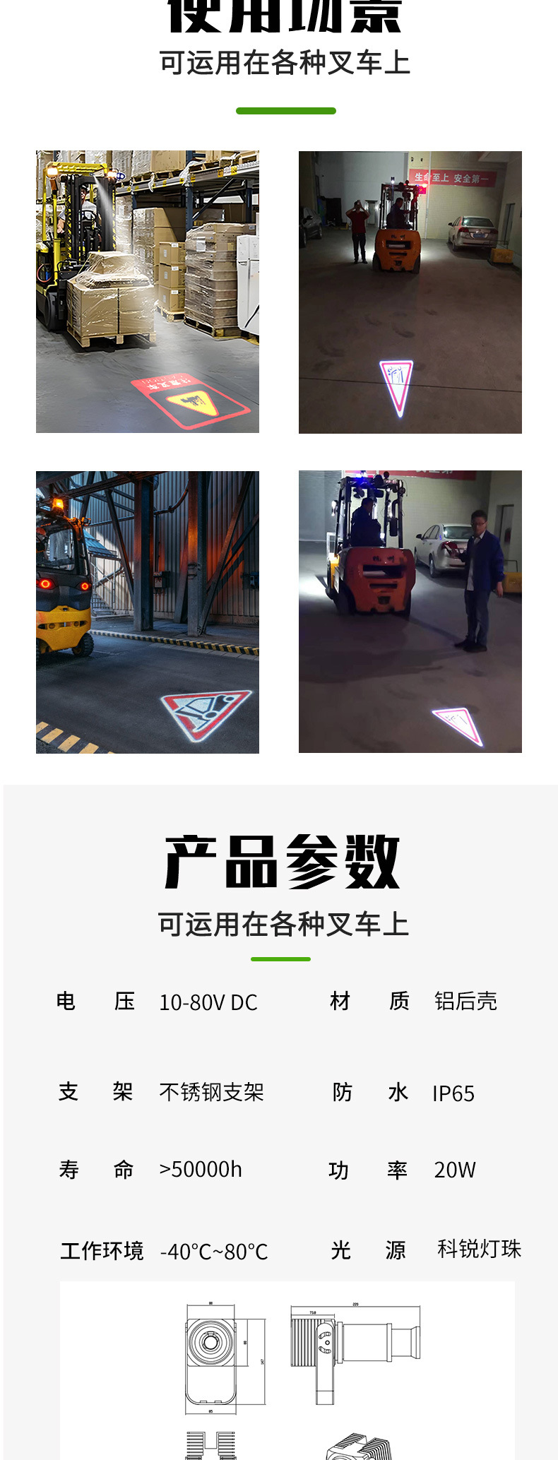10-80V 산업용 지게차 안전 장비 표시 등 작업장 로고 크레인 경고 패턴 로고 프로젝션 램프