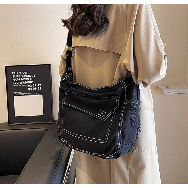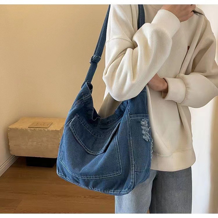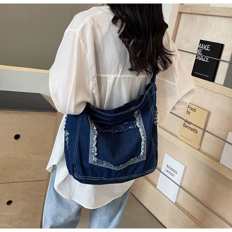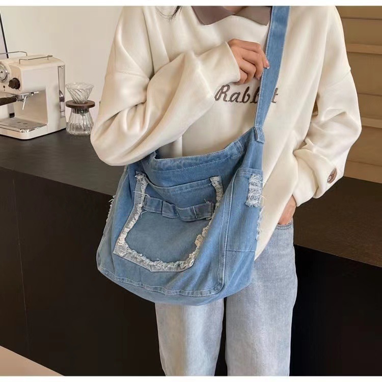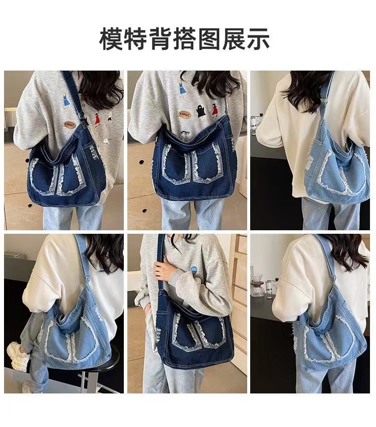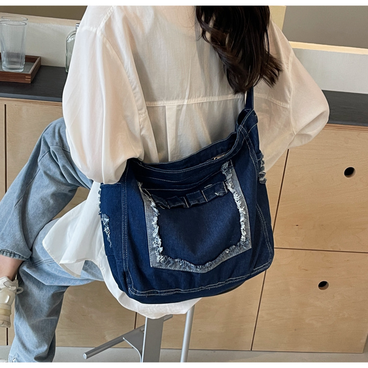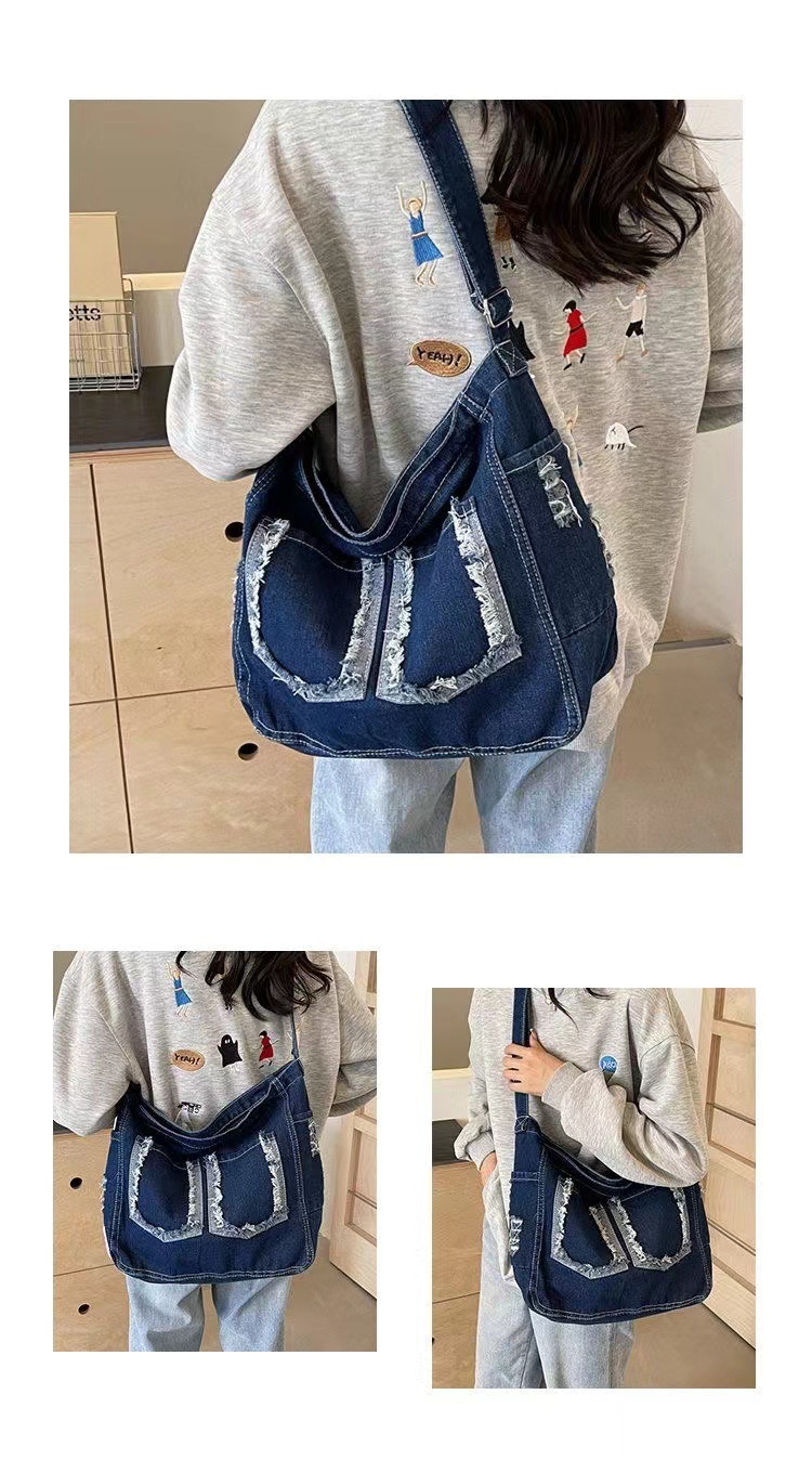 캔버스 데님 세척 된 브러시 술 메신저 백 대용량 크로스 바디 학생 가방 캐주얼 가방 어깨 가방