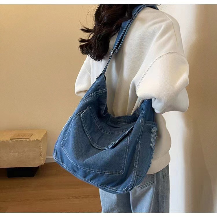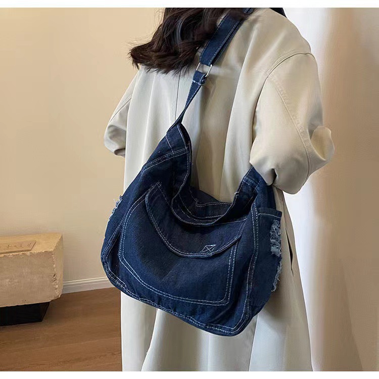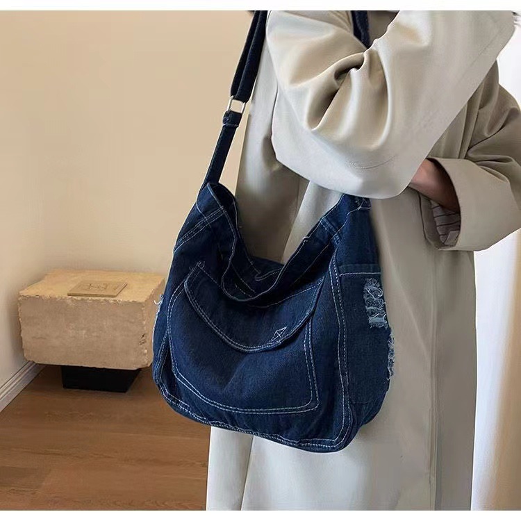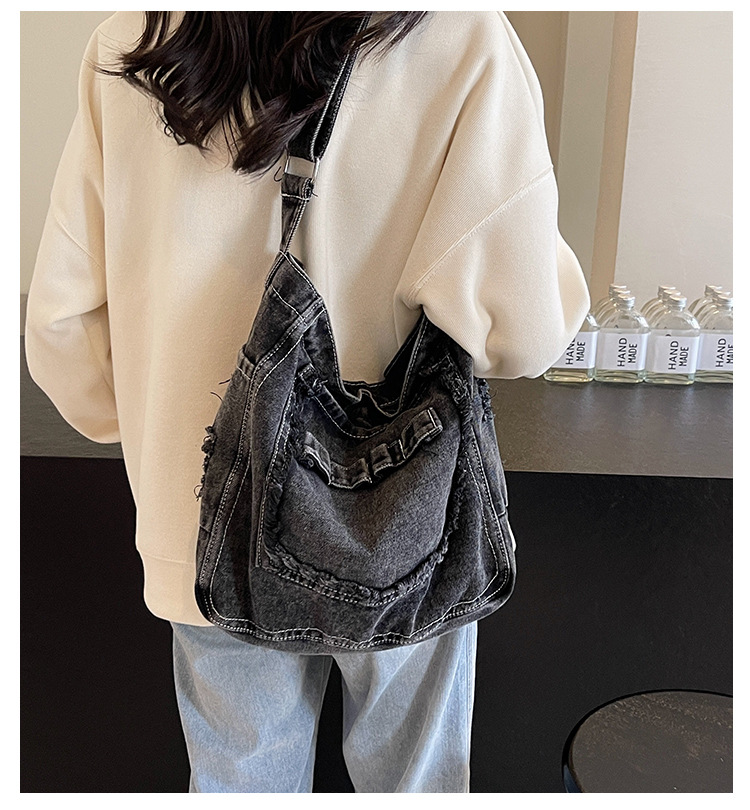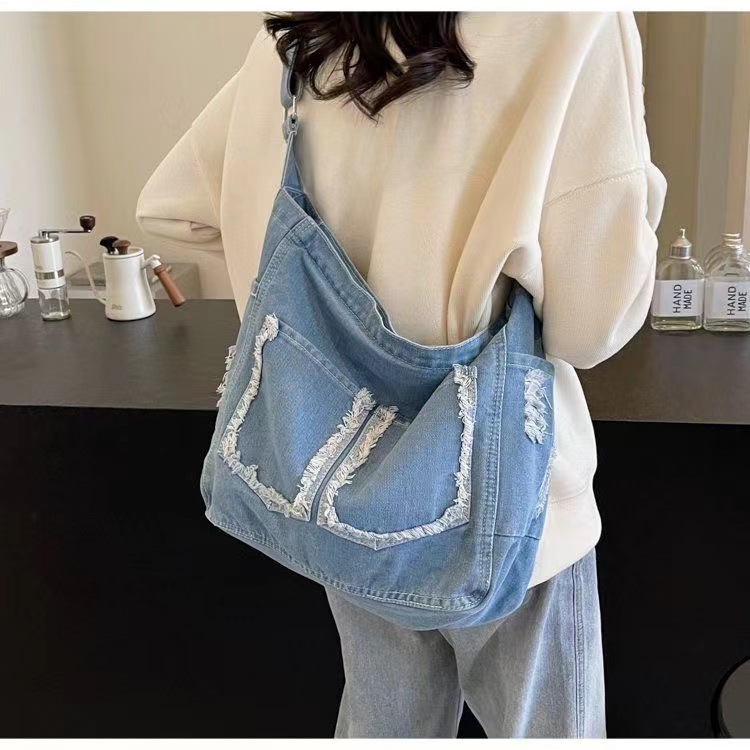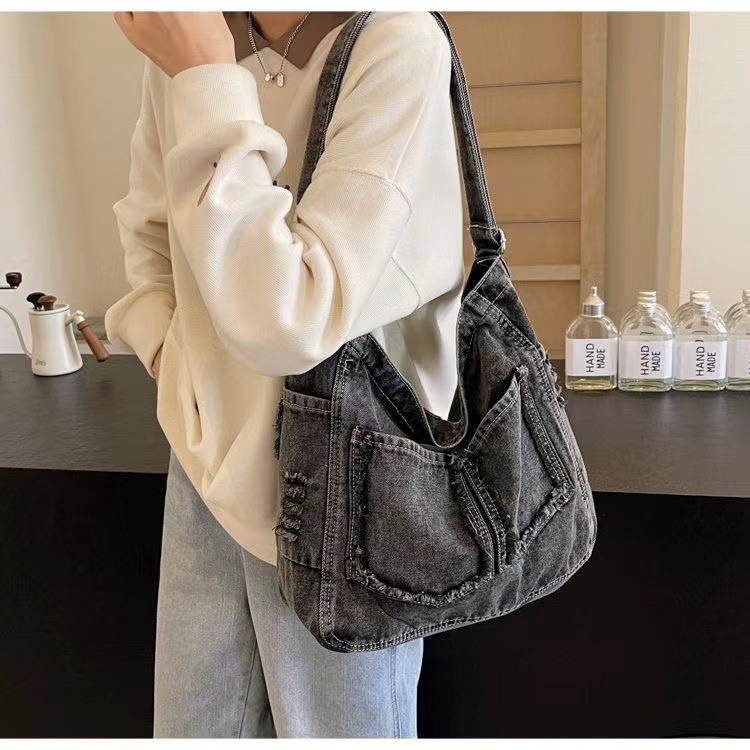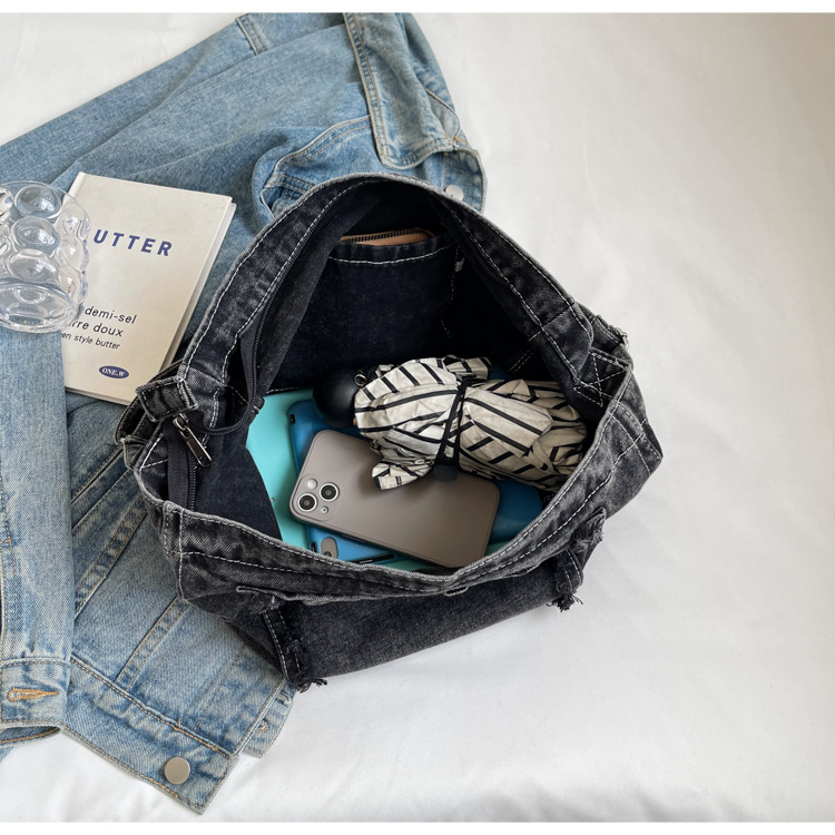 캔버스 데님 세척 된 브러시 술 메신저 백 대용량 크로스 바디 학생 가방 캐주얼 가방 어깨 가방