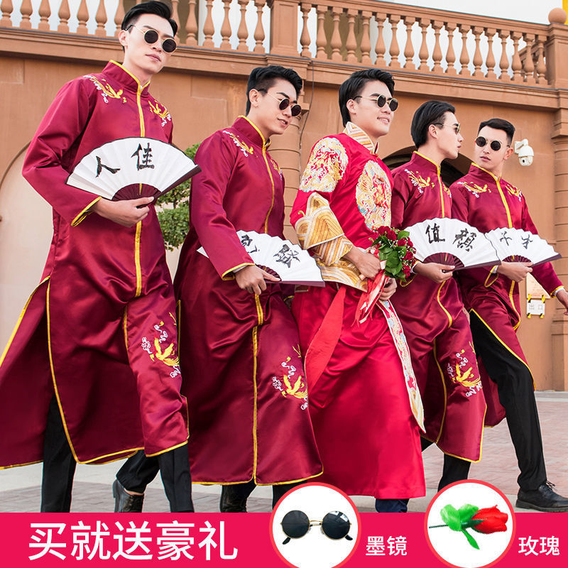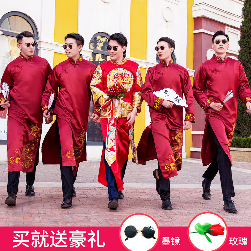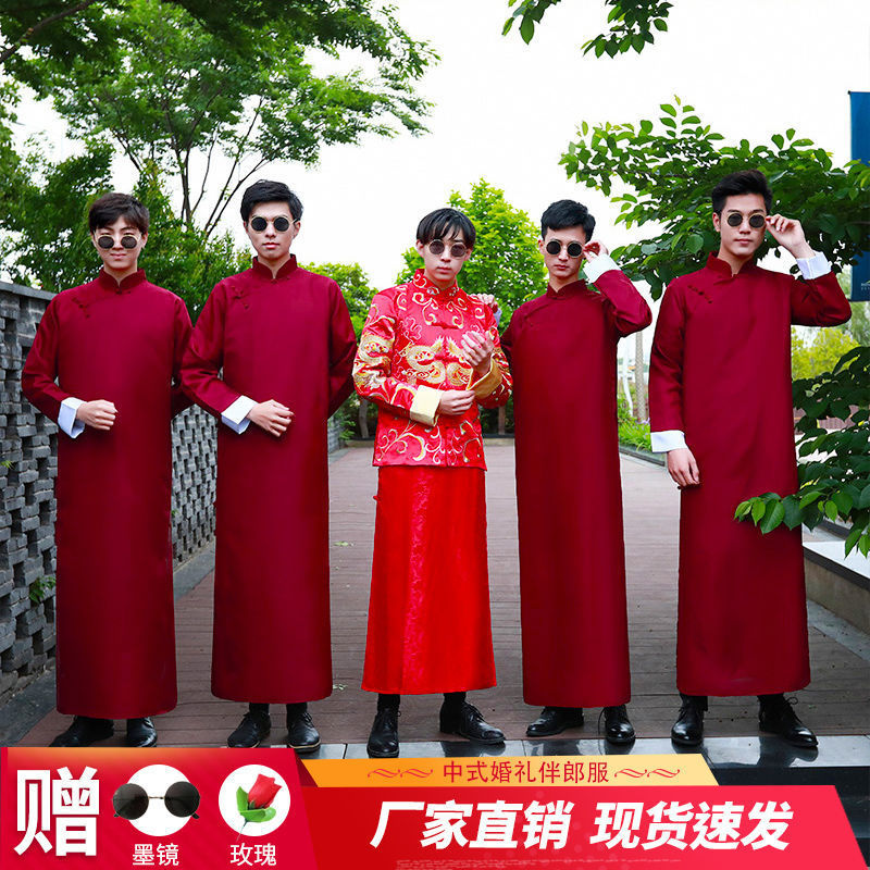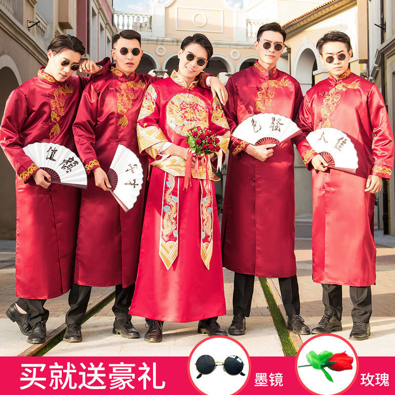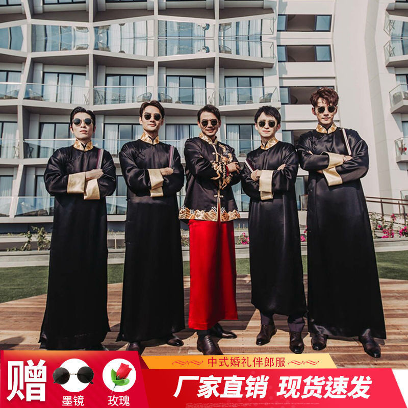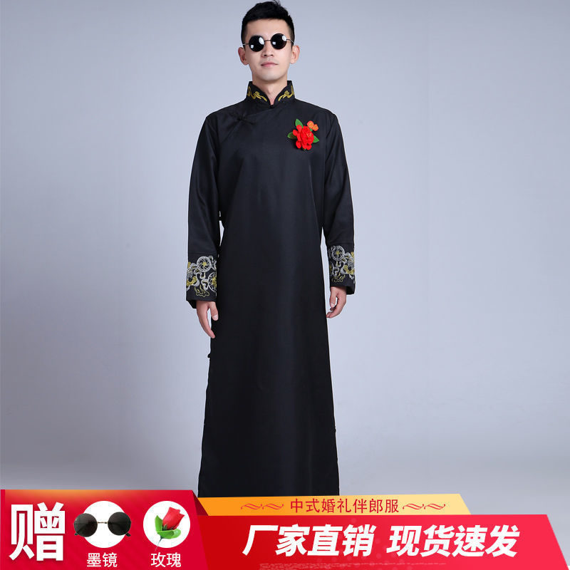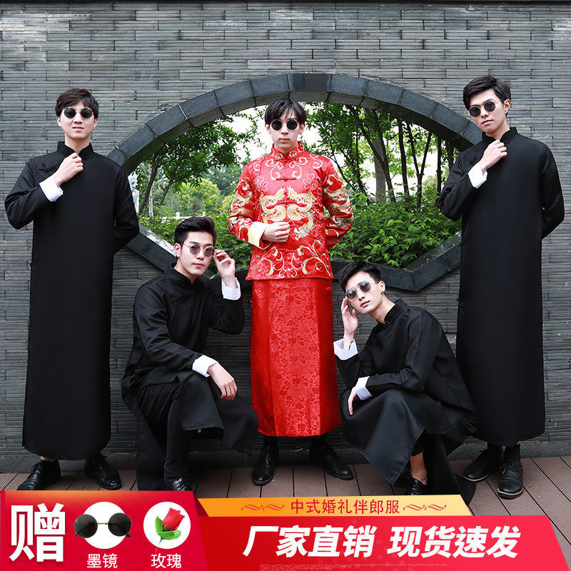 최고의 남자 원피스 중국 결혼식 남자 긴 셔츠 형제 단결 결혼식 원피스 중국 스타일 탕 세트 긴 로브 큰 가운 형제 원피스스토어 가기