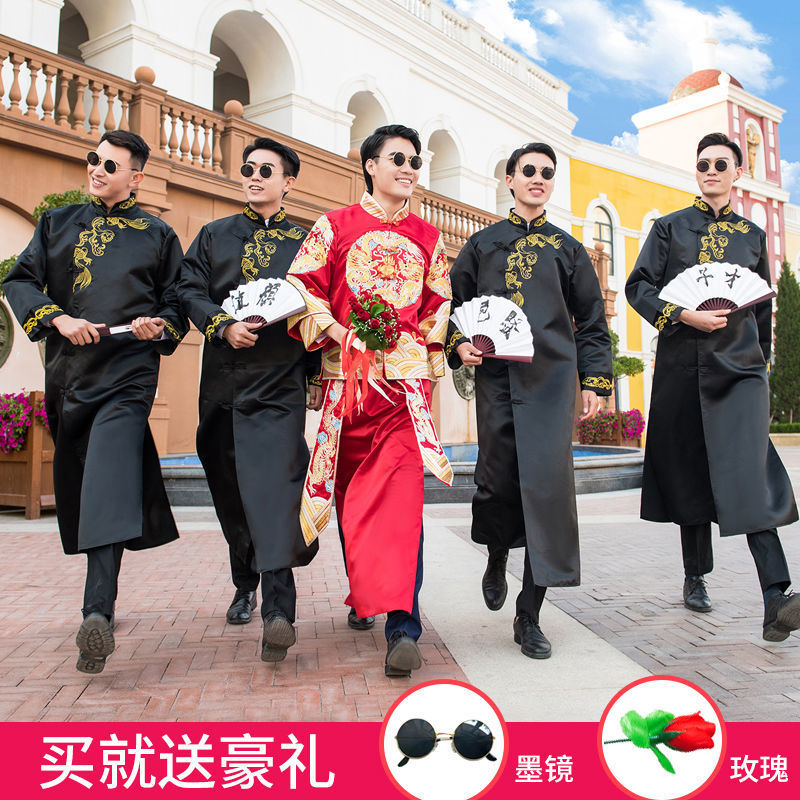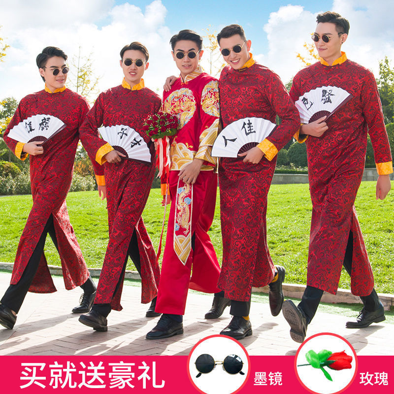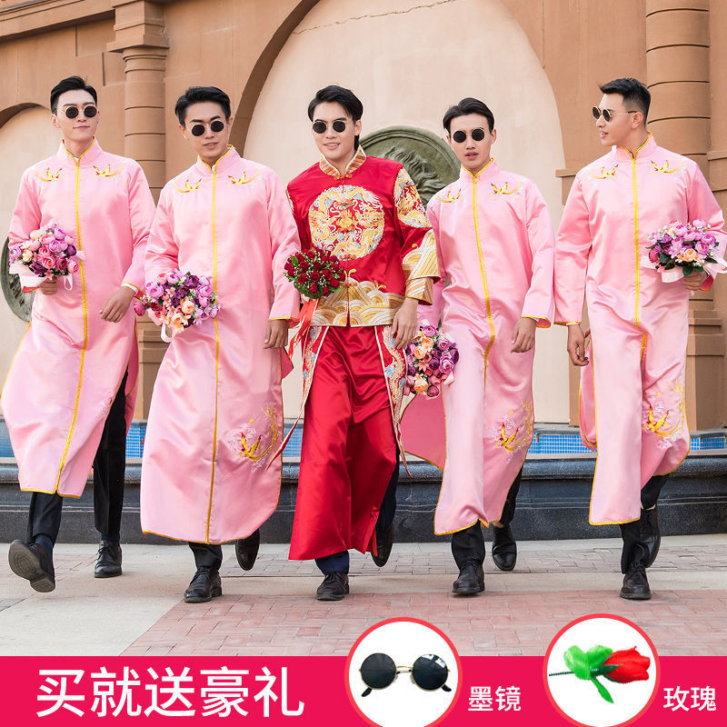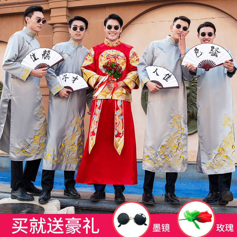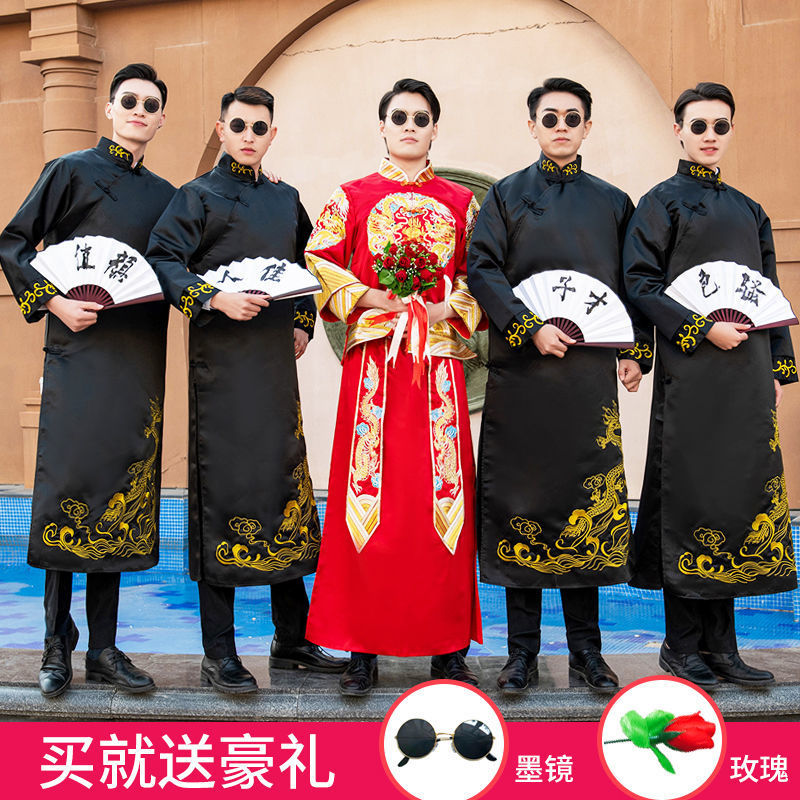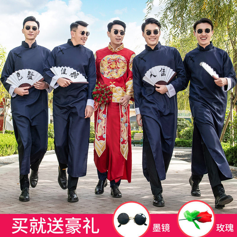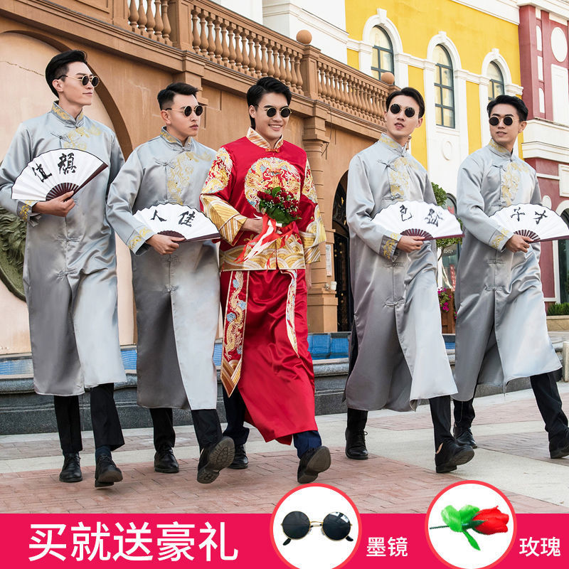 최고의 남자 원피스 중국 결혼식 남자 긴 셔츠 형제 단결 결혼식 원피스 중국 스타일 탕 세트 긴 로브 큰 가운 형제 원피스스토어 가기