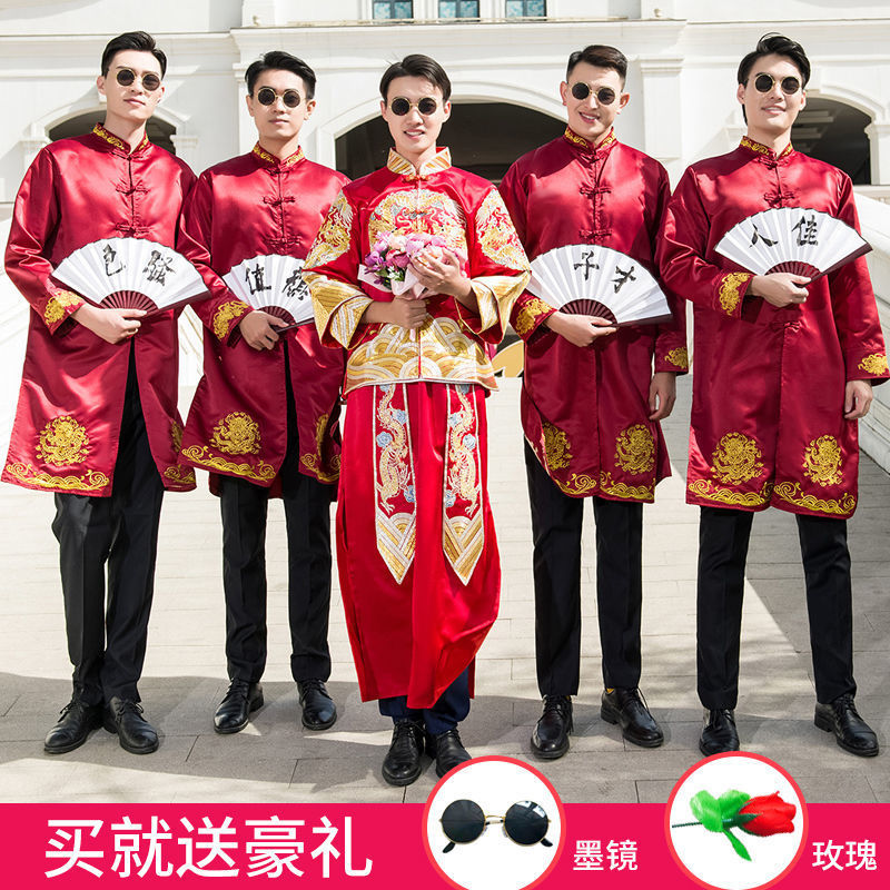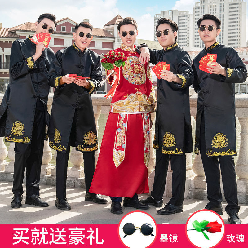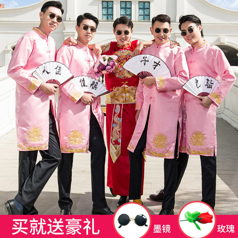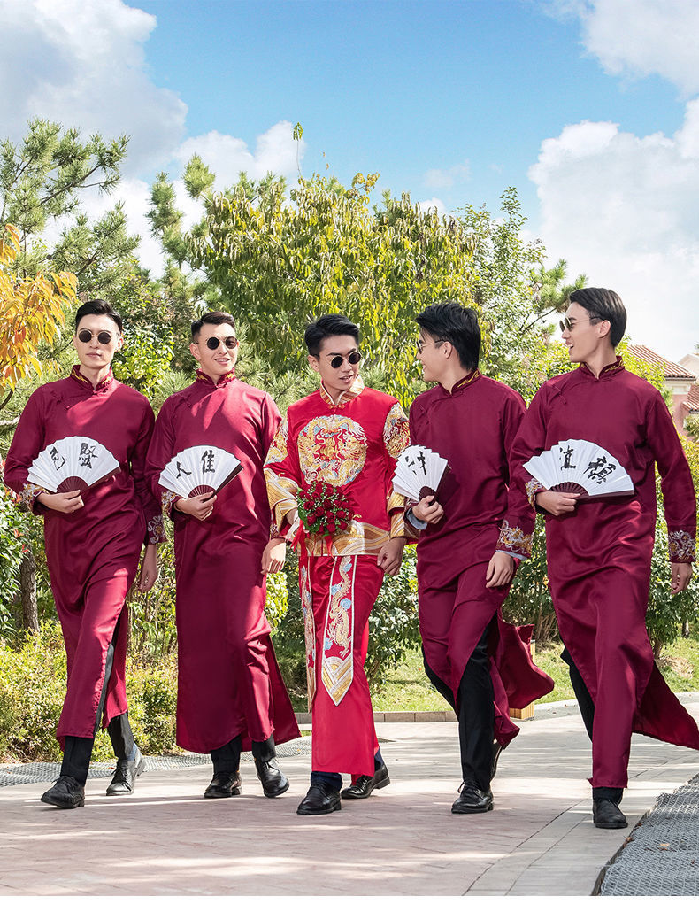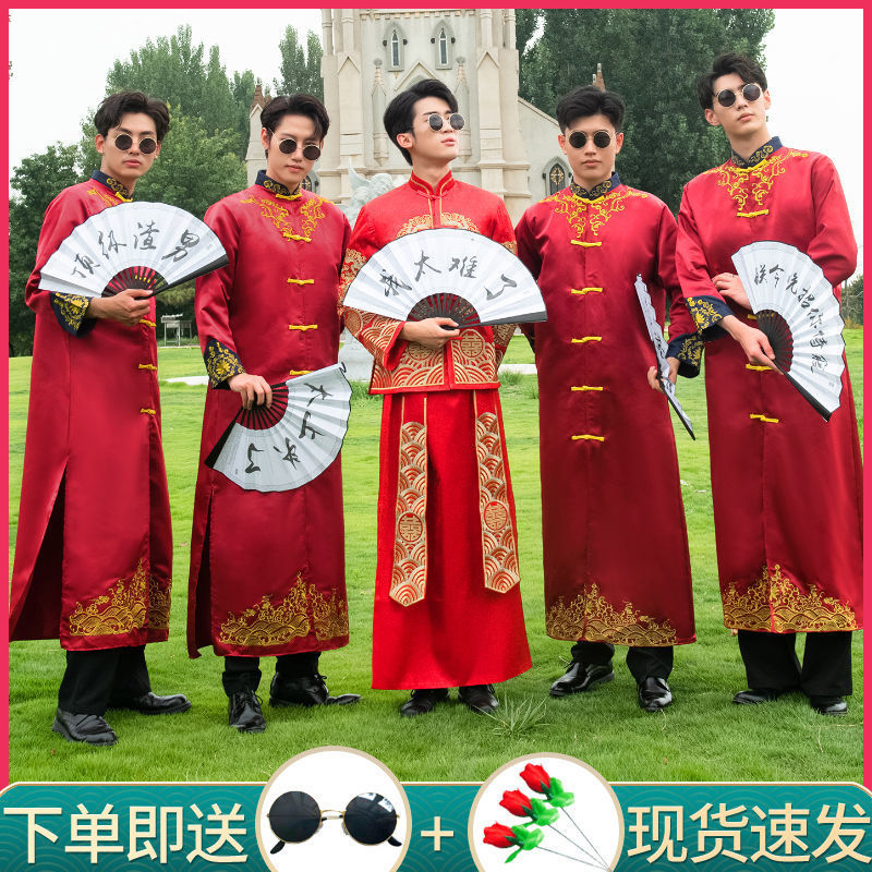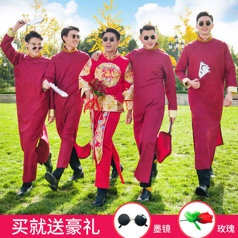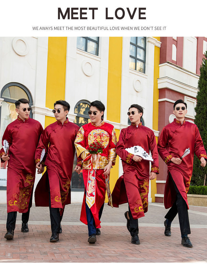최고의 남자 원피스 중국 결혼식 남자 긴 셔츠 형제 단결 결혼식 원피스 중국 스타일 탕 세트 긴 로브 큰 가운 형제 원피스스토어 가기