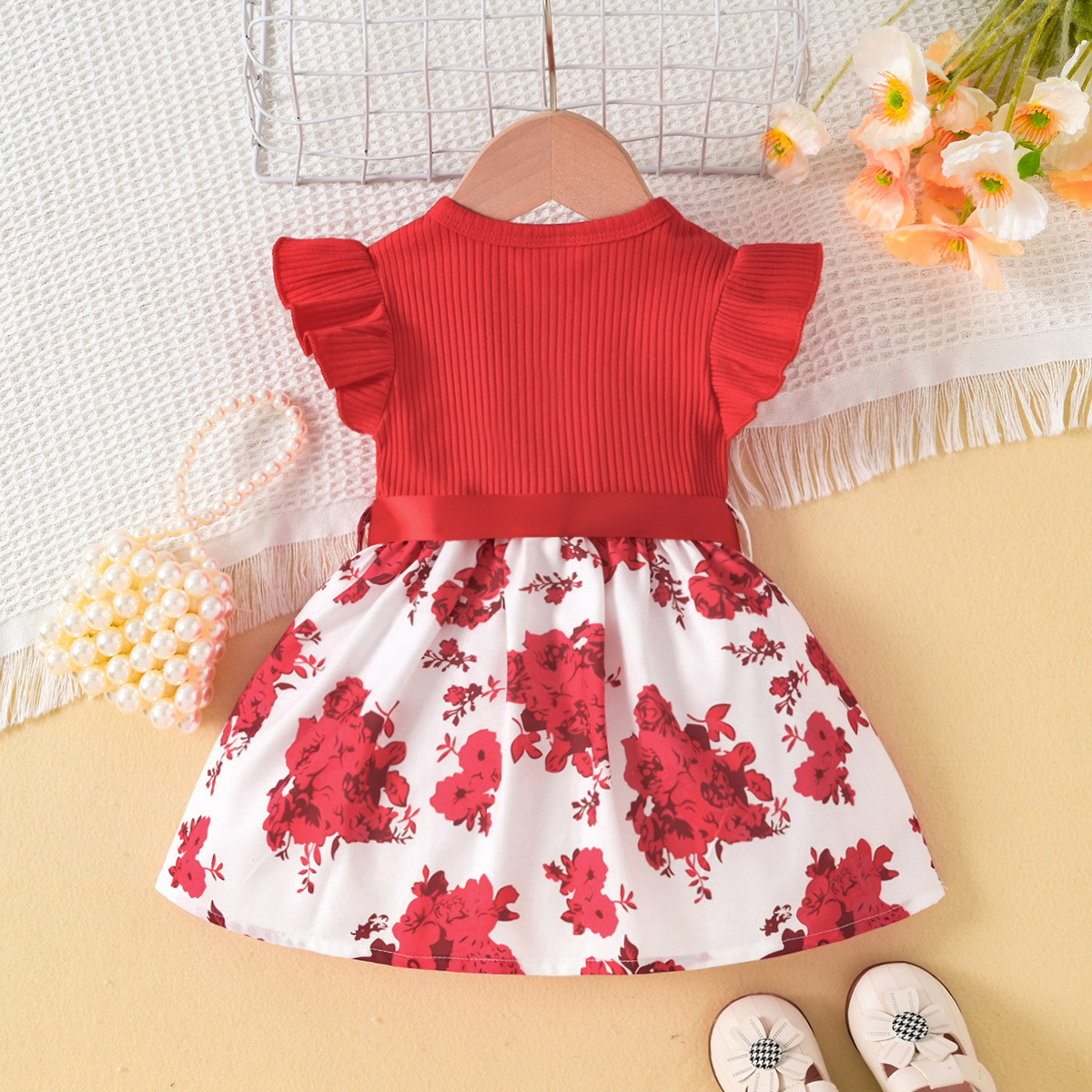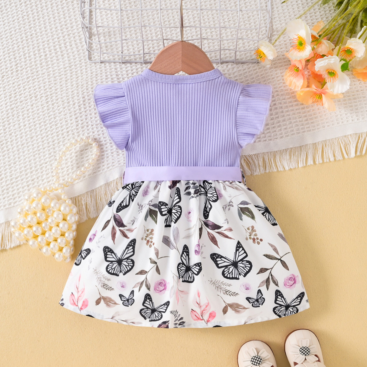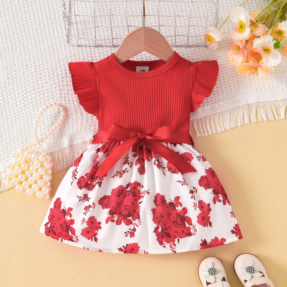 대외 무역 여름 유아 공주 드레스, 여자 아기 라운드 넥 플라잉 슬리브 탑과 프린트 드레스