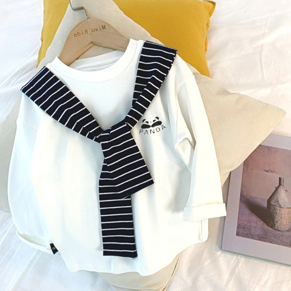 소년 소녀를위한 2024 새로운 봄과 가을 가짜 2 피스 스트랩 탑 소년 소녀를위한 긴 소매베이스 셔츠 아기 아동복 티셔츠스토어 가기