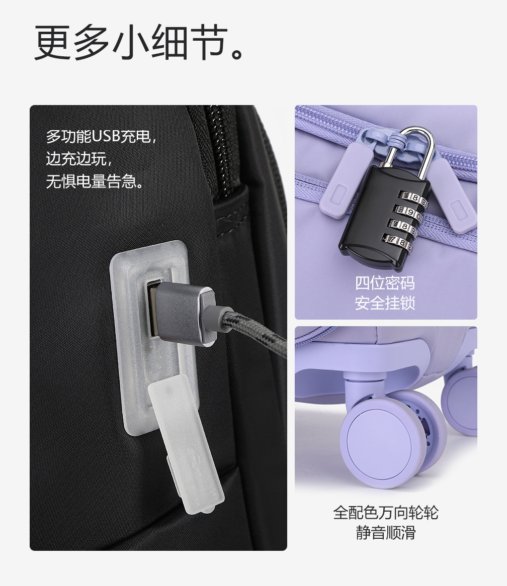1.本店所售的拉杆箱,零配件终身保修,(轮子,拉杆,锁,把手等)。