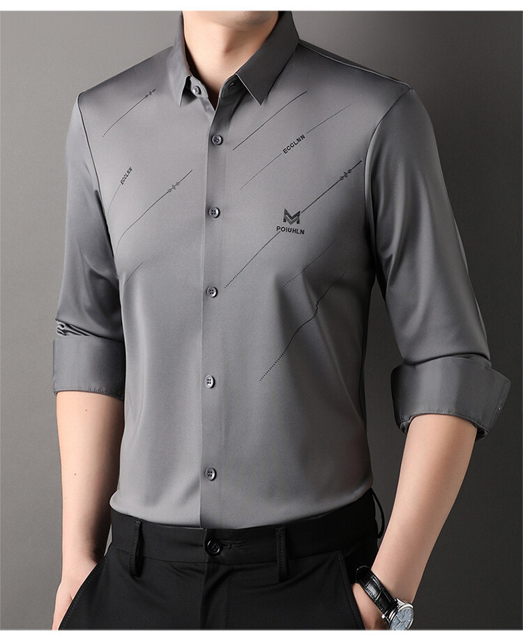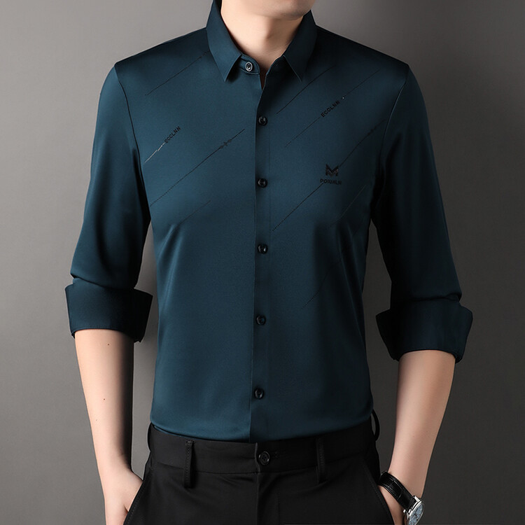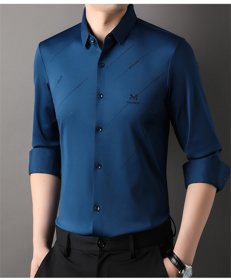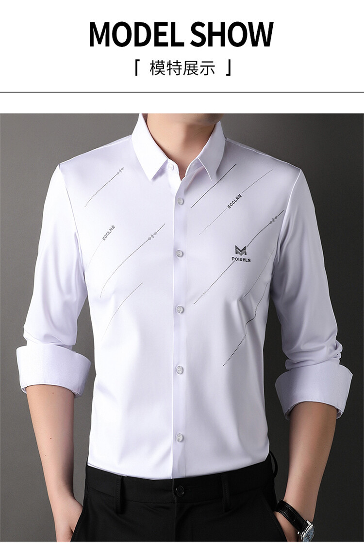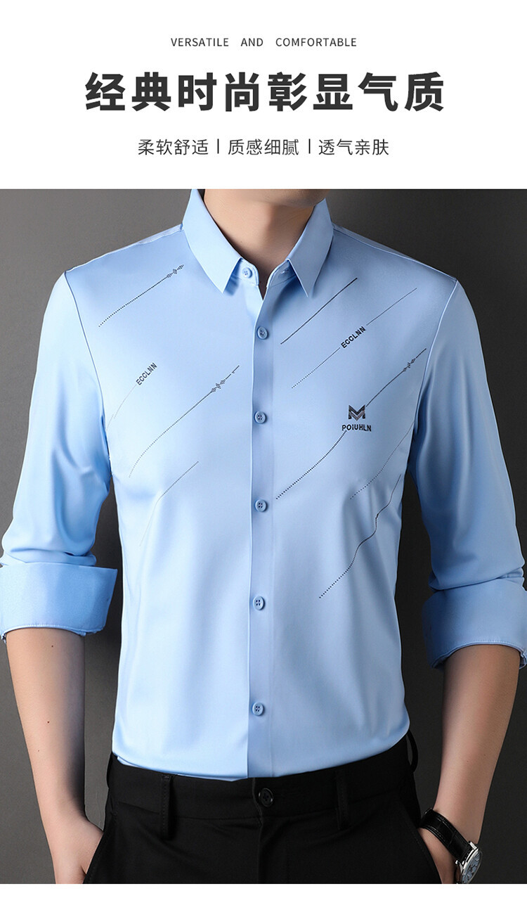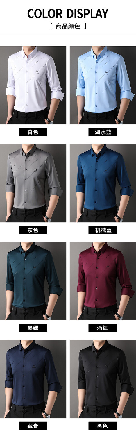 시니어 봄과 가을 뉴 남성용 긴팔 셔츠 젊고 중년의 트레이드리스 하이 스트레치 다림질없는 비즈니스 셔츠 남성스토어 가기