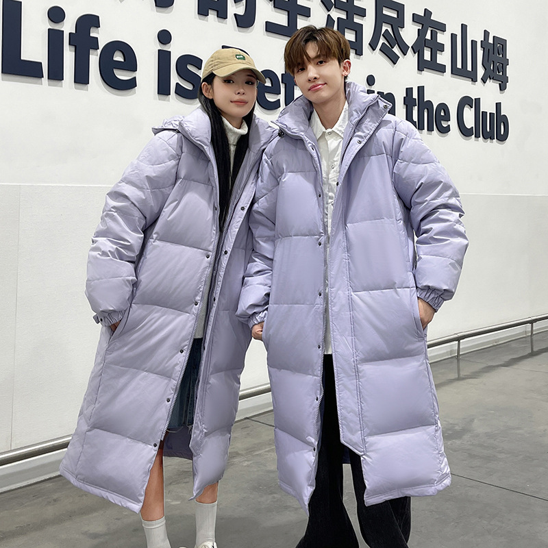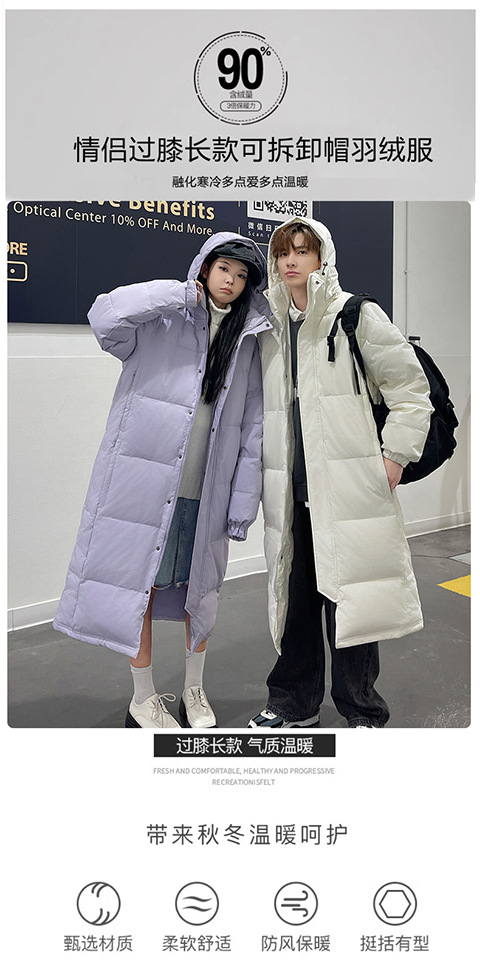 거위털 다운 재킷 남녀공용 트렌디 브랜드 한국 스타일 따뜻하고 패셔너블한 인기 무릎길이 커플용 중간 길이 후드 재킷스토어 가기