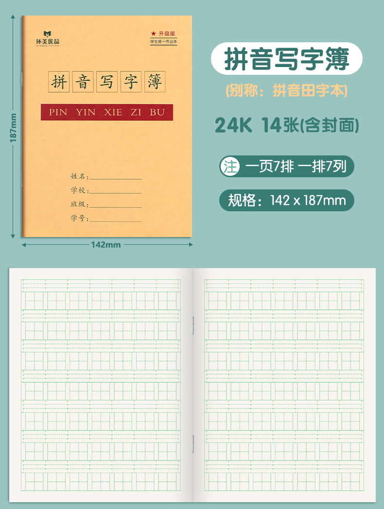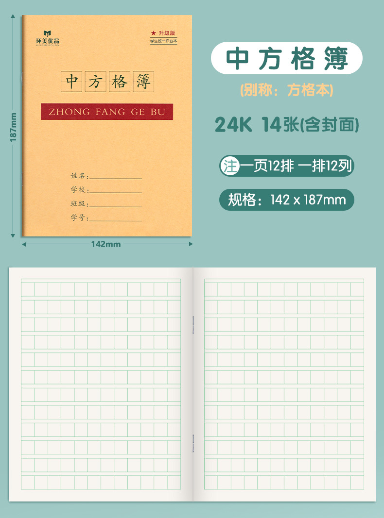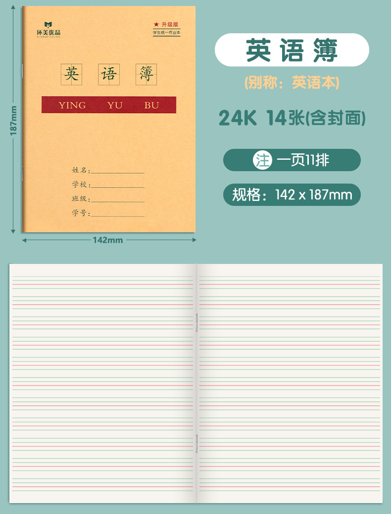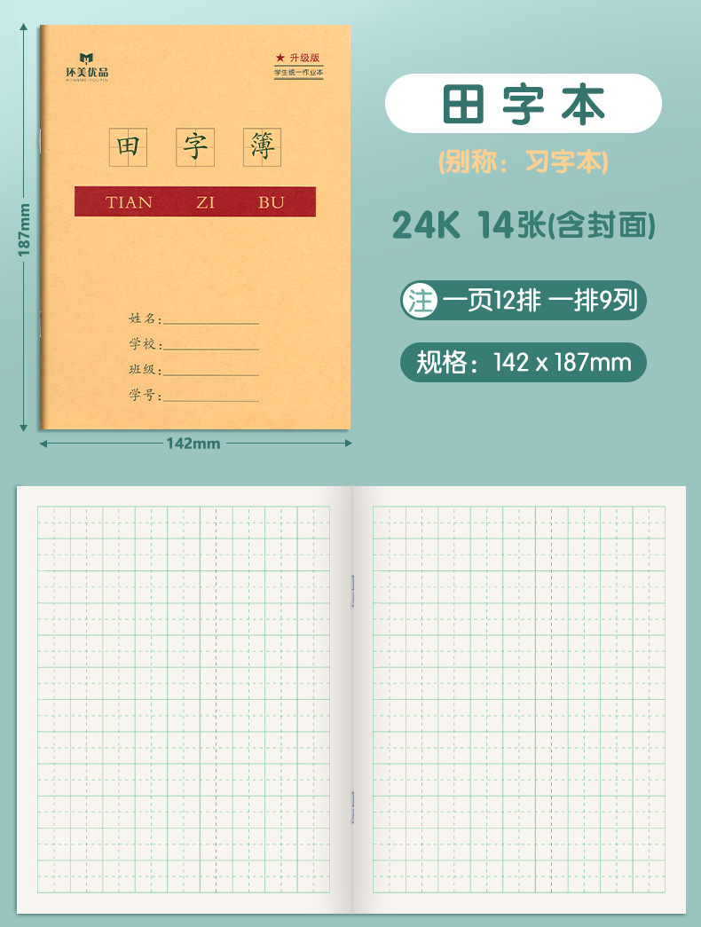Huanmei Guiguang Edition 24k Cowhide 운동 책 초등학교 숙제 운동 책 텍스트 책