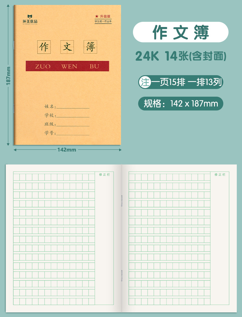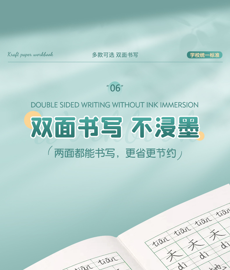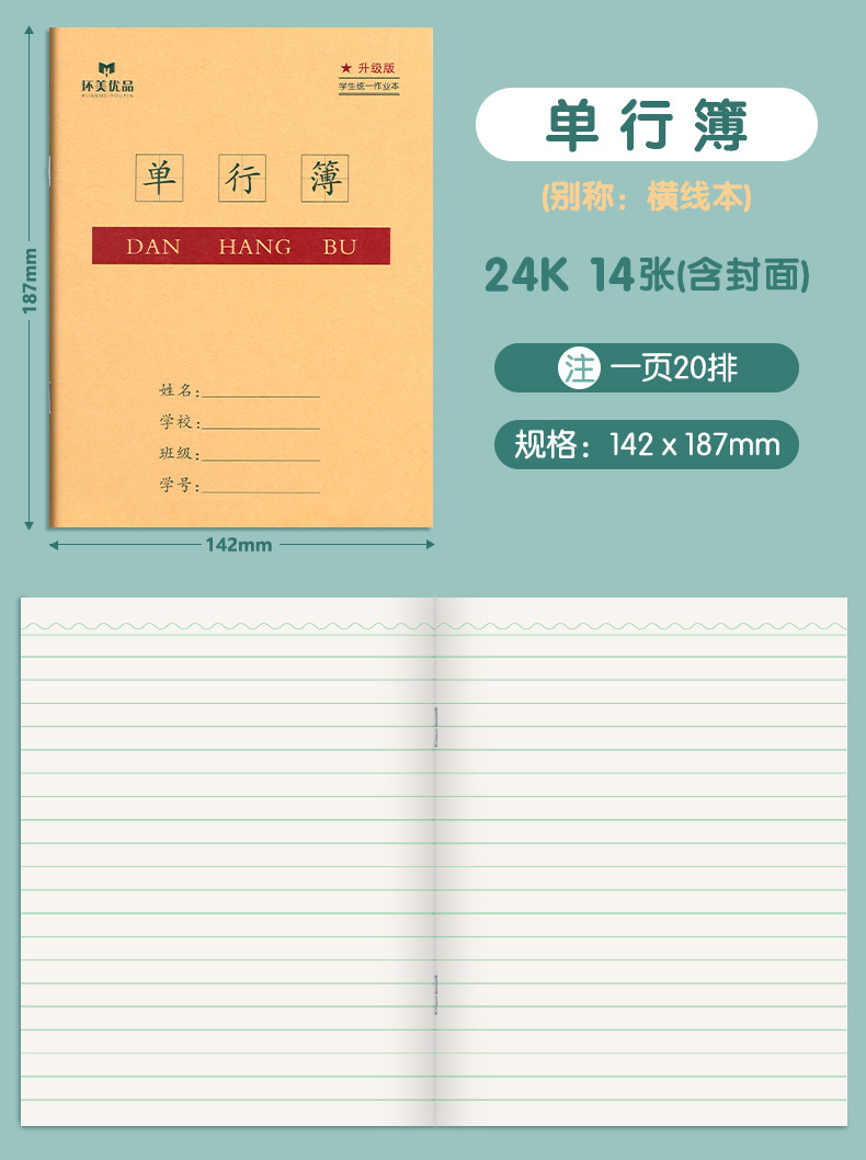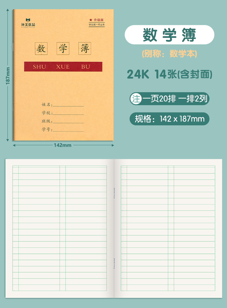 Huanmei Guiguang Edition 24k Cowhide 운동 책 초등학교 숙제 운동 책 텍스트 책
