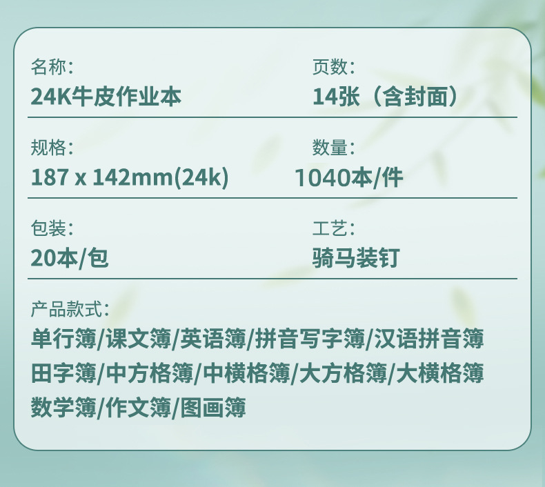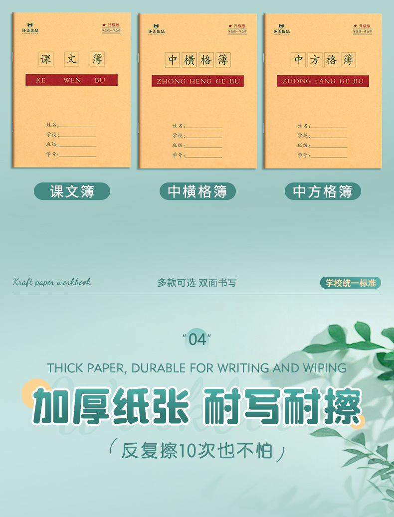 Huanmei Guiguang Edition 24k Cowhide 운동 책 초등학교 숙제 운동 책 텍스트 책스토어 가기