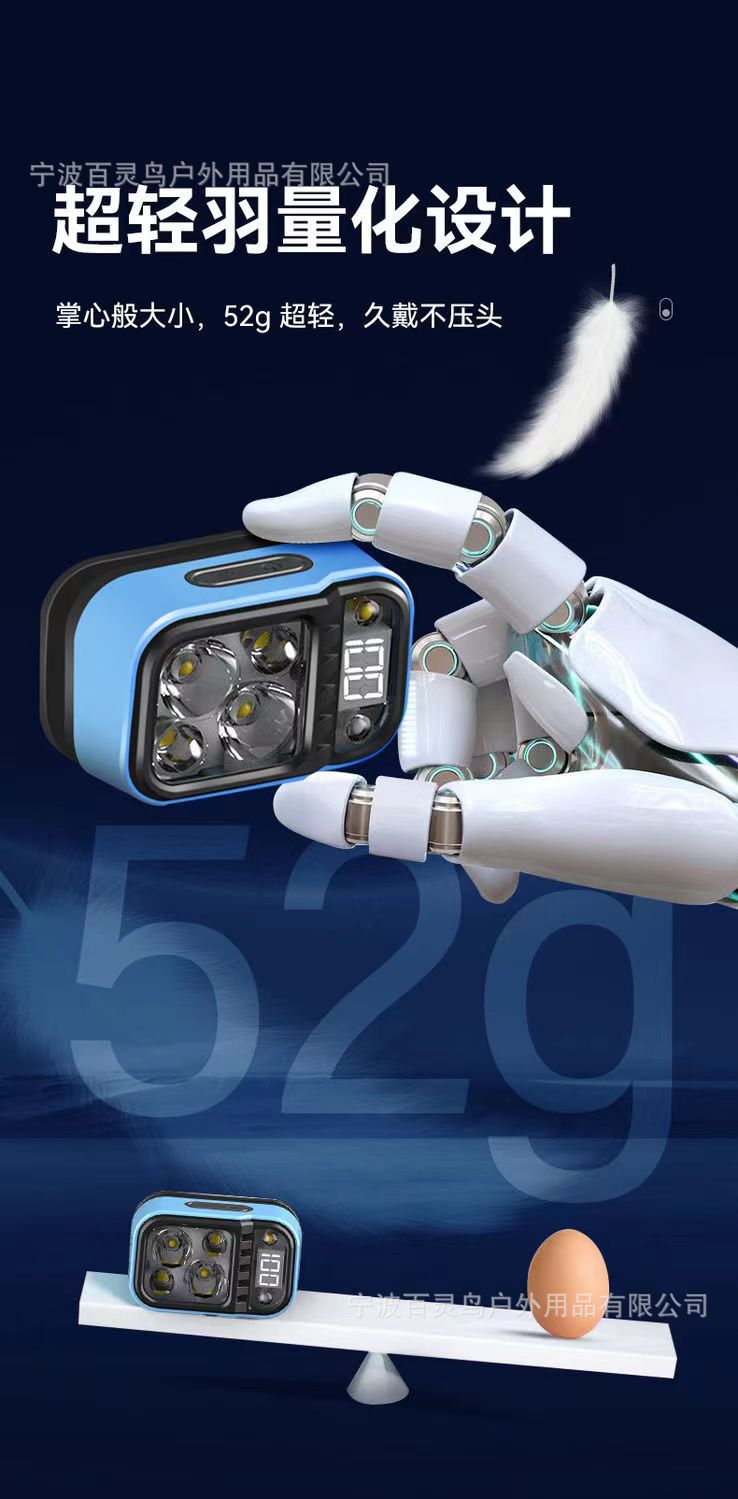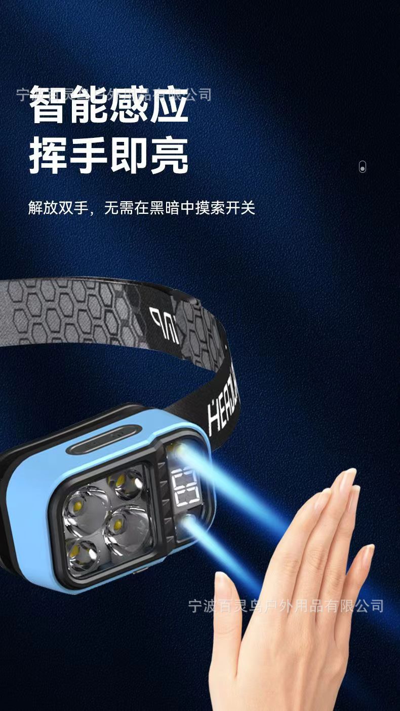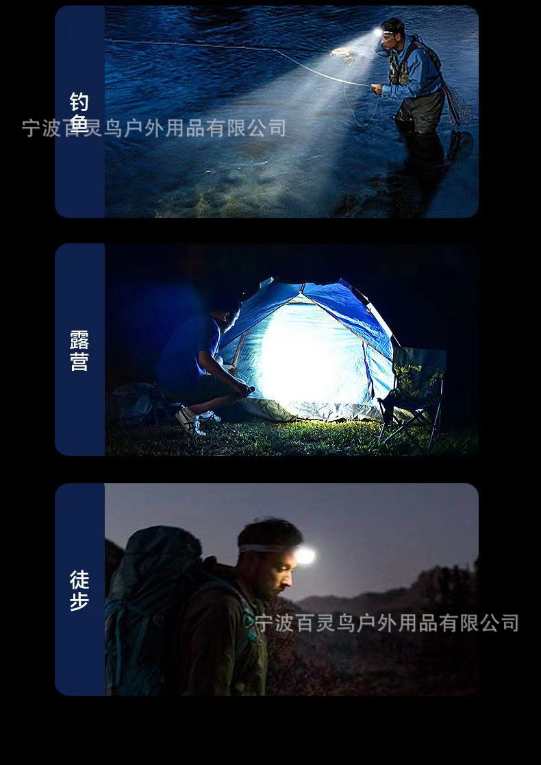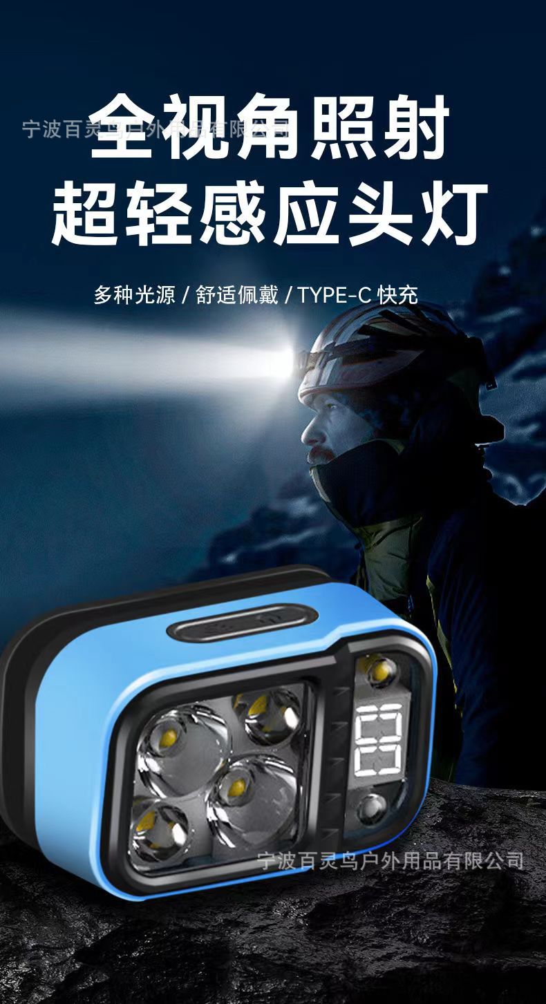 국경 간 뉴 웨이브 유도 조명 헤드 라이트 충전식 헤드 장착 야외 야간 달리기 낚시 미니 휴대용 램프