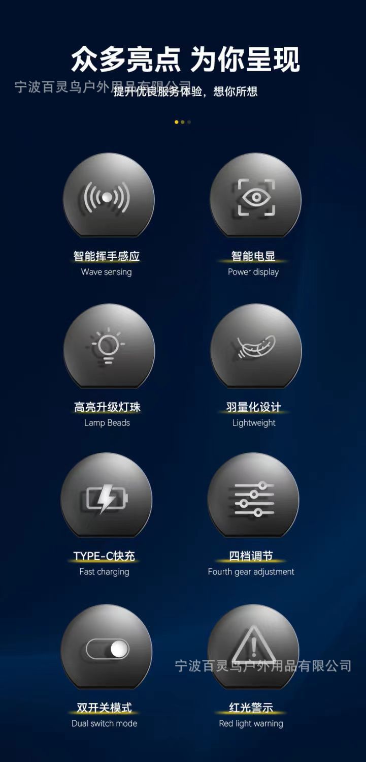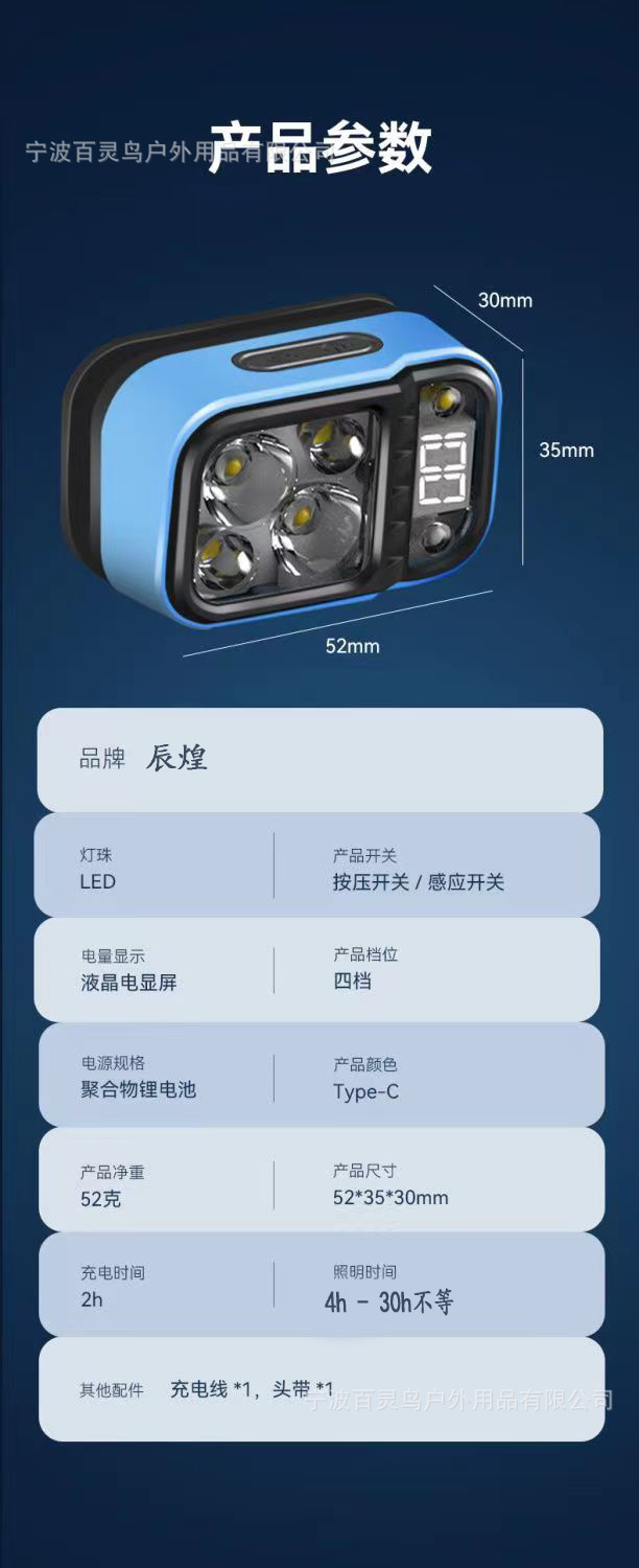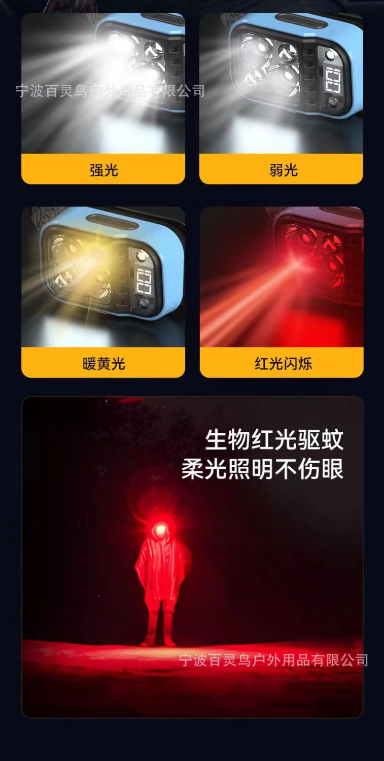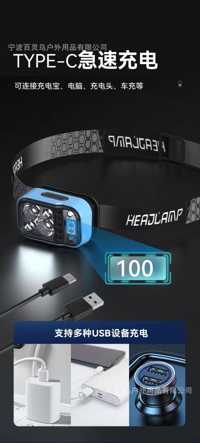 국경 간 뉴 웨이브 유도 조명 헤드 라이트 충전식 헤드 장착 야외 야간 달리기 낚시 미니 휴대용 램프