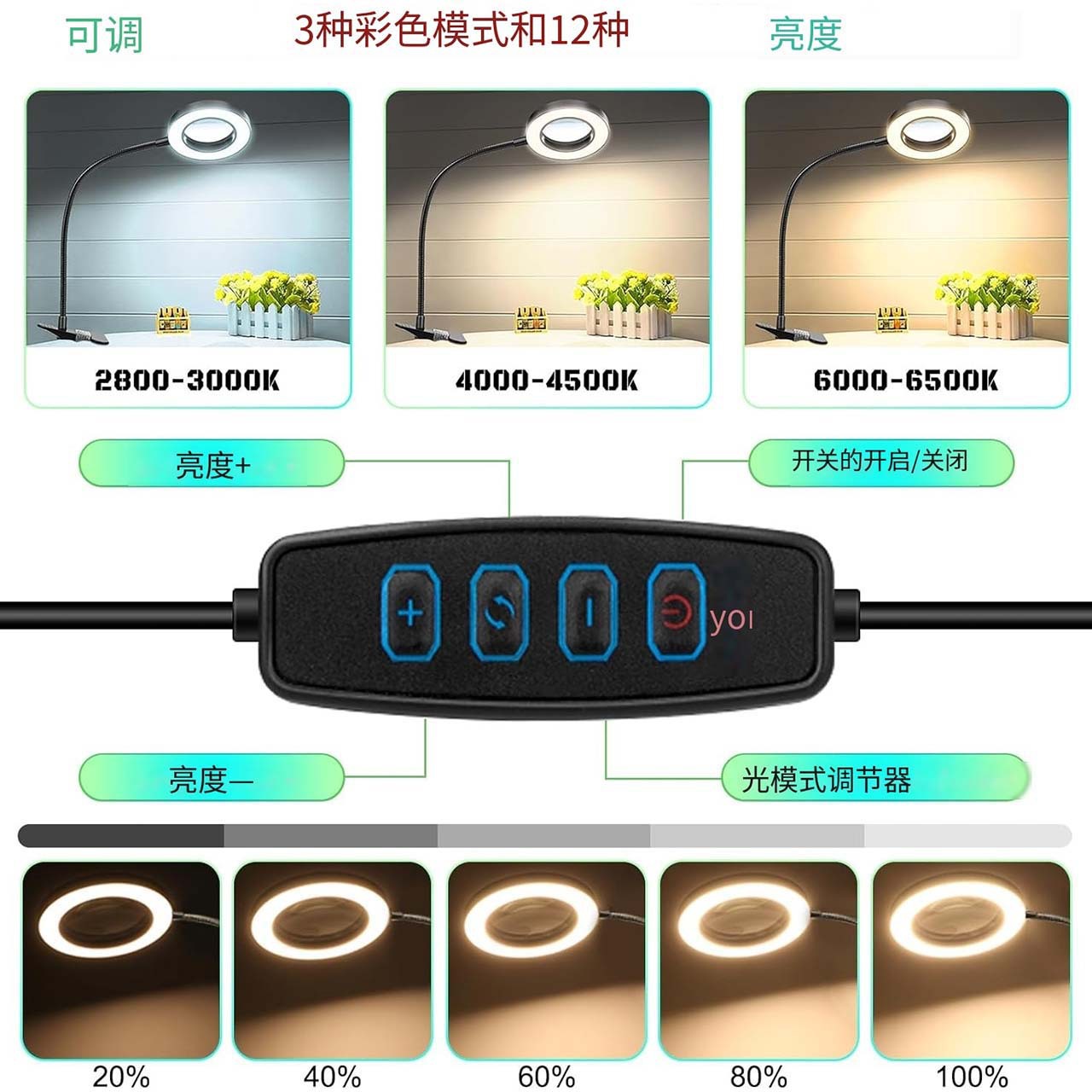 95mm 확대경 클립 라이트, 유연한 튜브 클립 확대경, 조명 포함, 문신 조명, 미용 메이크업 보조 조명, 눈썹 문신 및 입술 문신용스토어 가기