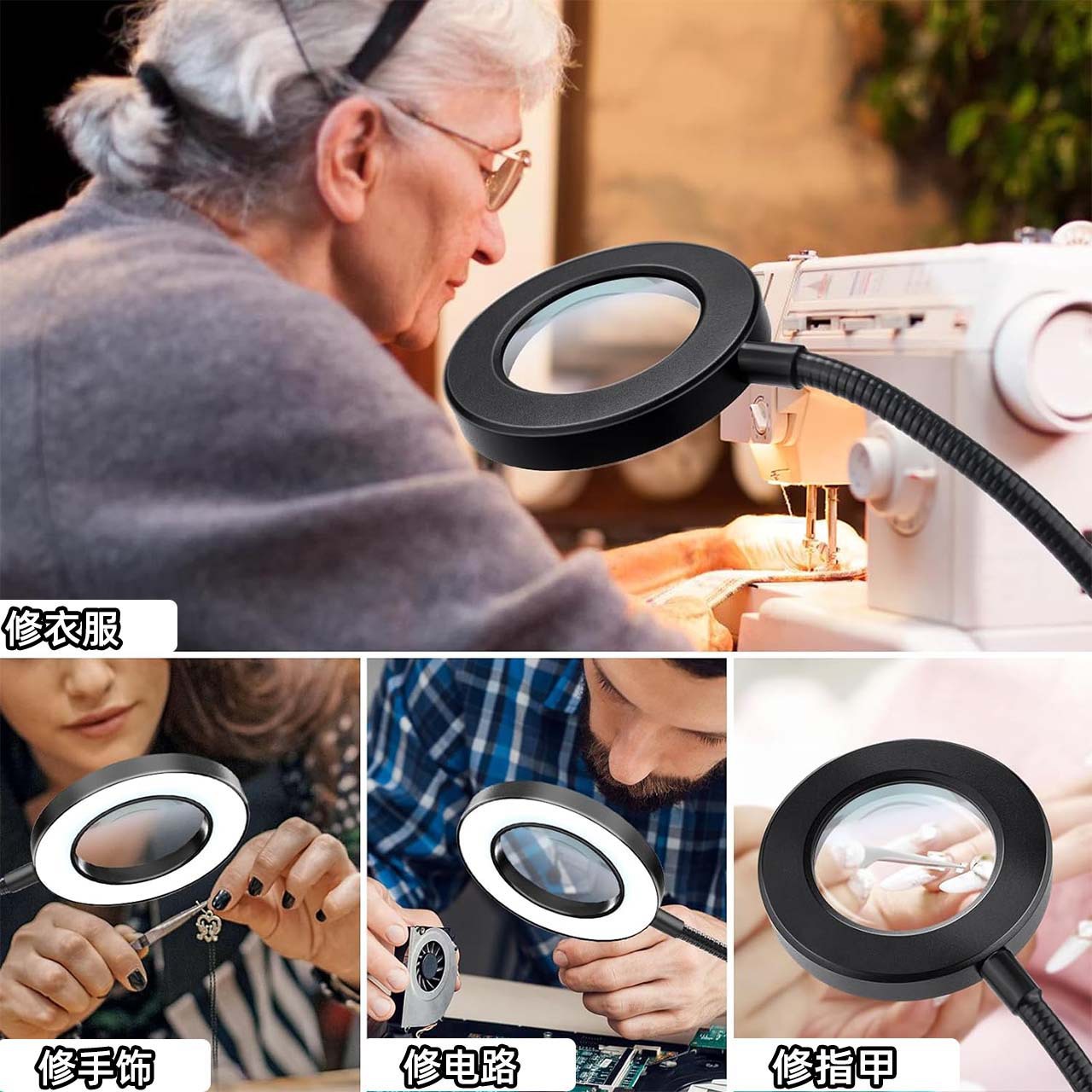 95mm 확대경 클립 라이트, 유연한 튜브 클립 확대경, 조명 포함, 문신 조명, 미용 메이크업 보조 조명, 눈썹 문신 및 입술 문신용