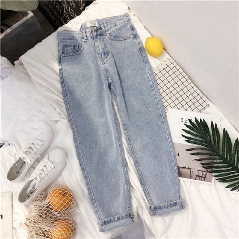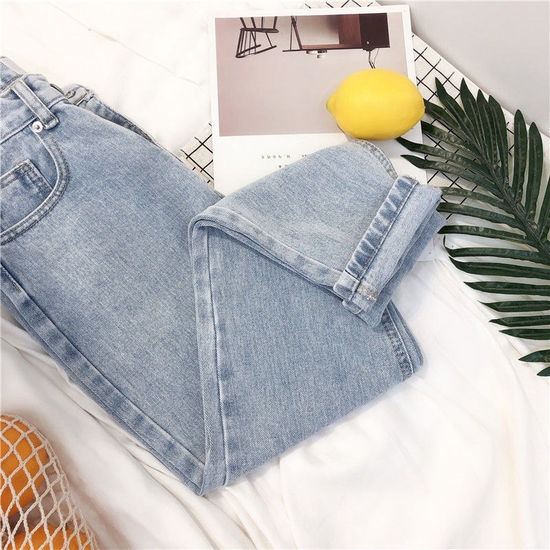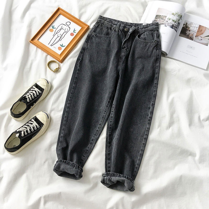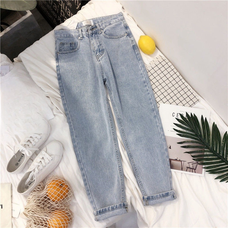 새로운 청바지 여성 자른 한국 스타일 높은 허리 슬리밍 학생 느슨한 스트레이트 와이드 레그 팬츠 할란 순무 유행 바지스토어 가기
