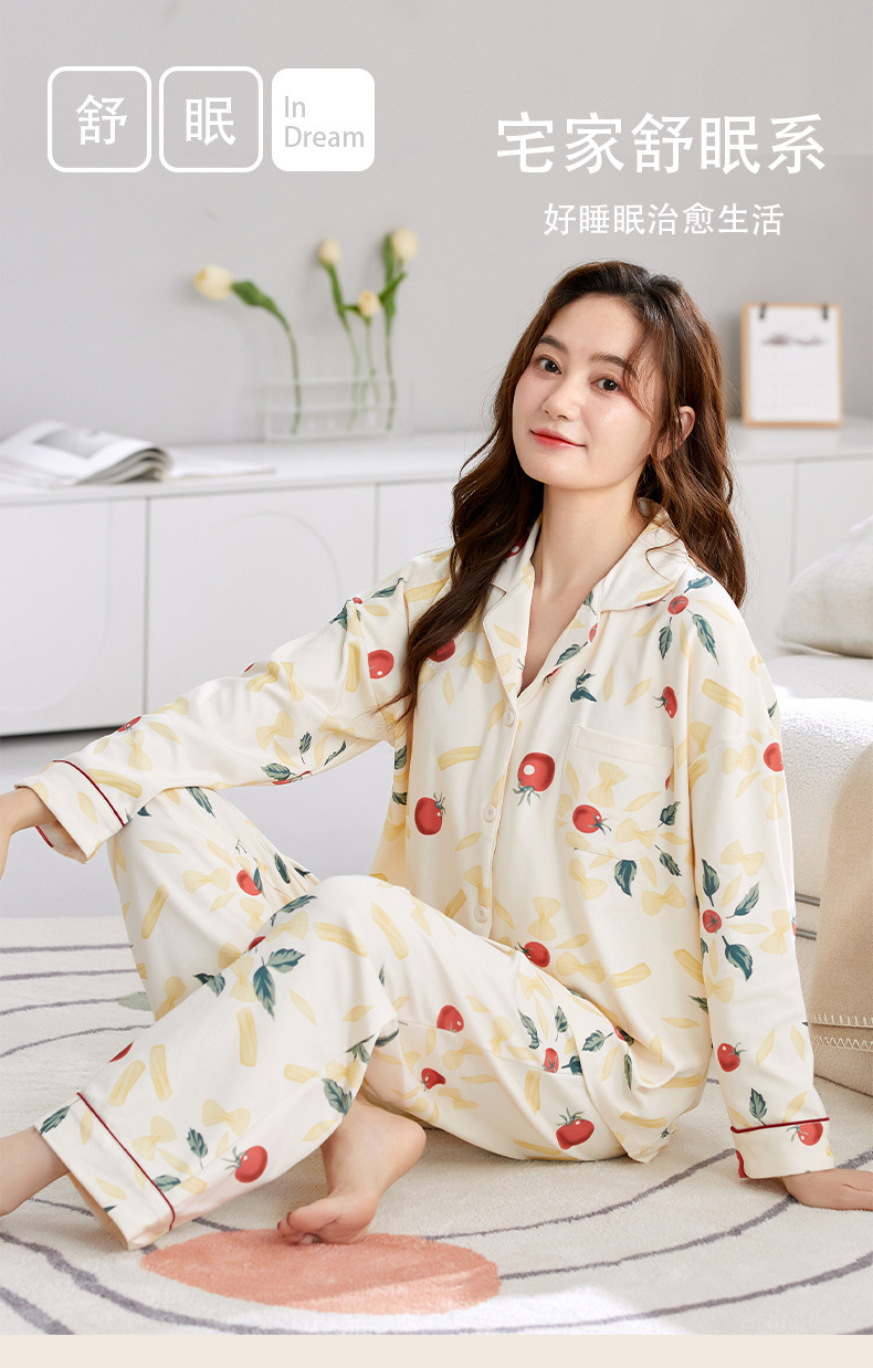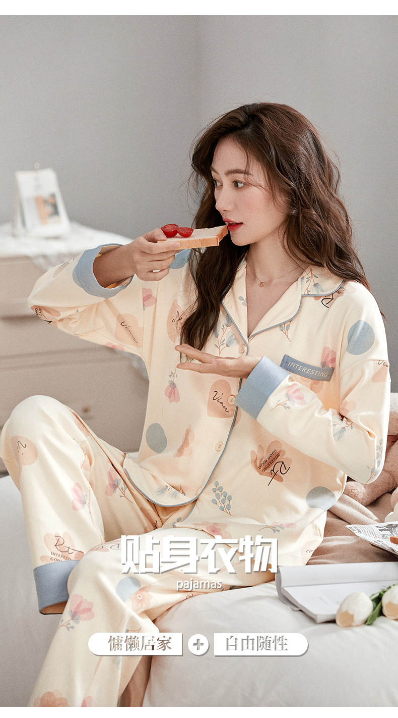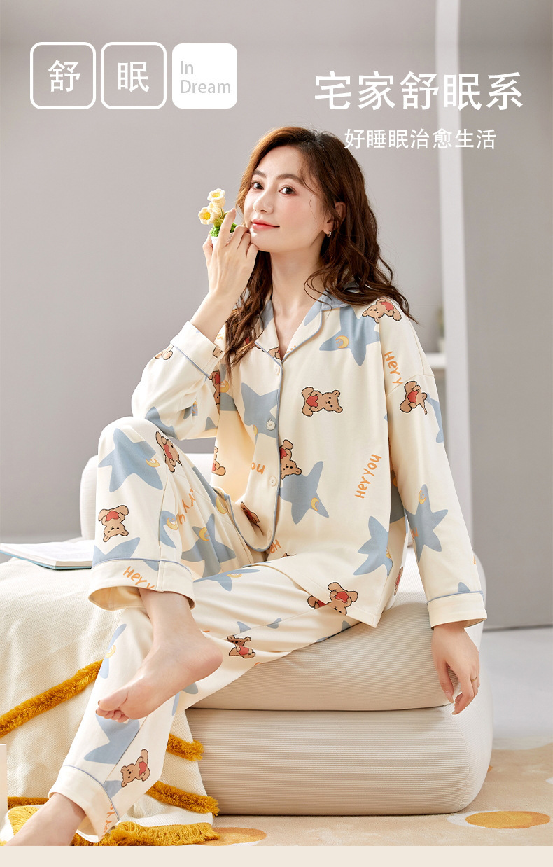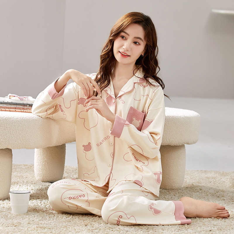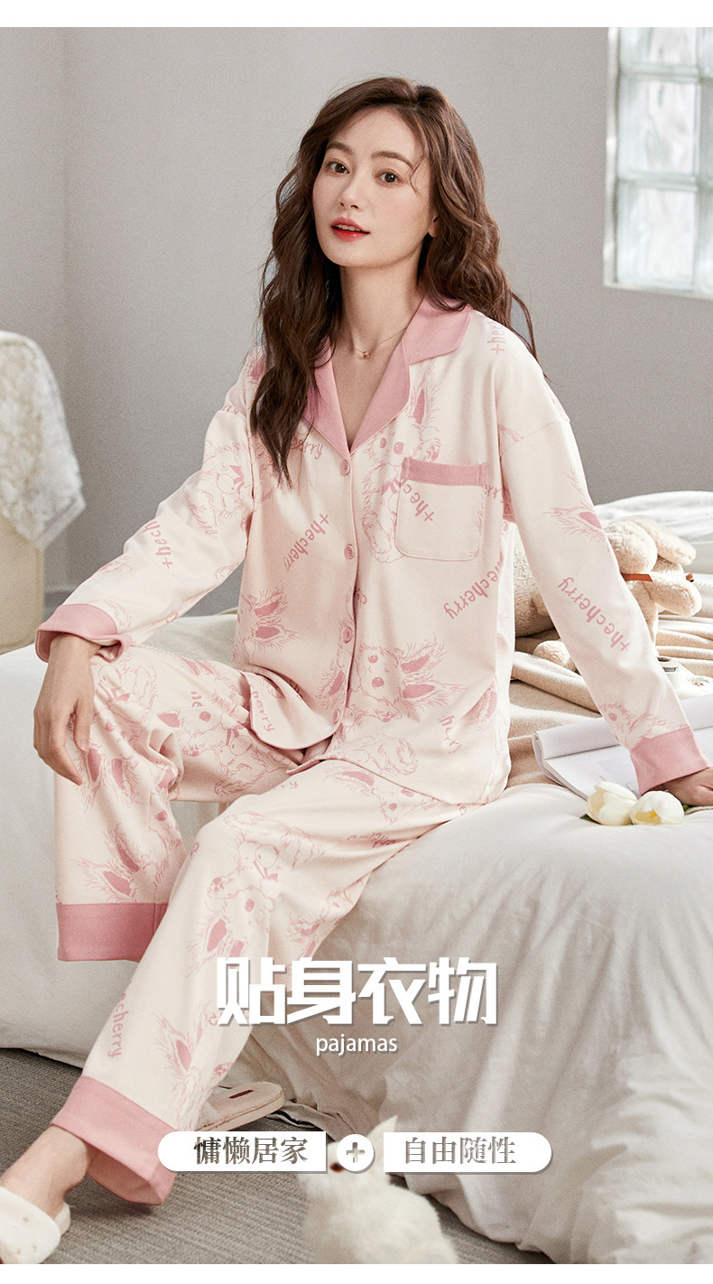 잠옷 여성의 봄과 가을 면화 긴 소매 바지 새로운 도착 봄과 가을은 가을 옷깃 만화 홈 의류 세트스토어 가기